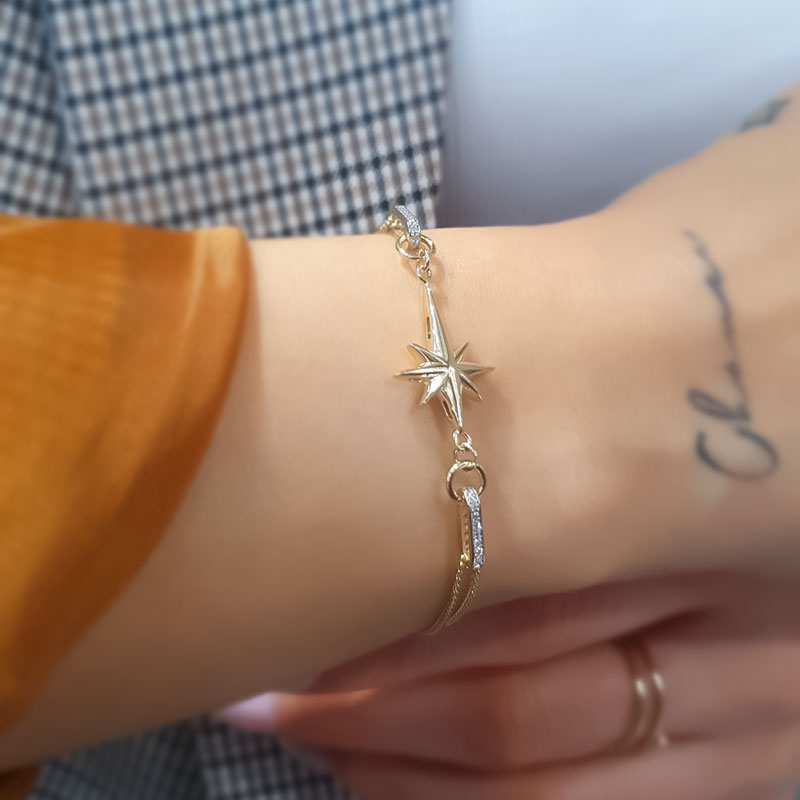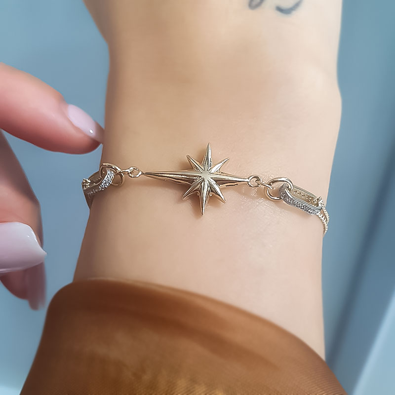 14k Altın Taşlı Kuzey Yıldızı Bileklik
