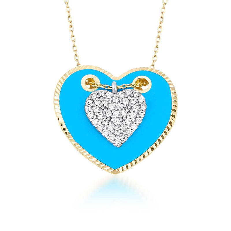 14k Altın Taşlı Mavi Kalp Kolye