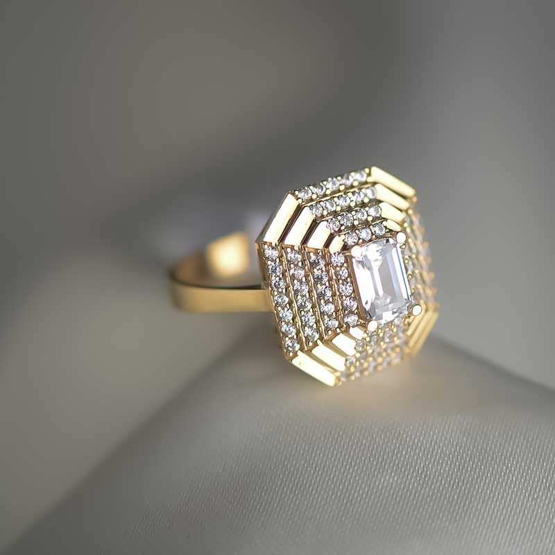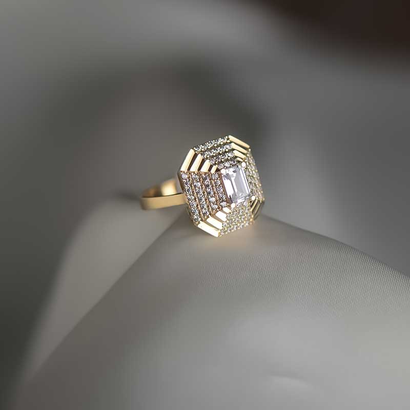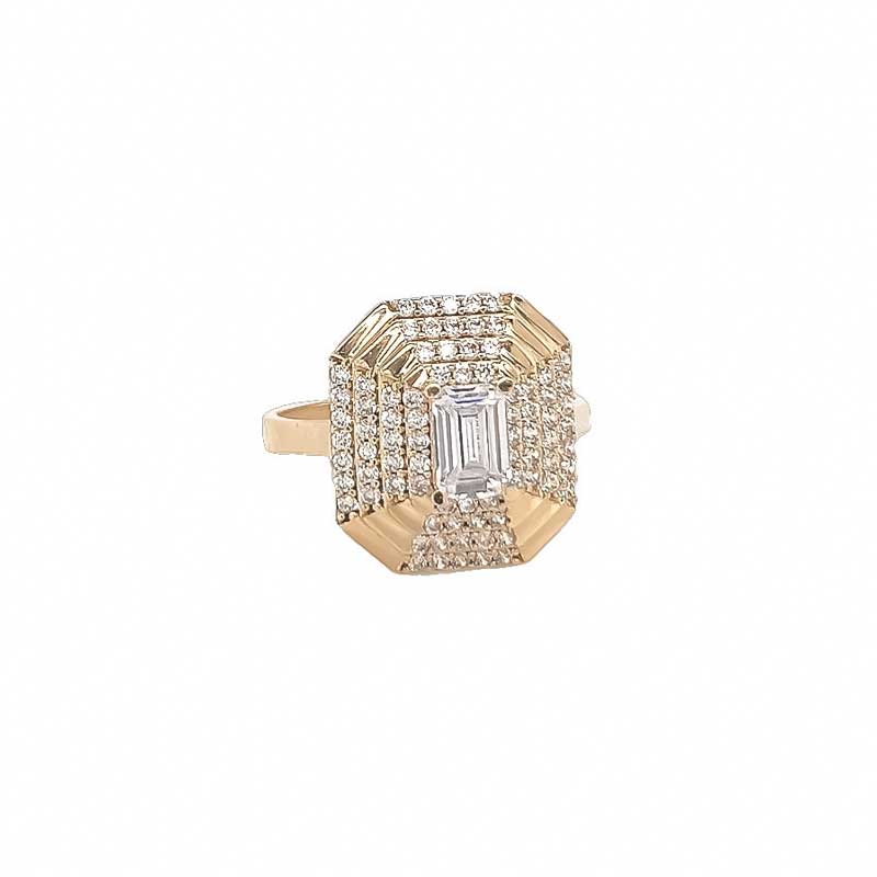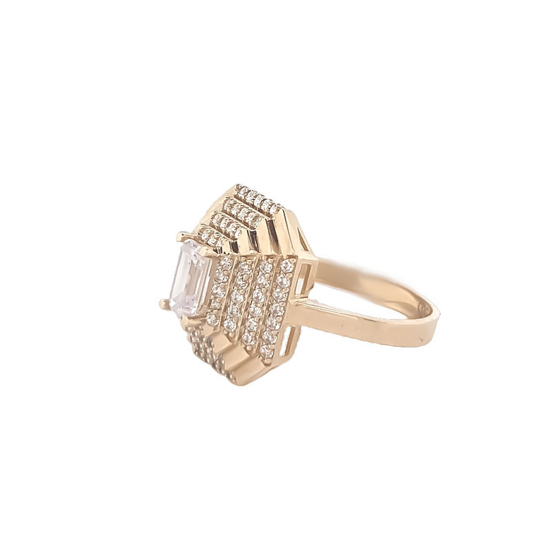 14 Ayar Altın Pembe Baget Taşlı Yüzük | Elegant Takı Modeli