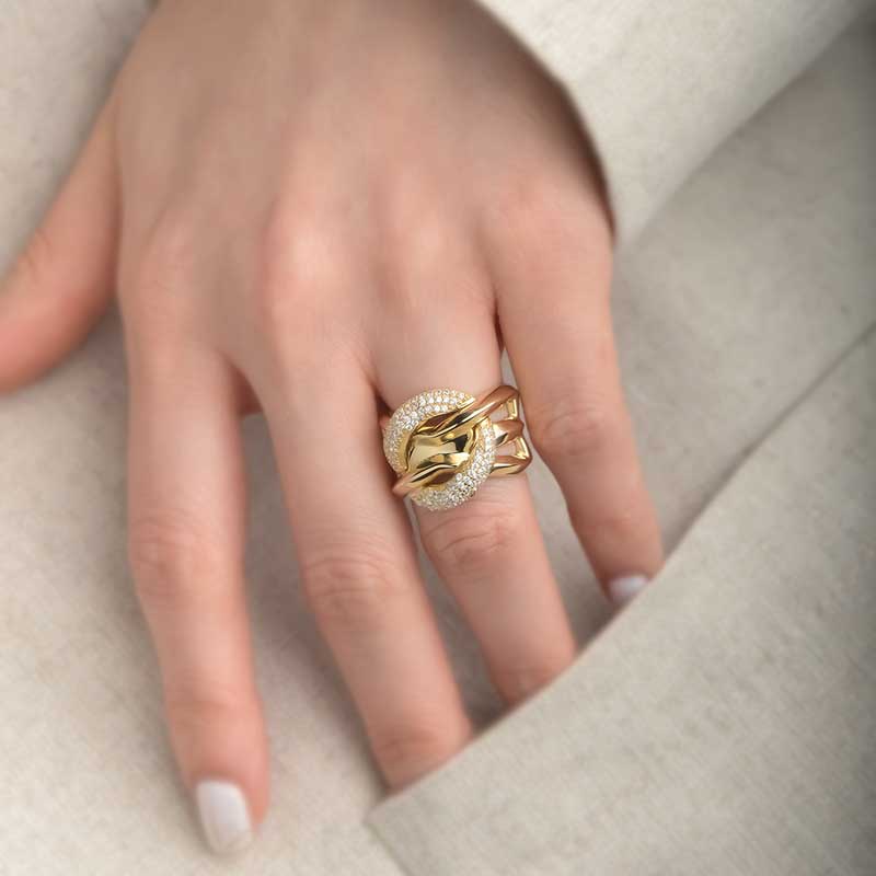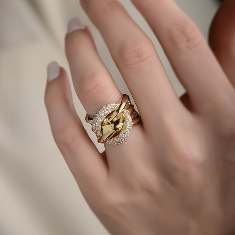 14 Ayar Altın Taşlı Kalpli Yüzük
