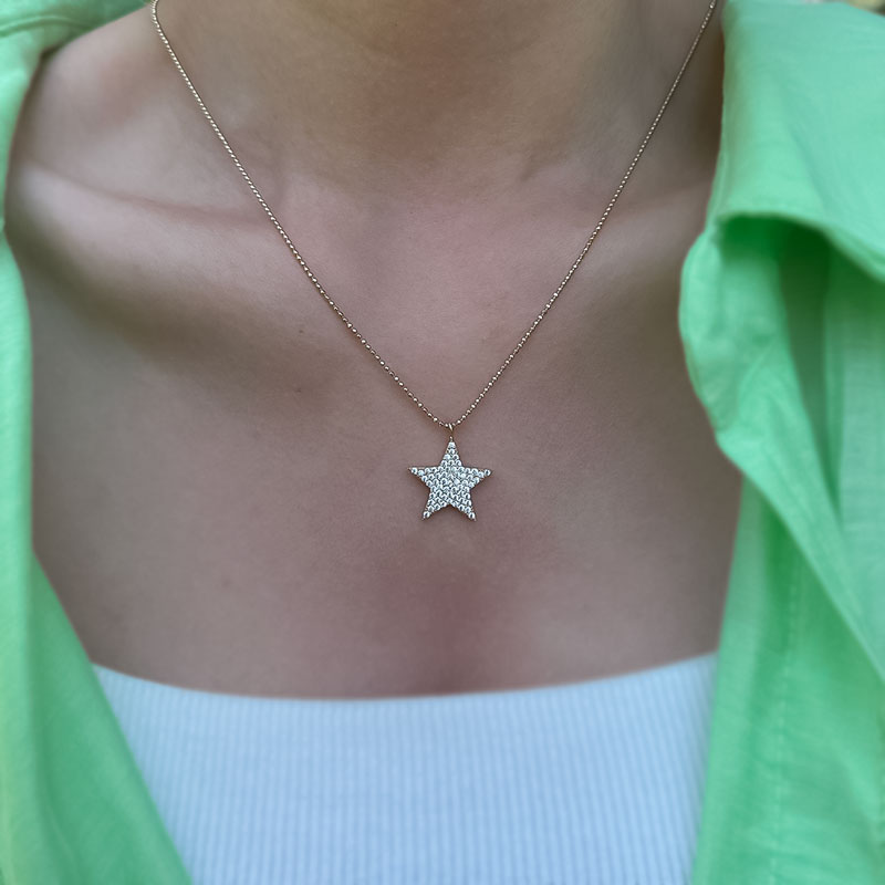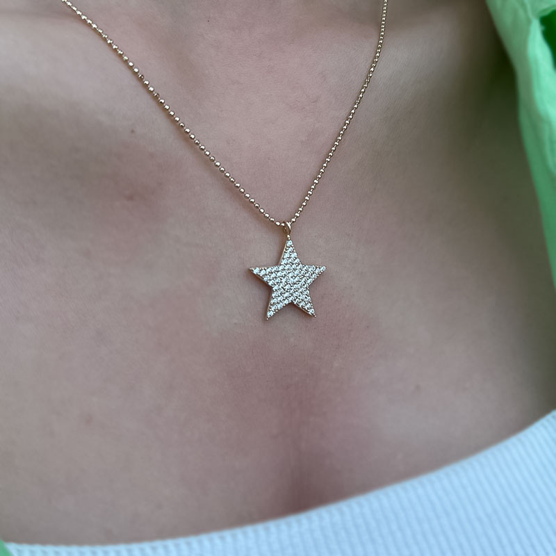 14k Yıldız Figürlü Taşlı Plaka Altın Kolye