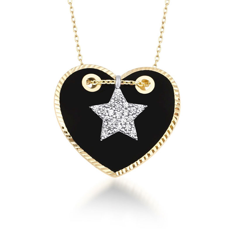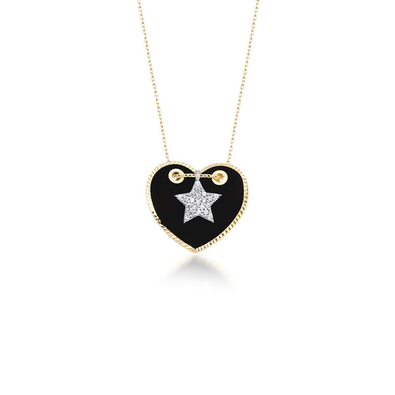 14k Altın Taşlı Yıldız Siyah Kalp Kolye