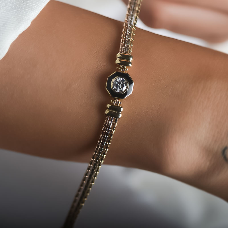 14 Ayar Altın Renkli Taşlı Bileklik