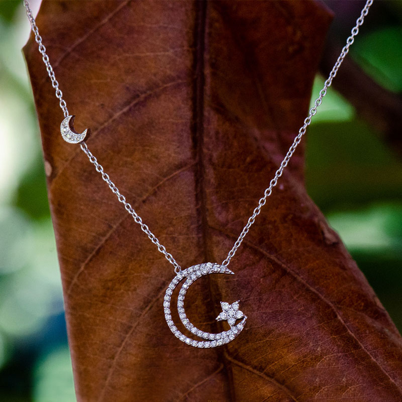 18K BEYAZ ALTIN AYYILDIZ FİGÜRLÜ KOLYE