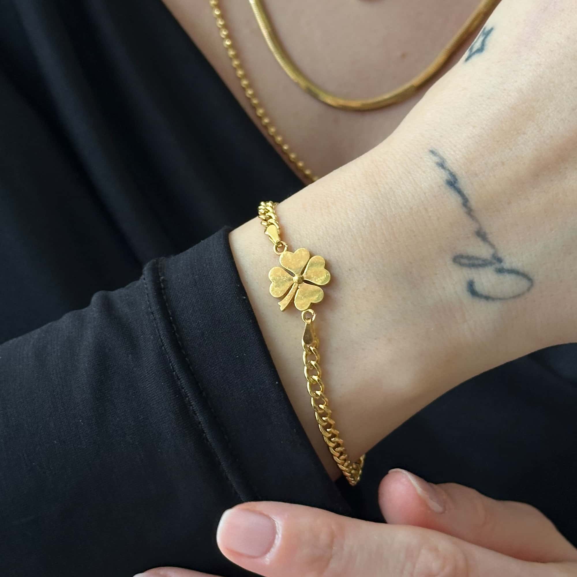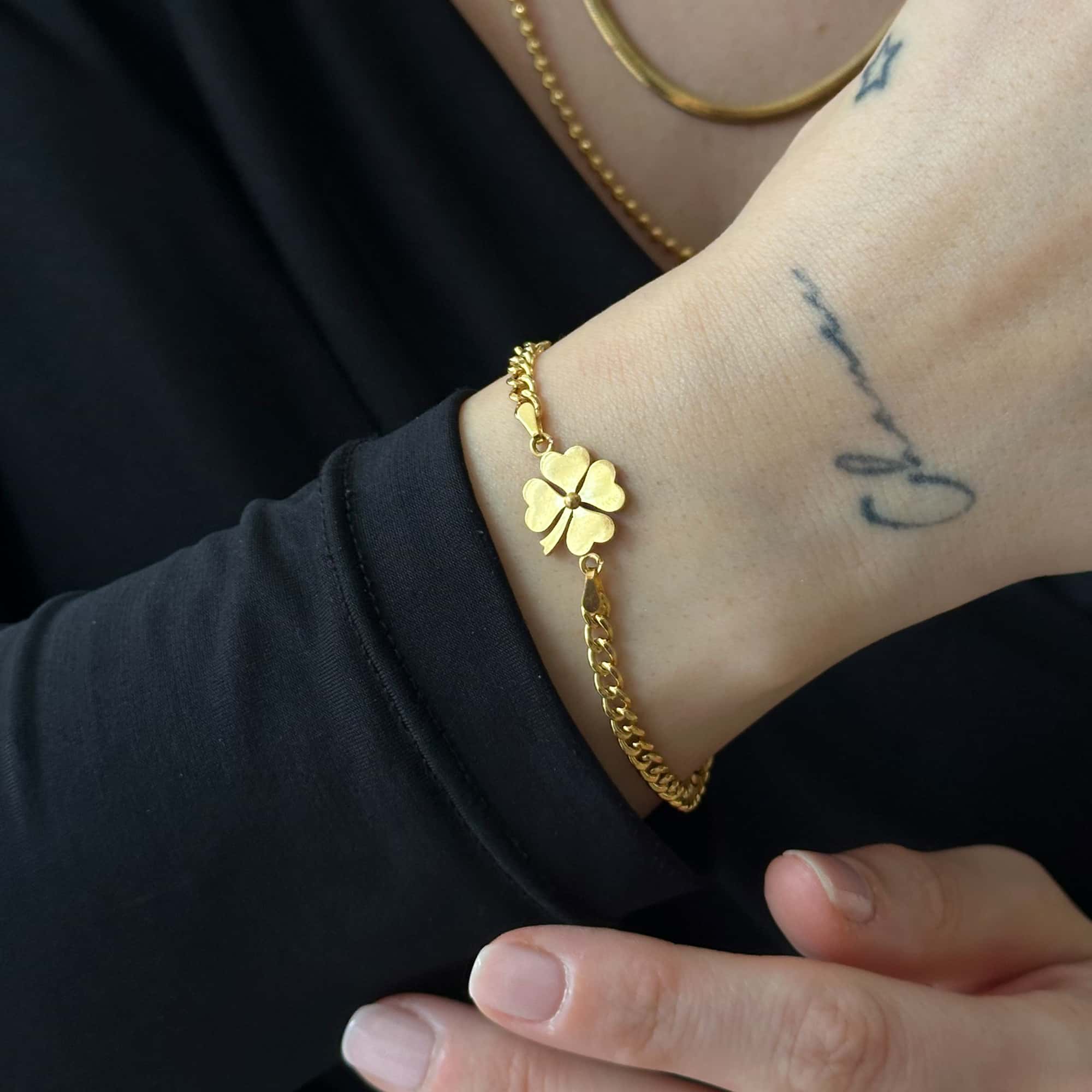 22 Ayar Altın Gurmet Zincir Yonca Bileklik Zarif İşçilik