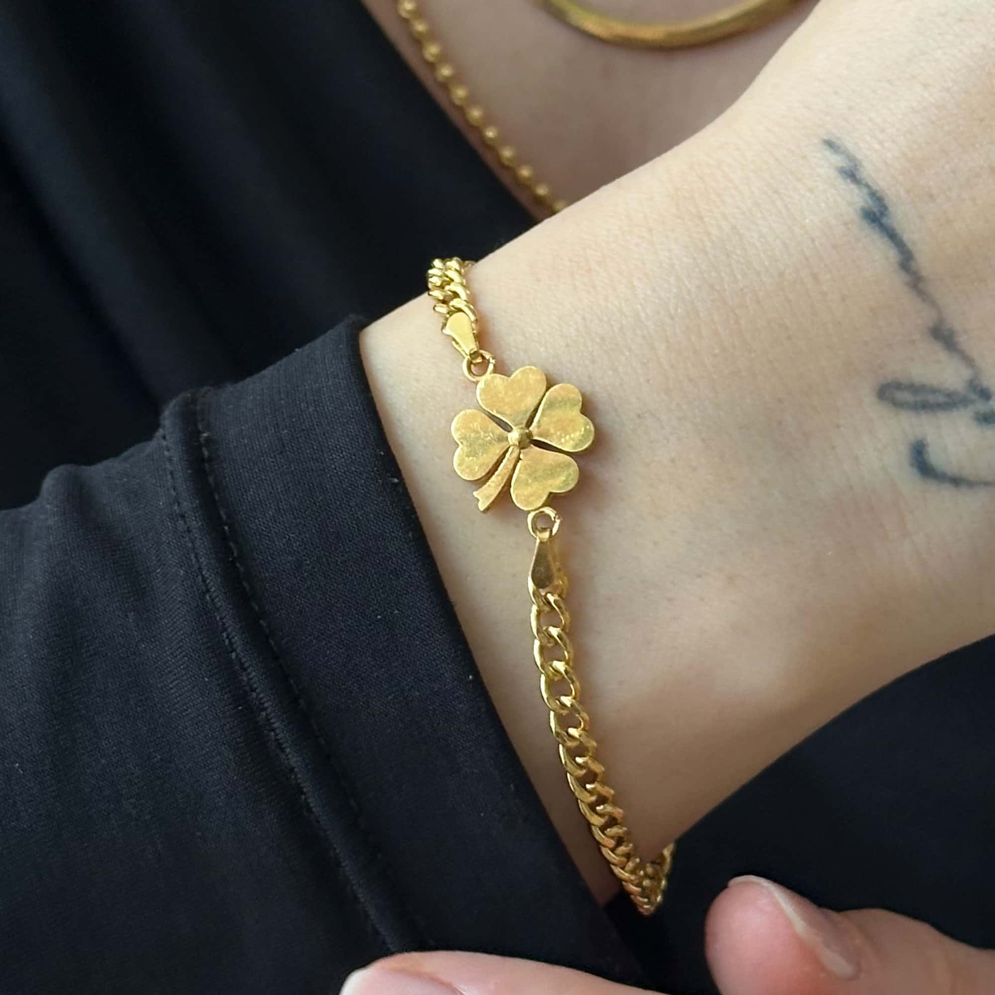 Zarif işçiliğe sahip altın yonca bileklik modeliyle şıklığınızı tamamlayın
