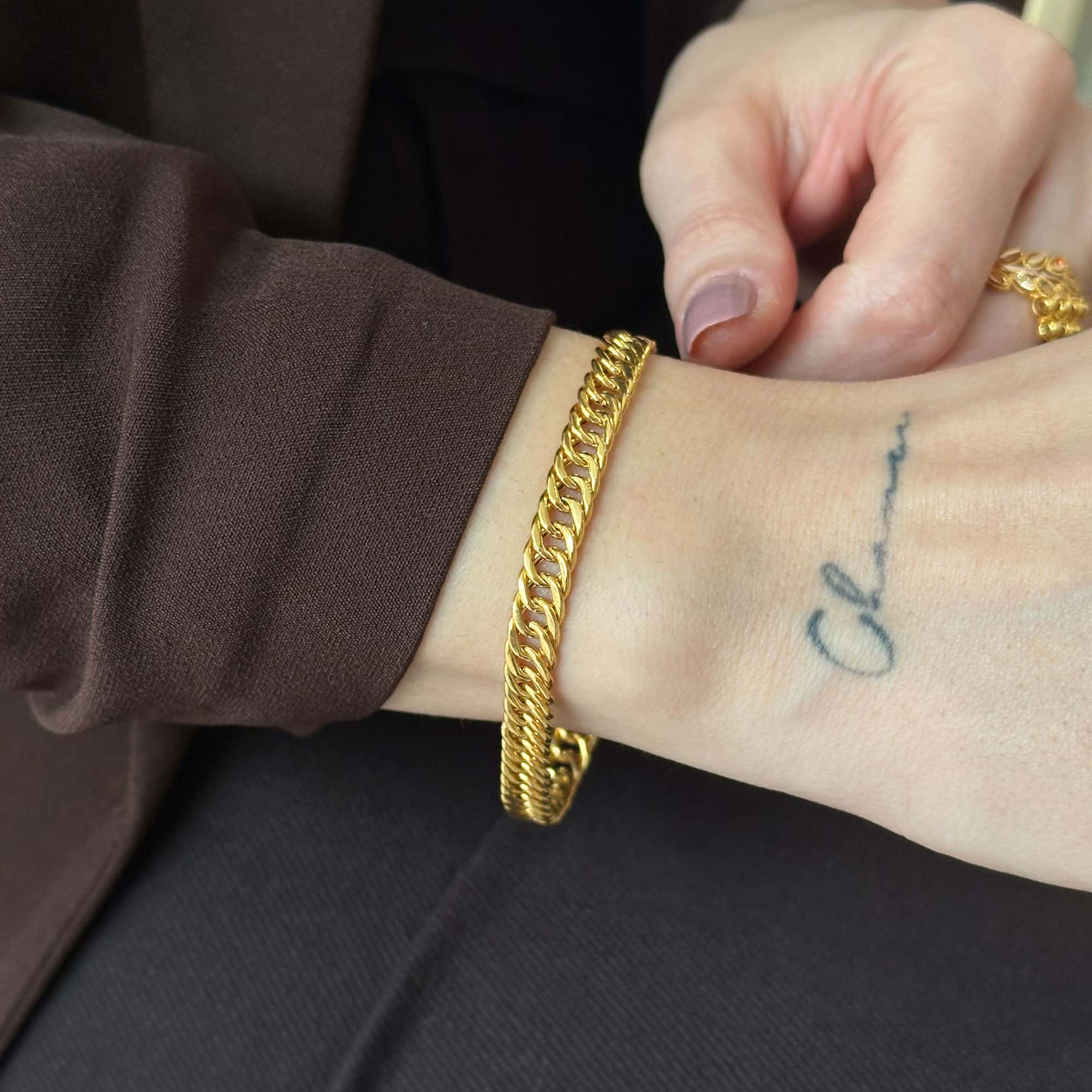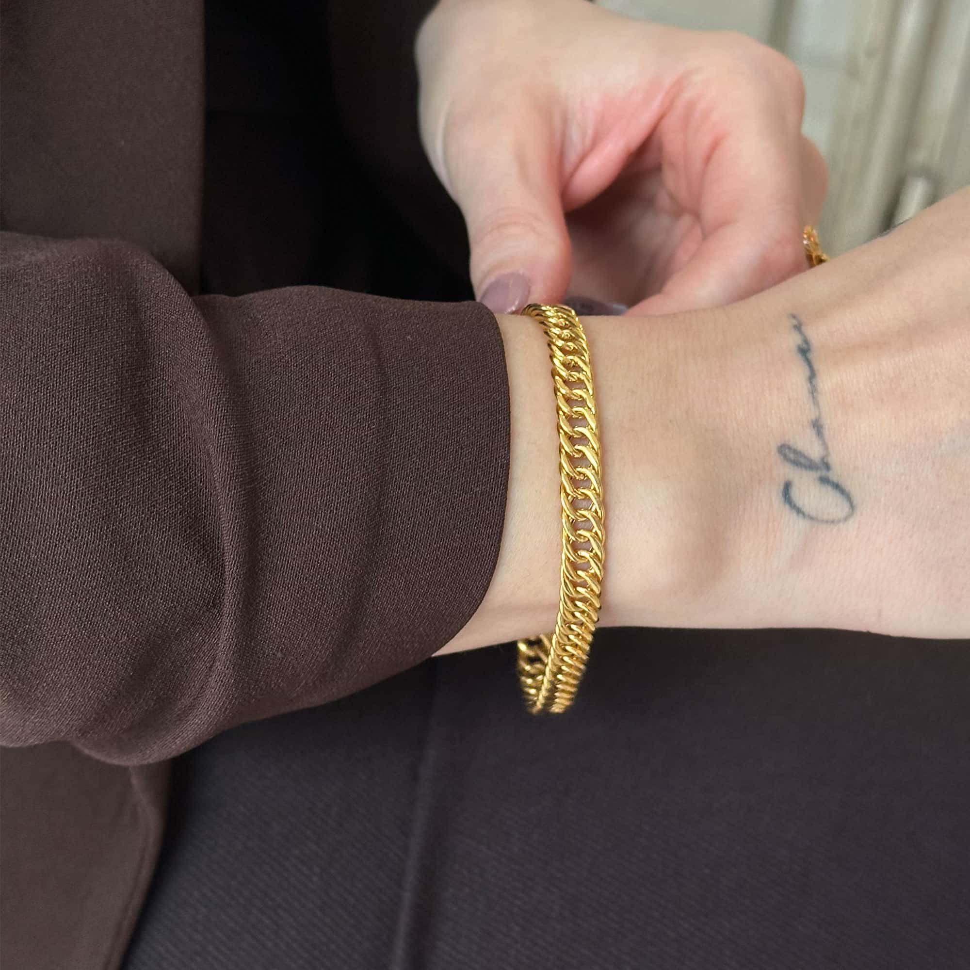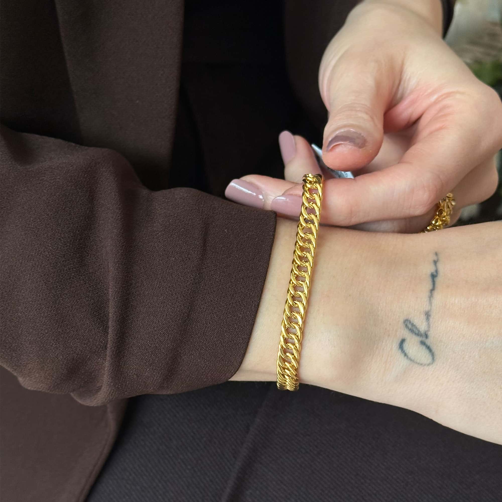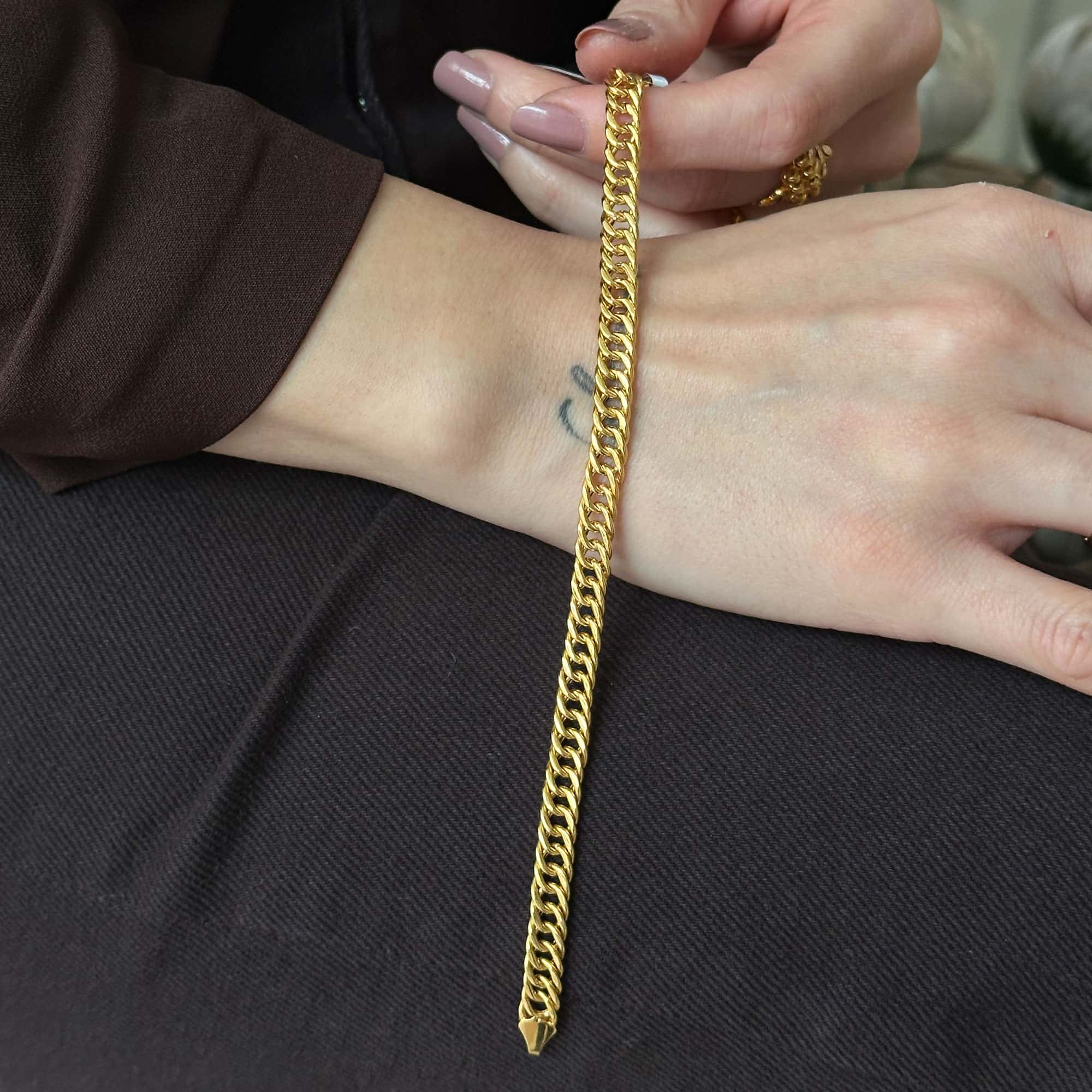 22 Ayar Altın Samanyolu Zincir Bileklik, klasik zincir modelini modern bir dokunuşla buluşturan özel bir tasarımdır. Samanyolu görünümündeki pürüzsüz ve akıcı formu, bileğinizde hafif ama etkileyici bir parlaklık yaratır.