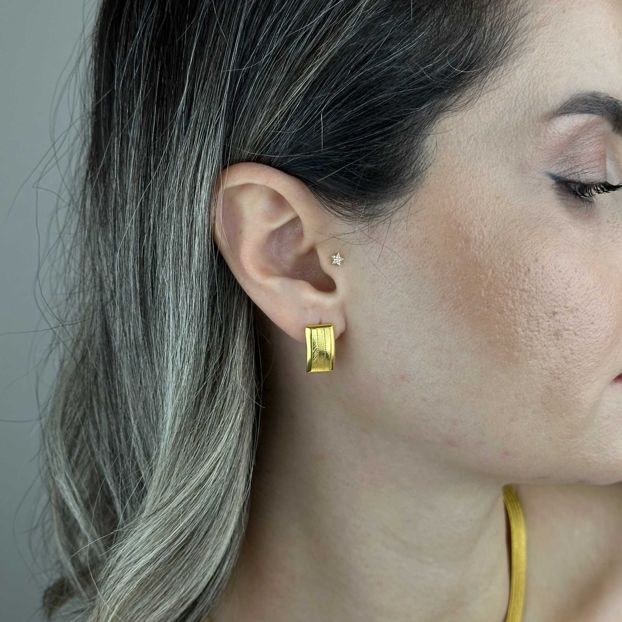 22 ayar küpe modelleri arasında yer alan bu tasarım, hem klasik hem de modern kombinlerle kolayca uyum sağlar.