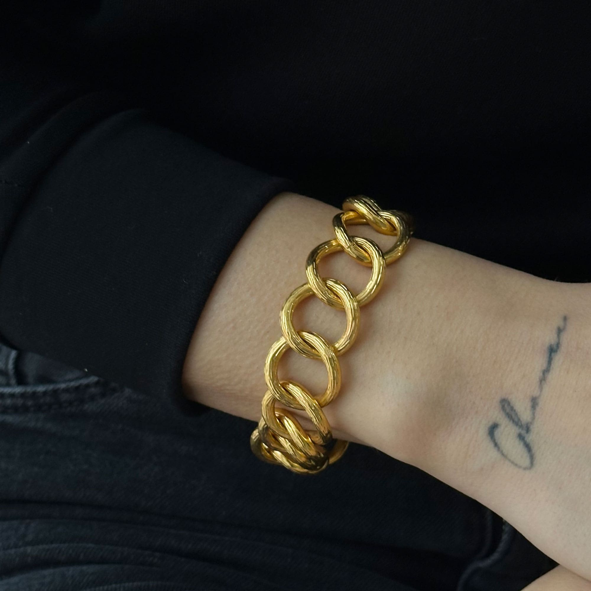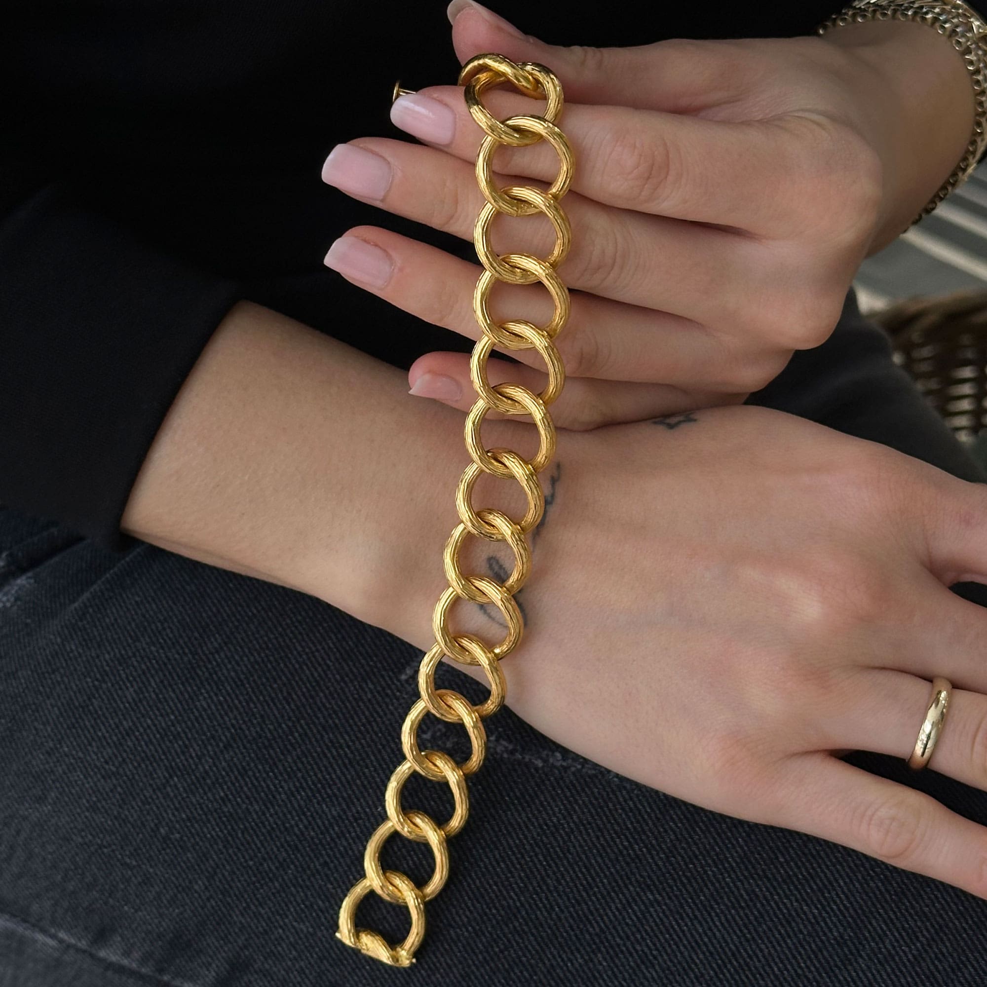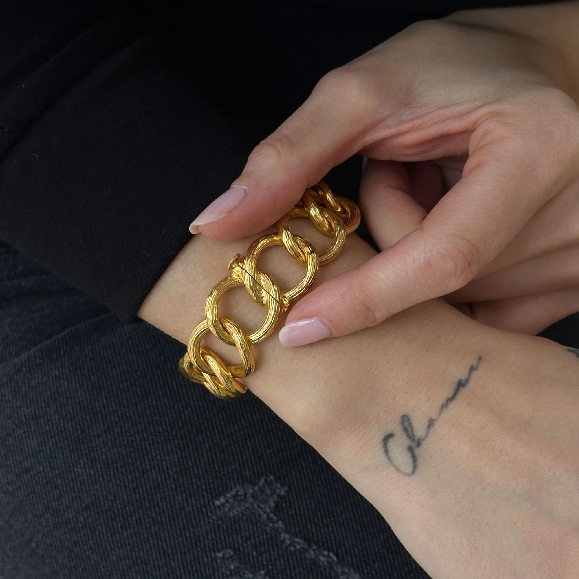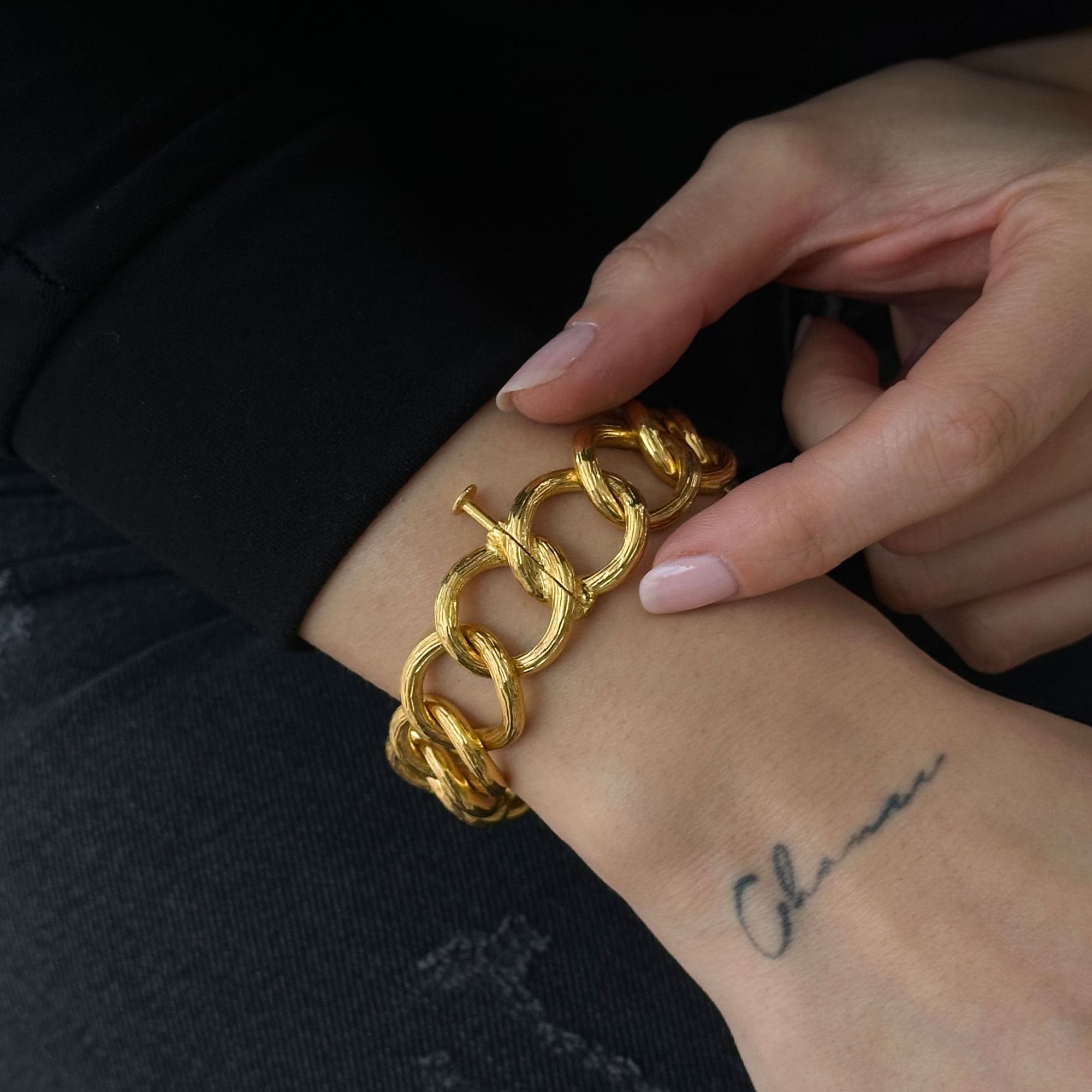 Günlük kullanımda şıklığınızı tamamlayan bu model, aynı zamanda özel günlerde stilinize sofistike bir dokunuş ekler. %100 22 ayar altından üretilmesi sayesinde hem estetik hem de yüksek yatırım değeri sunar. Engin Kuyumculuk’un yıllardır devam eden usta işçiliği ile hazırlanan bu bileklik, kalıcı bir zarafet arayanlar için mükemmel bir seçimdir.