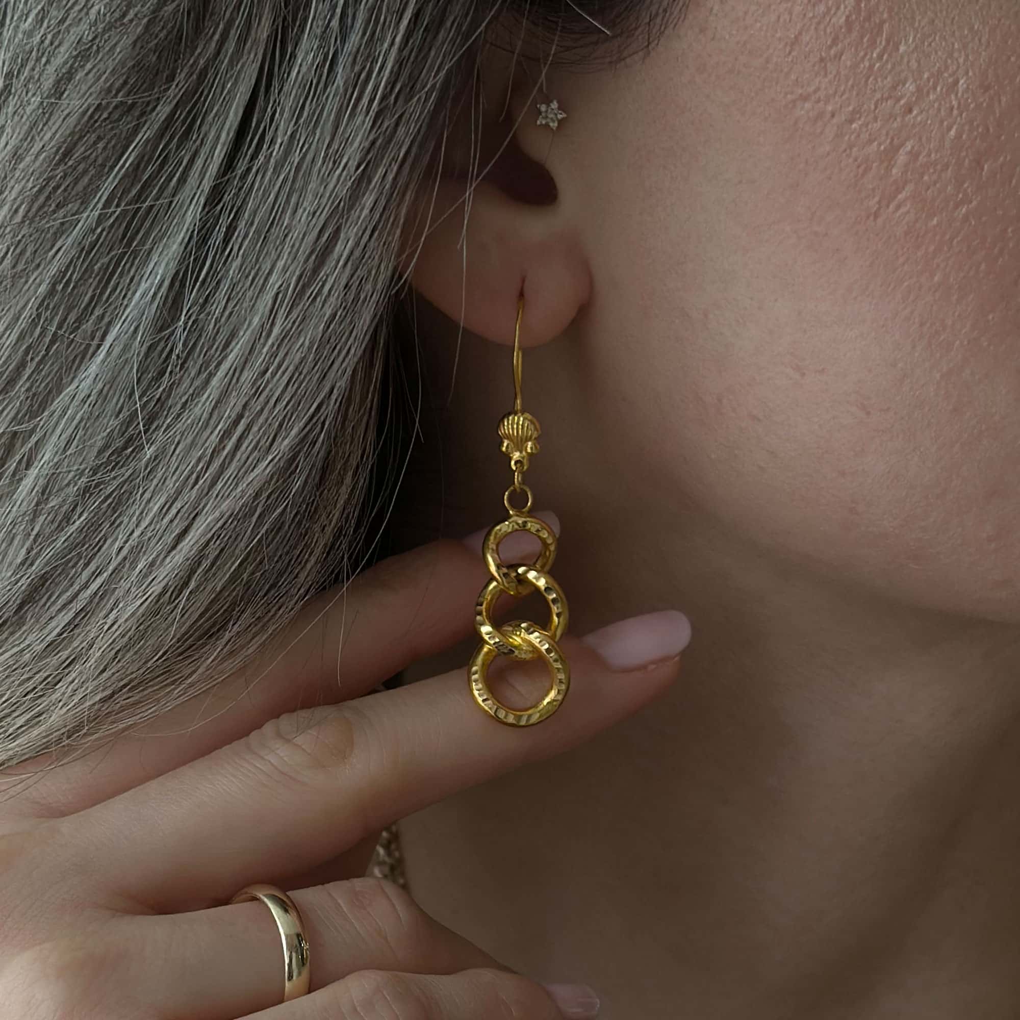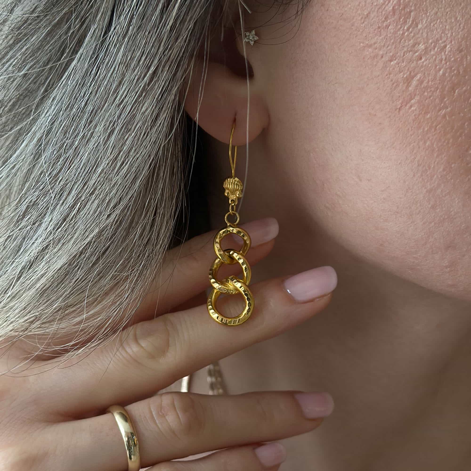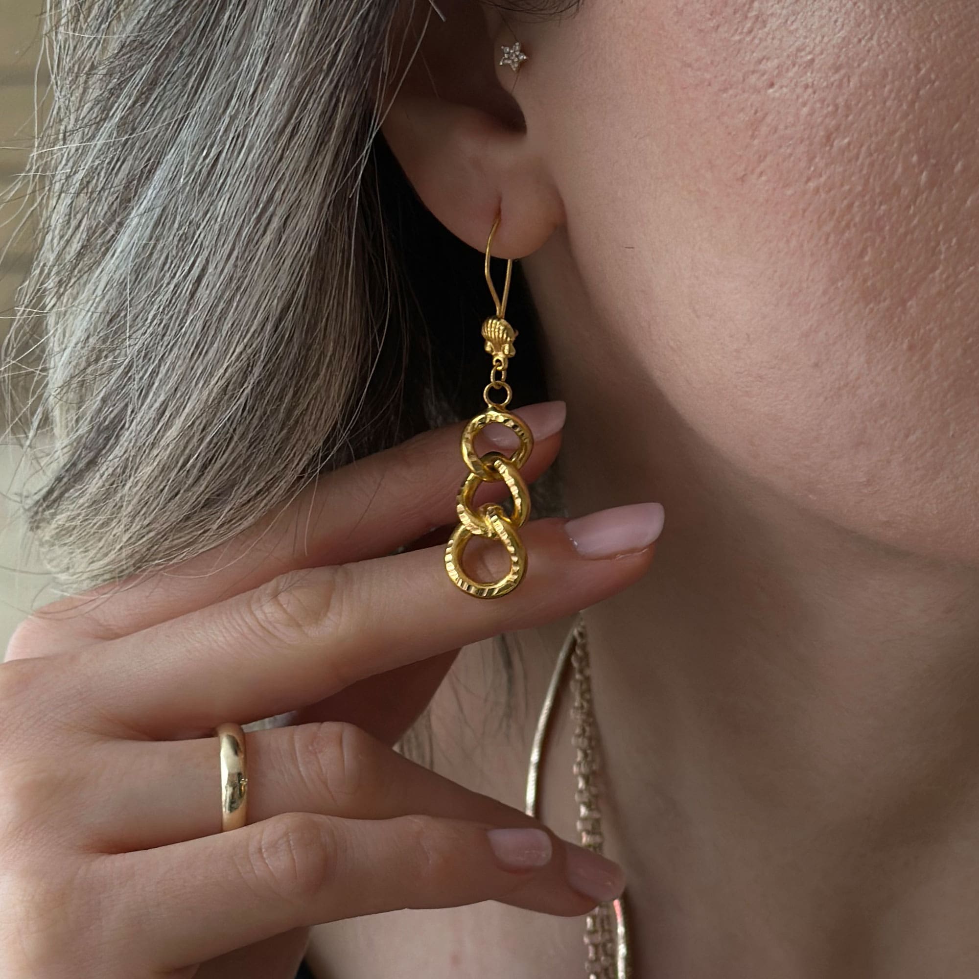Engin Kuyumculuk güvencesiyle sunulan 22 ayar Sallantılı Samanyolu Küpe, altın takılarda estetik, kalite ve işçiliği bir araya getiren nadir parçalardan biridir.