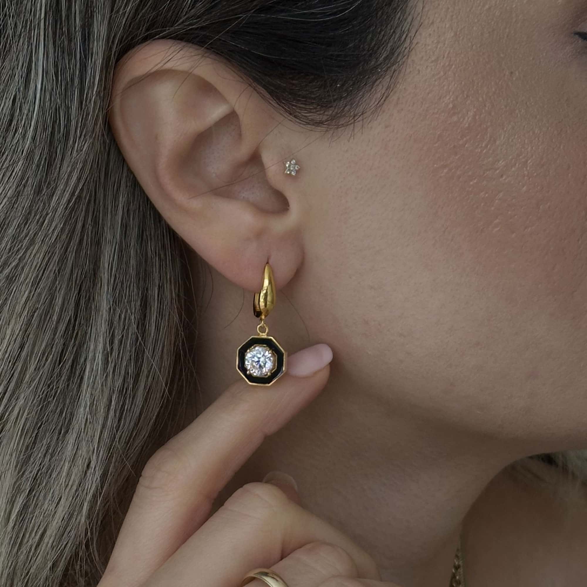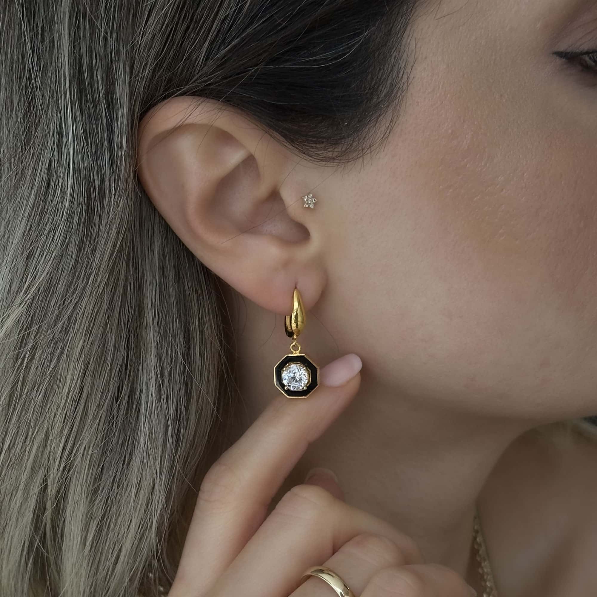 22 Ayar Sallantılı Siyah Mineli Tektaş Küpe – Zarif Altın Şıklığı