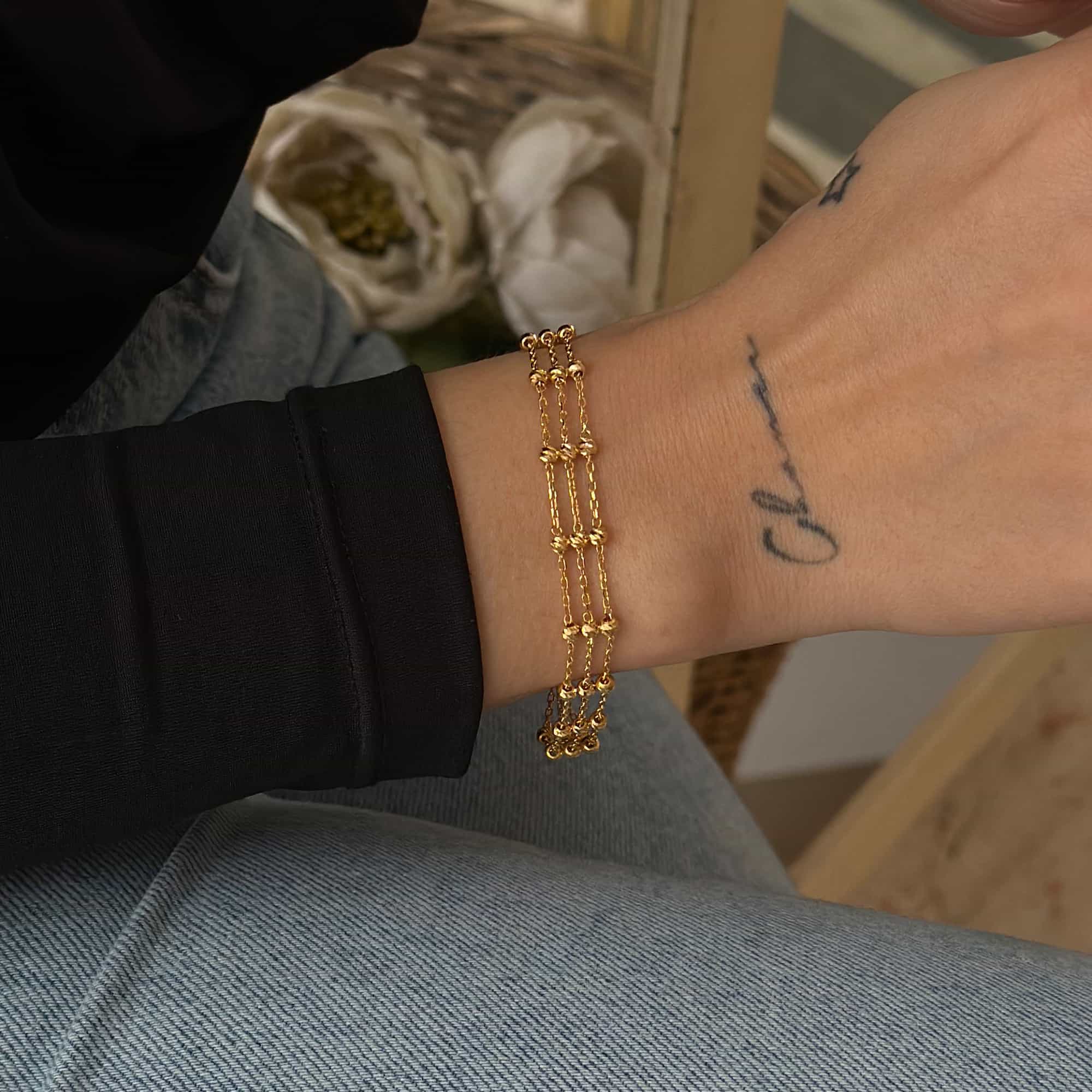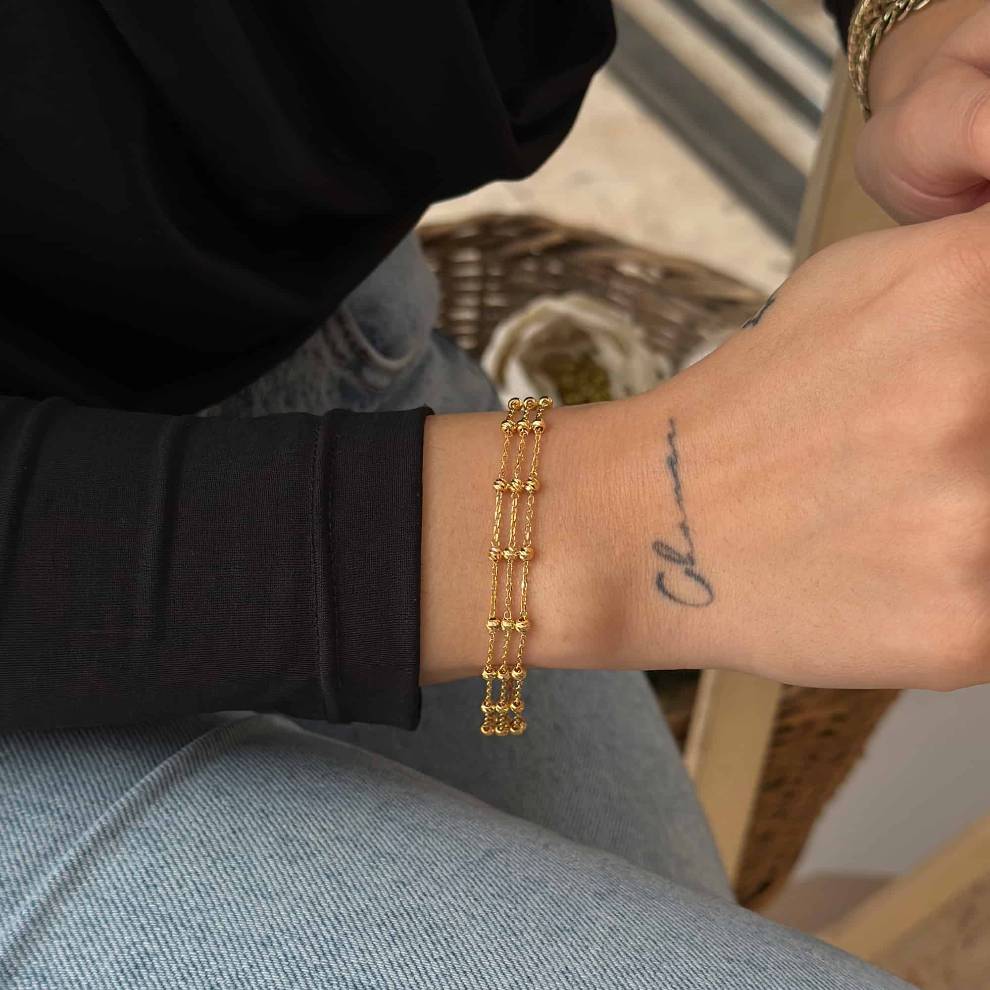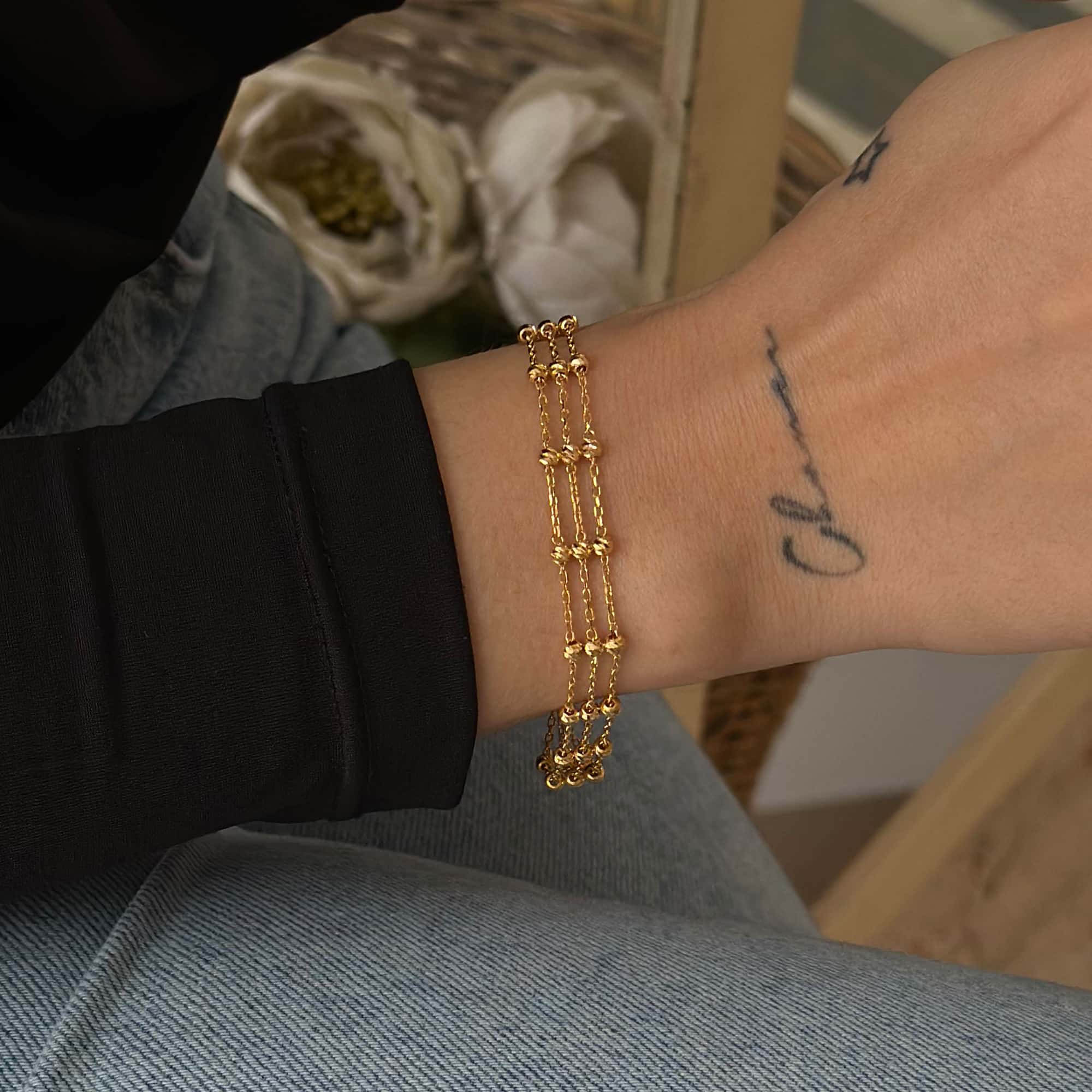 Zarif tasarımı ve ince dorika taş detaylarıyla her anınıza sofistike bir dokunuş katar. Minimal çizgisiyle günlük kullanımda da rahatlıkla tercih edebileceğiniz bu bileklik, modern ve zamansız şıklığı bir arada sunar.
