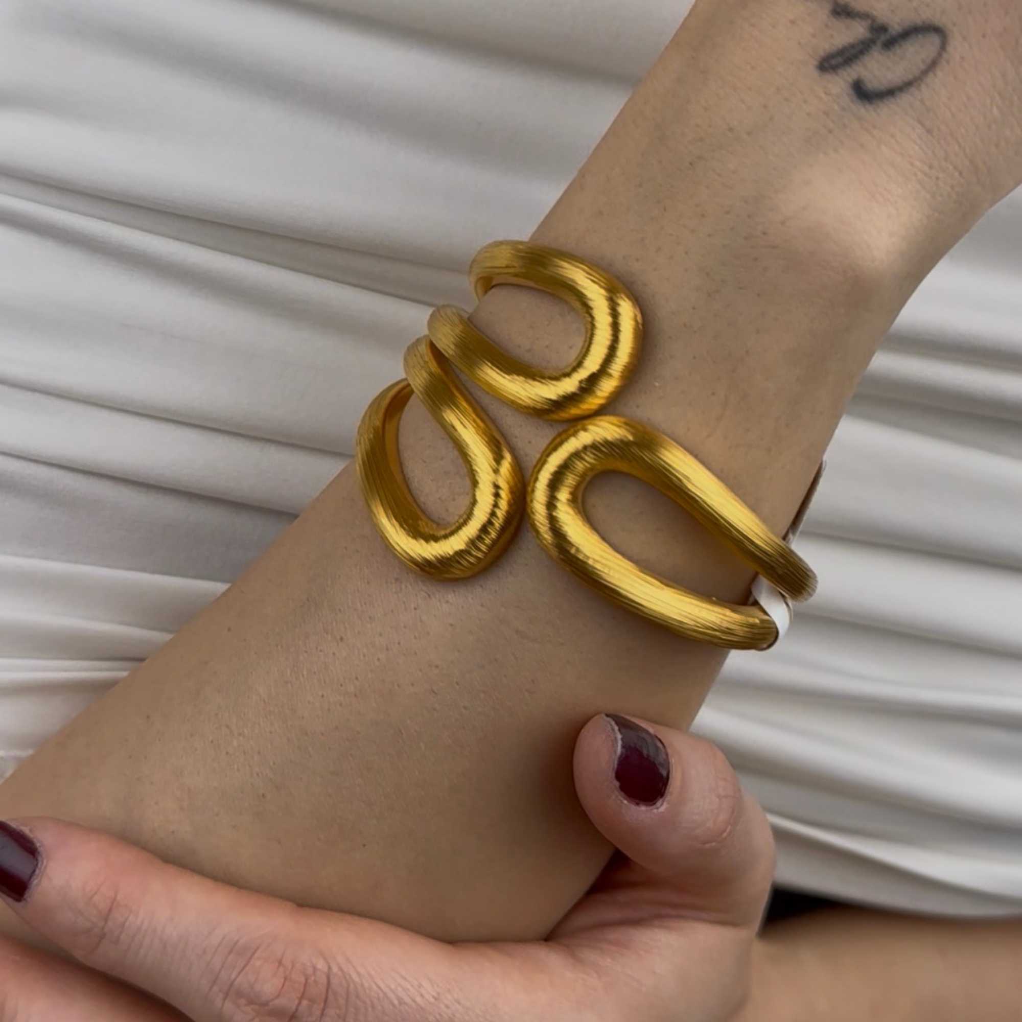 22 ayar altın kelepçe bilezik, İtalyan tasarım anlayışı ve mat yüzeyiyle modern, şık ve gösterişli bir görünüm sunar. Spor şıklığı güçlü bir duruşla birleştiren bu tasarım, günlük kullanımda stil sahibi bir tamamlayıcı, özel günlerde ise hediyelik ve prestijli bir tercih olarak öne çıkar. Sertifikalı ürün, güvenli ödeme altyapısı, ücretsiz & sigortalı kargo ile sunulmaktadır. Güncel fiyat ürün sayfasında yer almaktadır.