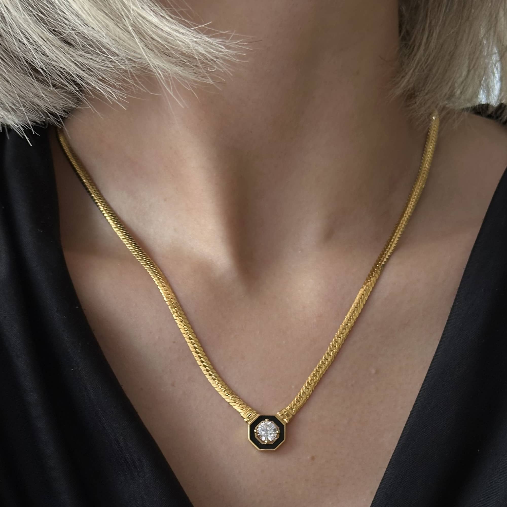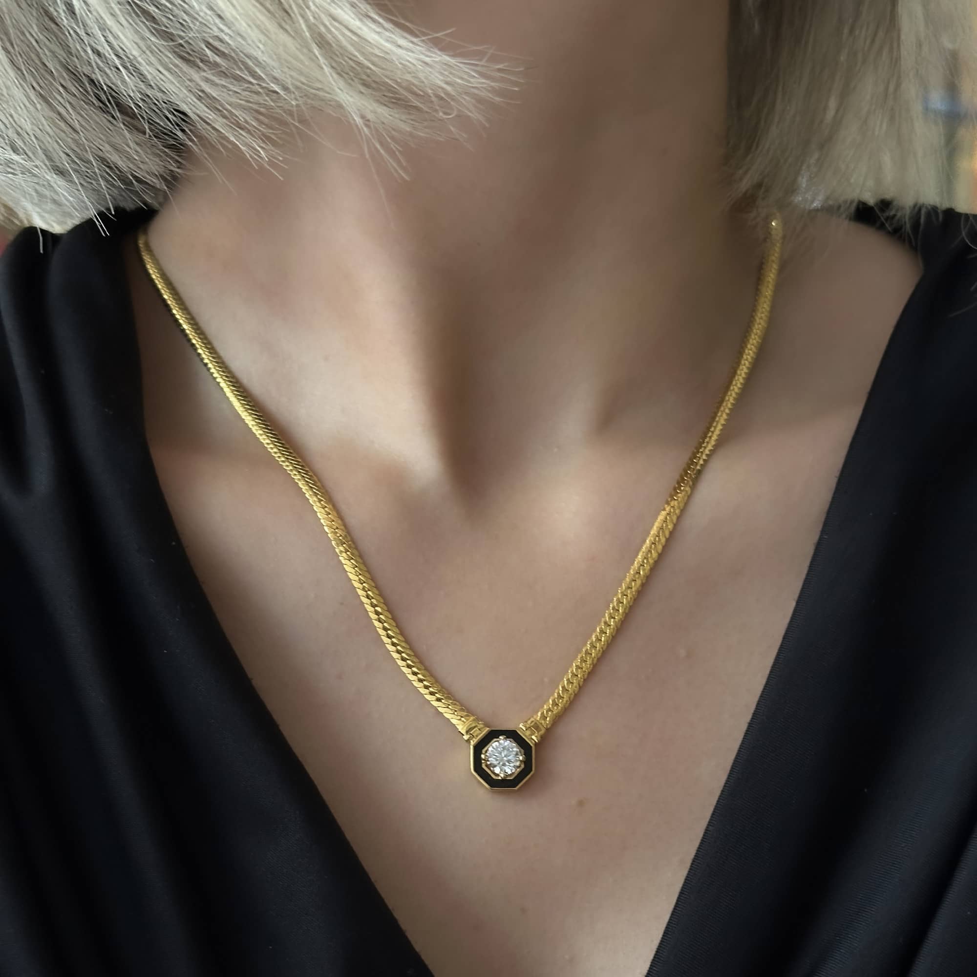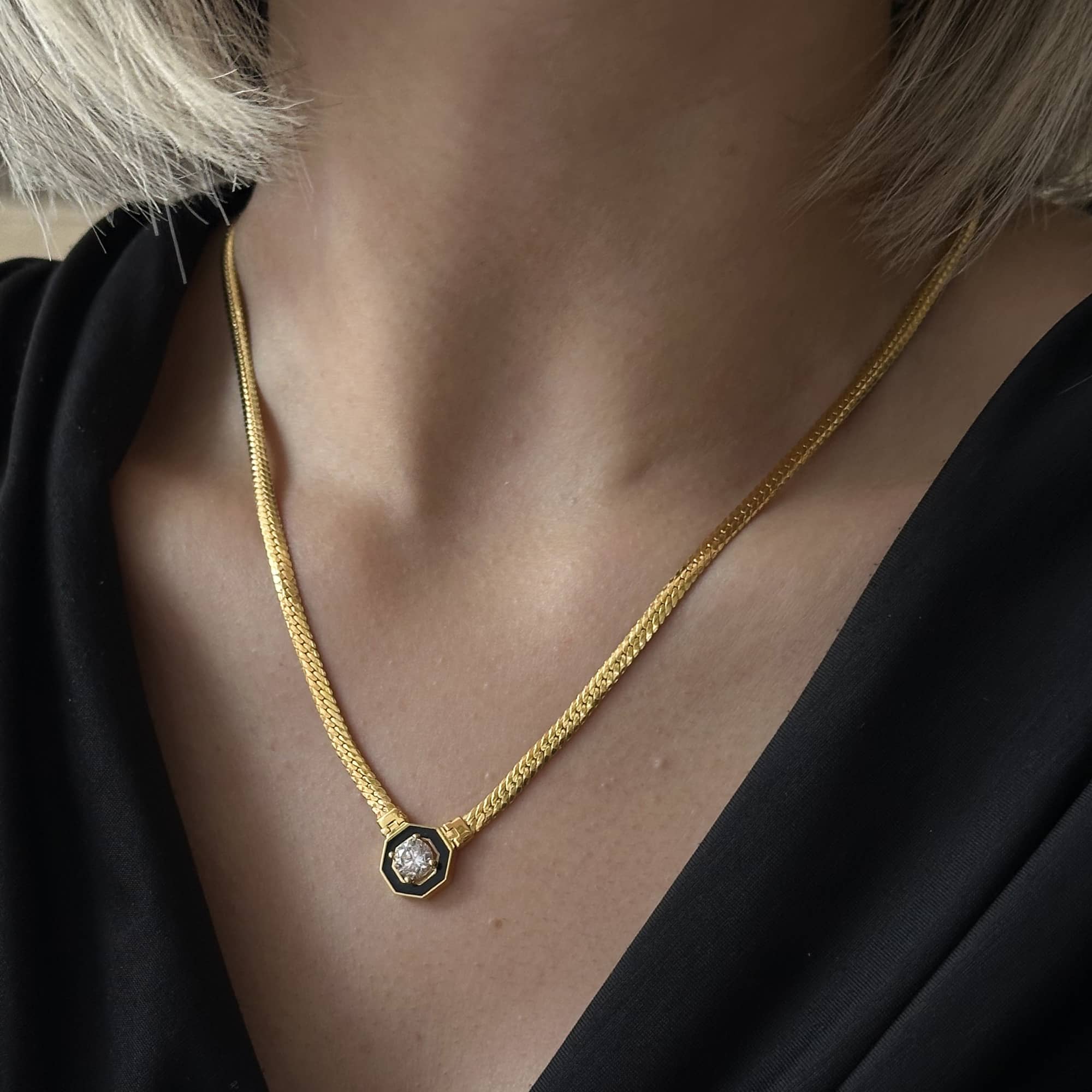 Altın Siyah Mineli Taşlı Kolye – Şık ve Modern Tasarım