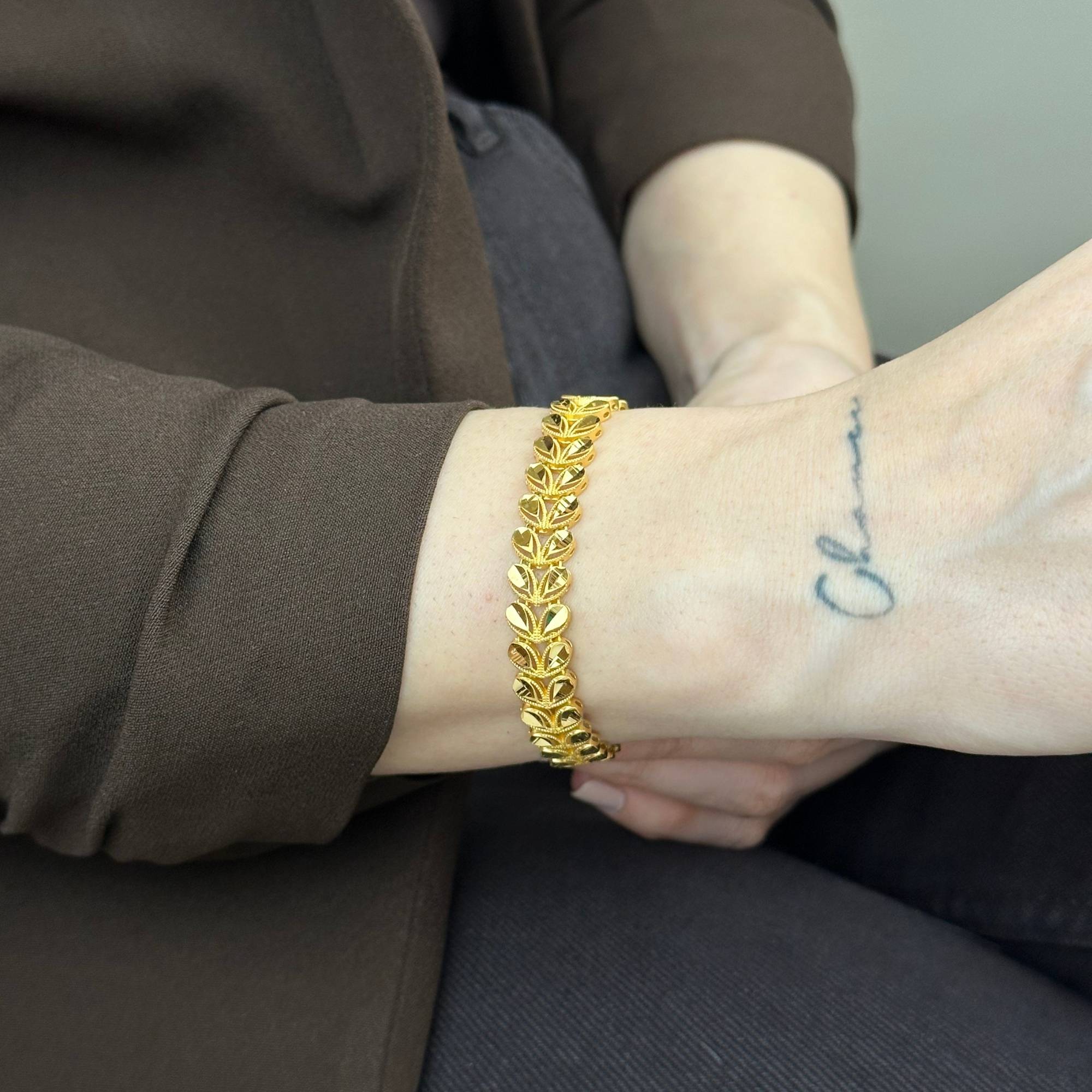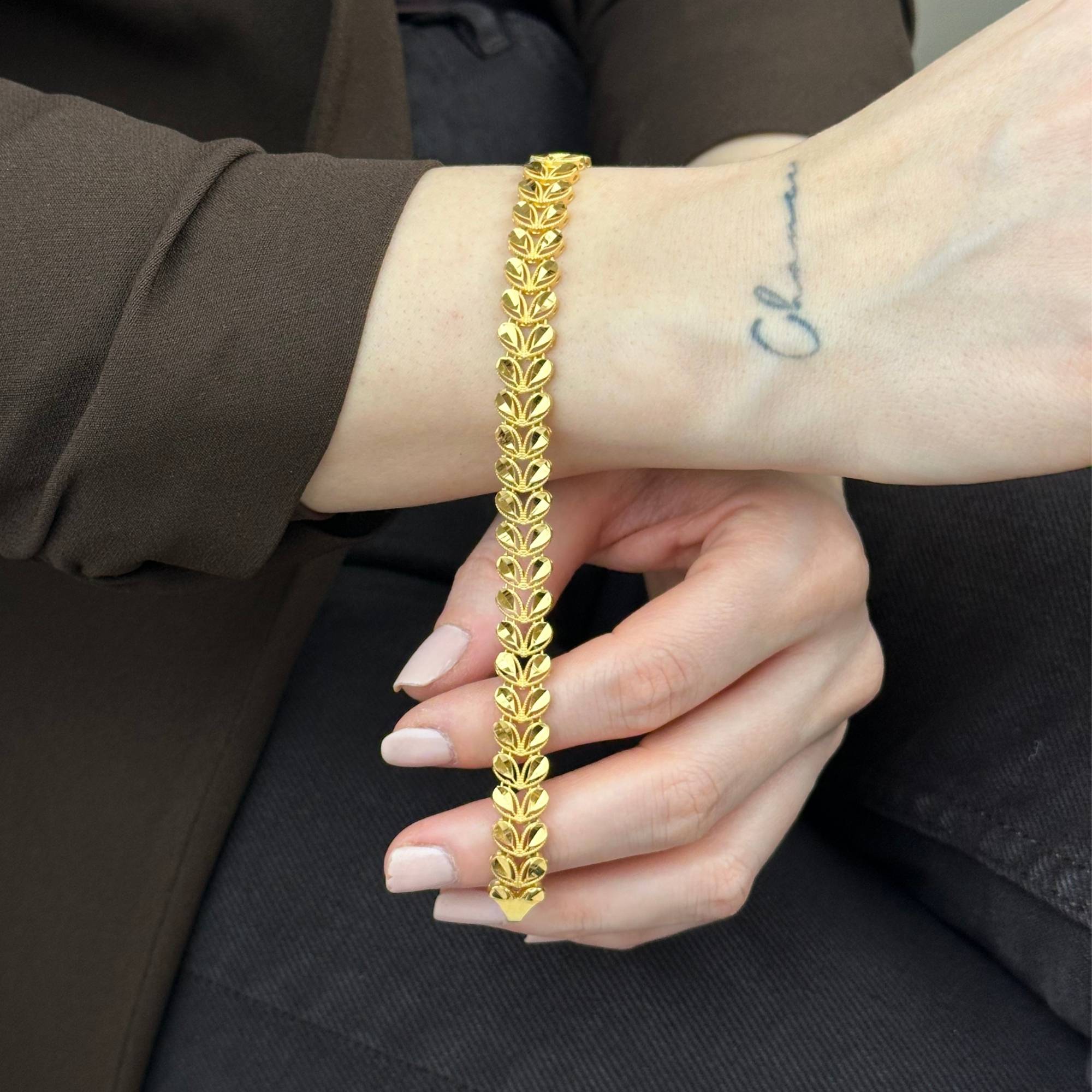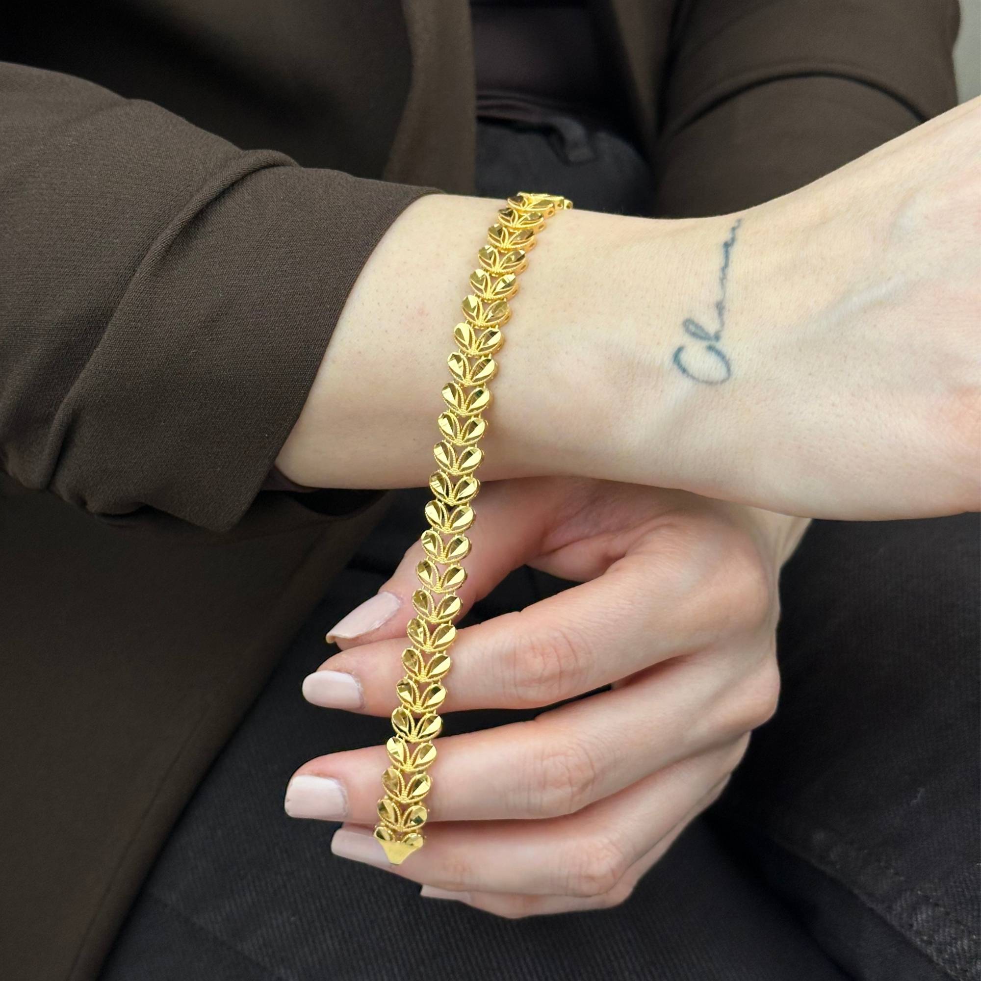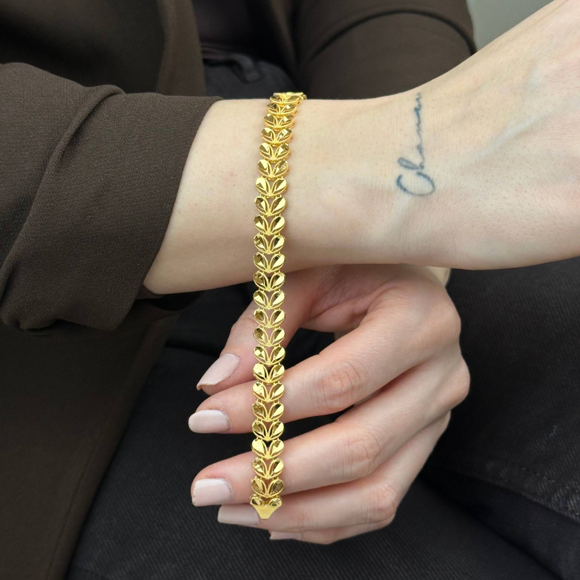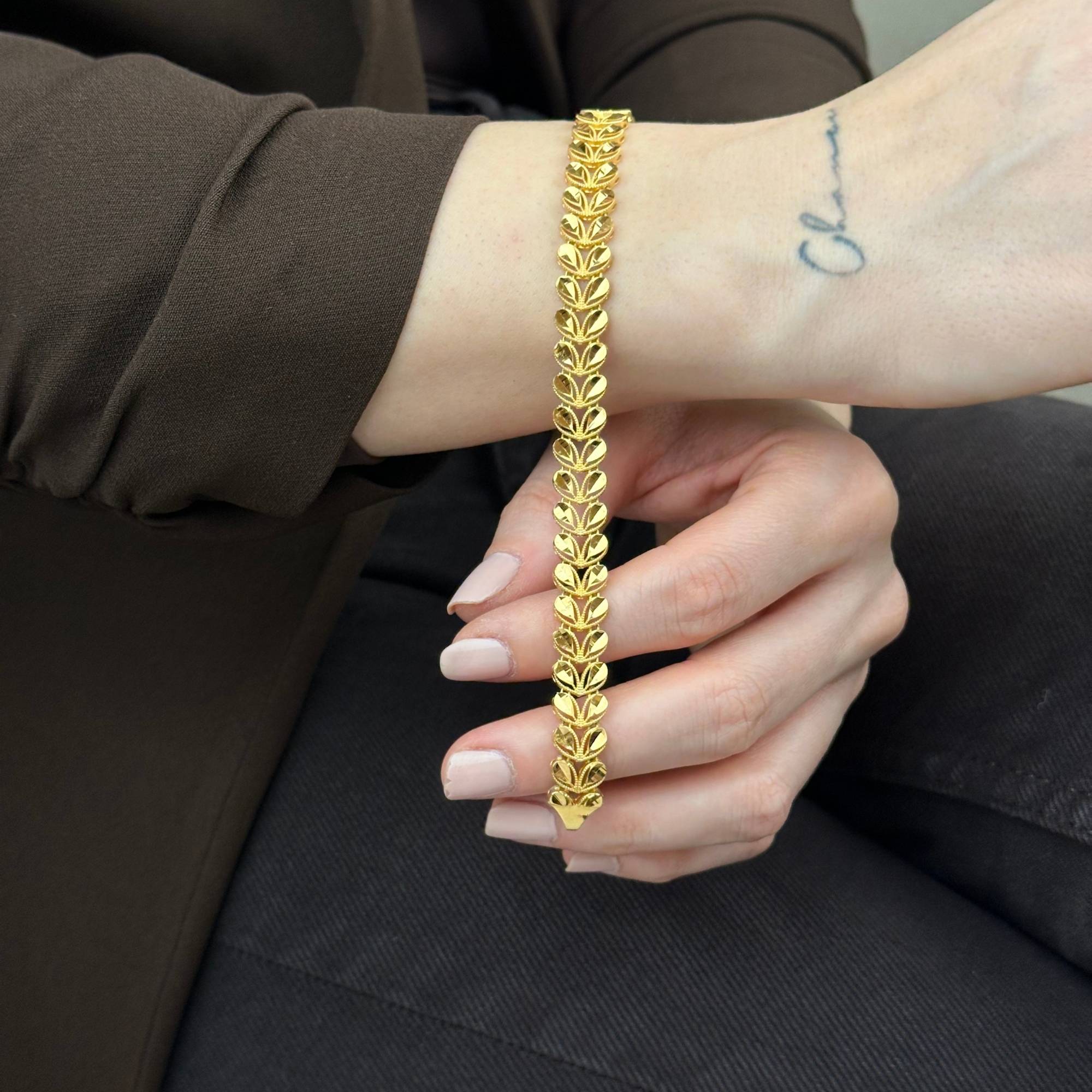 22 ayar altından üretilmiş başak bileklik, modern ve şık tasarımıyla günlük stilinizi tamamlar. Sarı altın rengiyle zarif bir duruş sunan bu model, Sevgililer Günü ve yıldönümü gibi özel günlerde şık bir hediye alternatifidir. Sertifikalı altın yapısı, güvenli ödeme altyapısı, ücretsiz kargo, sigortalı gönderim ve kredi kartına 3 taksit imkanı ile sunulmaktadır.