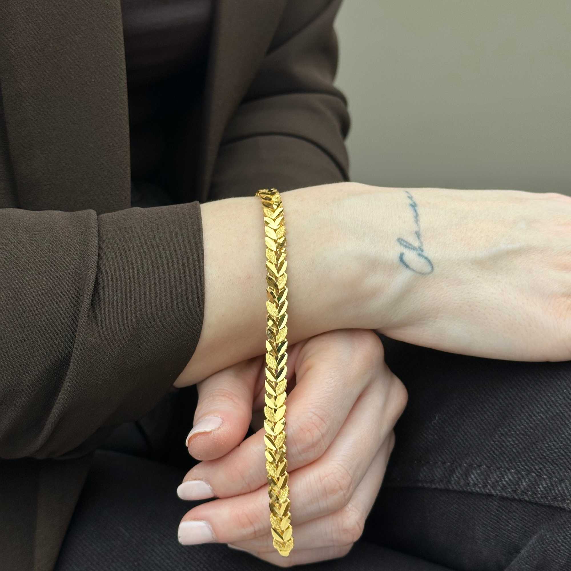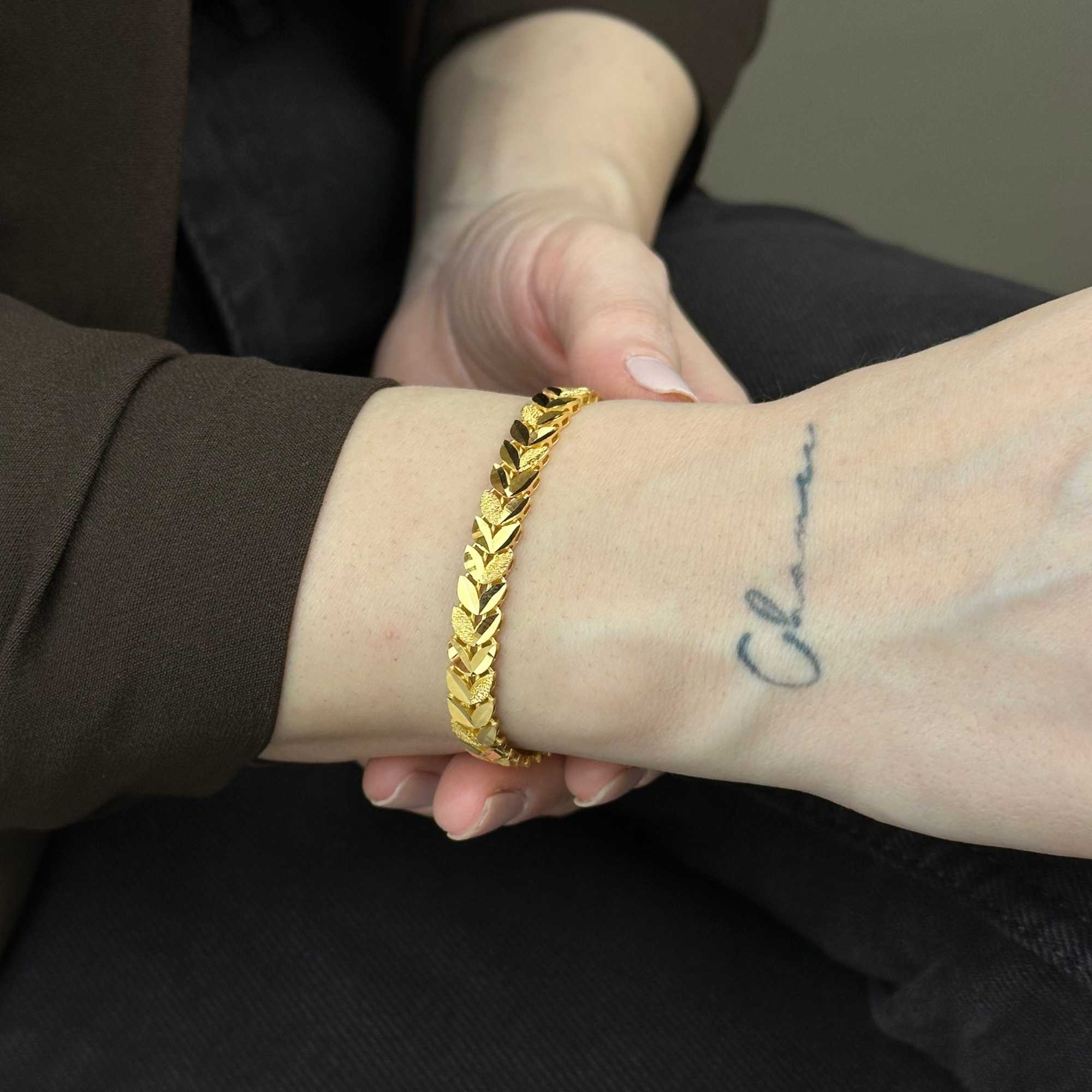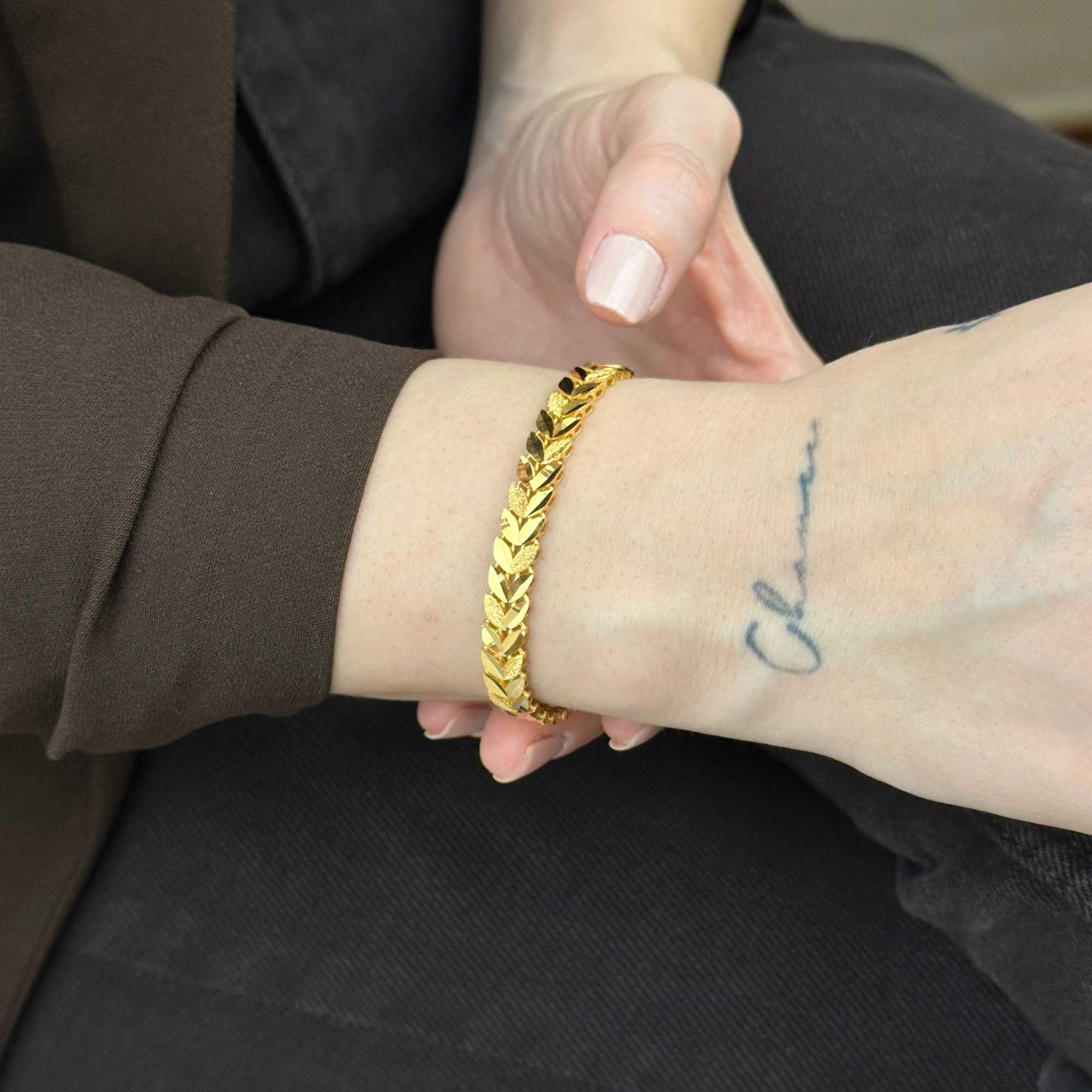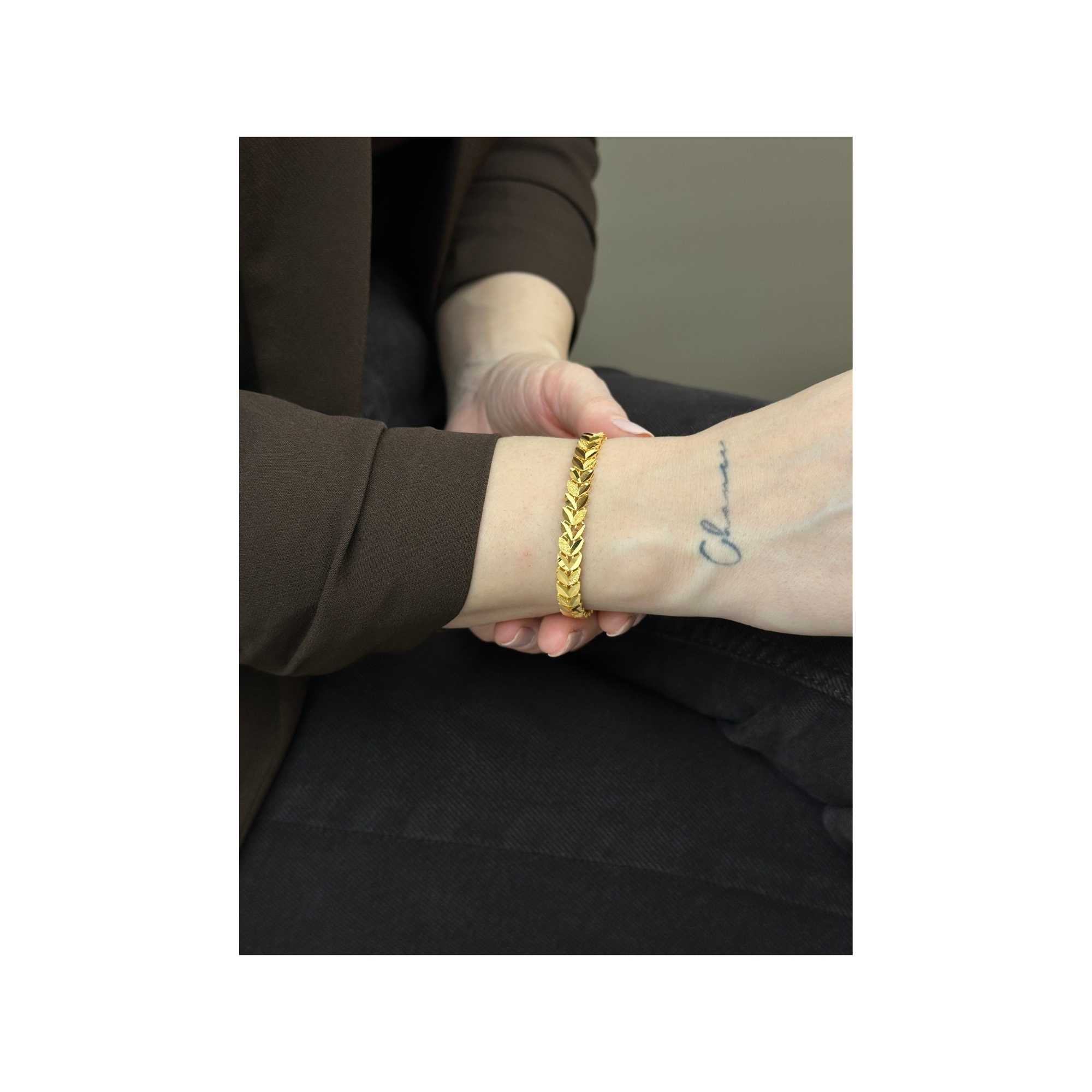 22 ayar altından üretilmiş başak model bileklik, modern, şık ve zarif tasarımıyla günlük kullanım ve özel günler için uygundur. Kumlu dokusu ve başak formuyla dikkat çeken stil; Sevgililer Günü, yıldönümü ve hediyelik için değerli bir tercihtir. Sertifikalı altın yapısı, güvenli ödeme altyapısı, ücretsiz & sigortalı kargo ve kredi kartına 3 taksit imkanı sunulmaktadır. Güncel fiyat bilgisi ürün sayfasında yer almaktadır. Hediye paketi ücretsizdir. Not kartınızı sipariş sırasında ekletebilirsiniz.