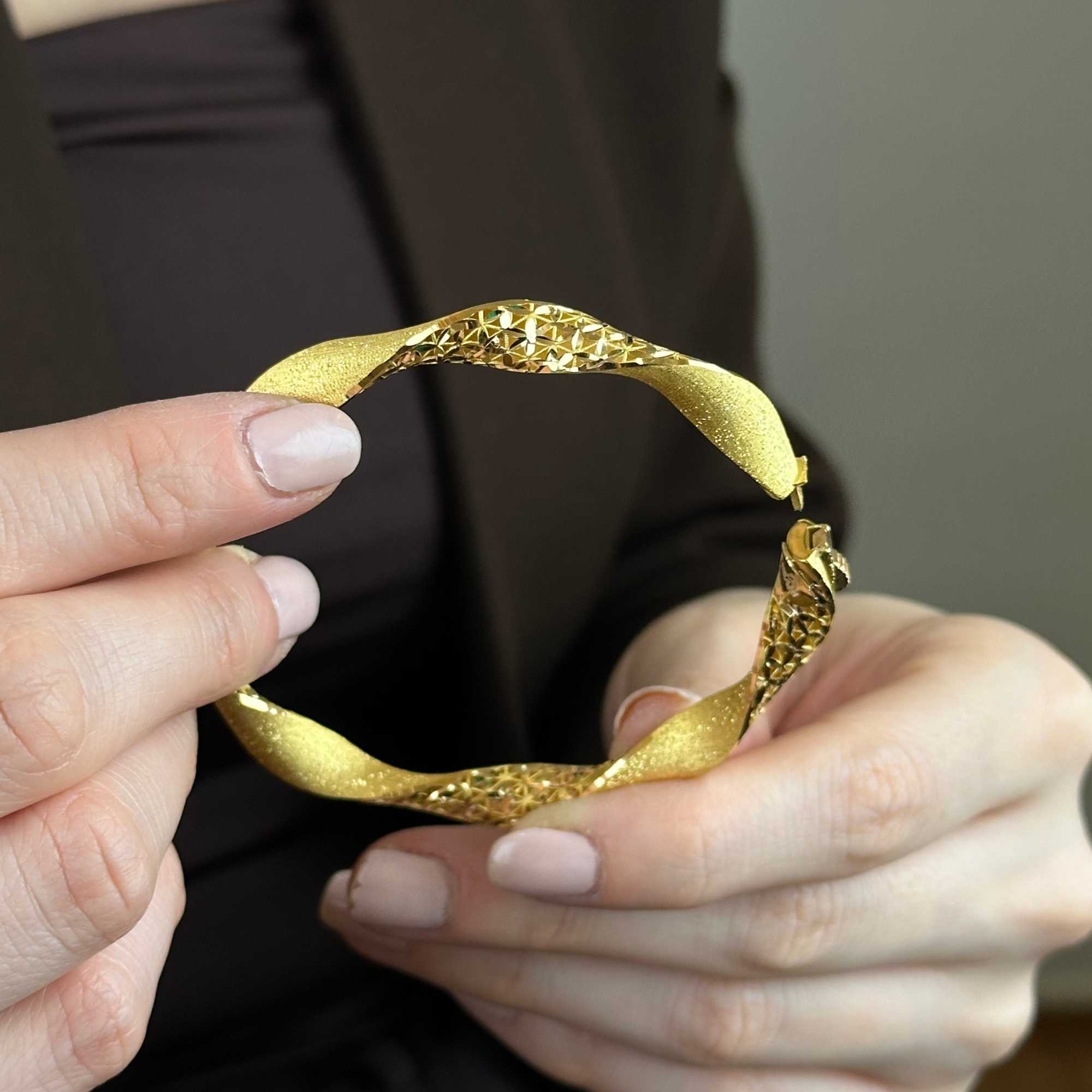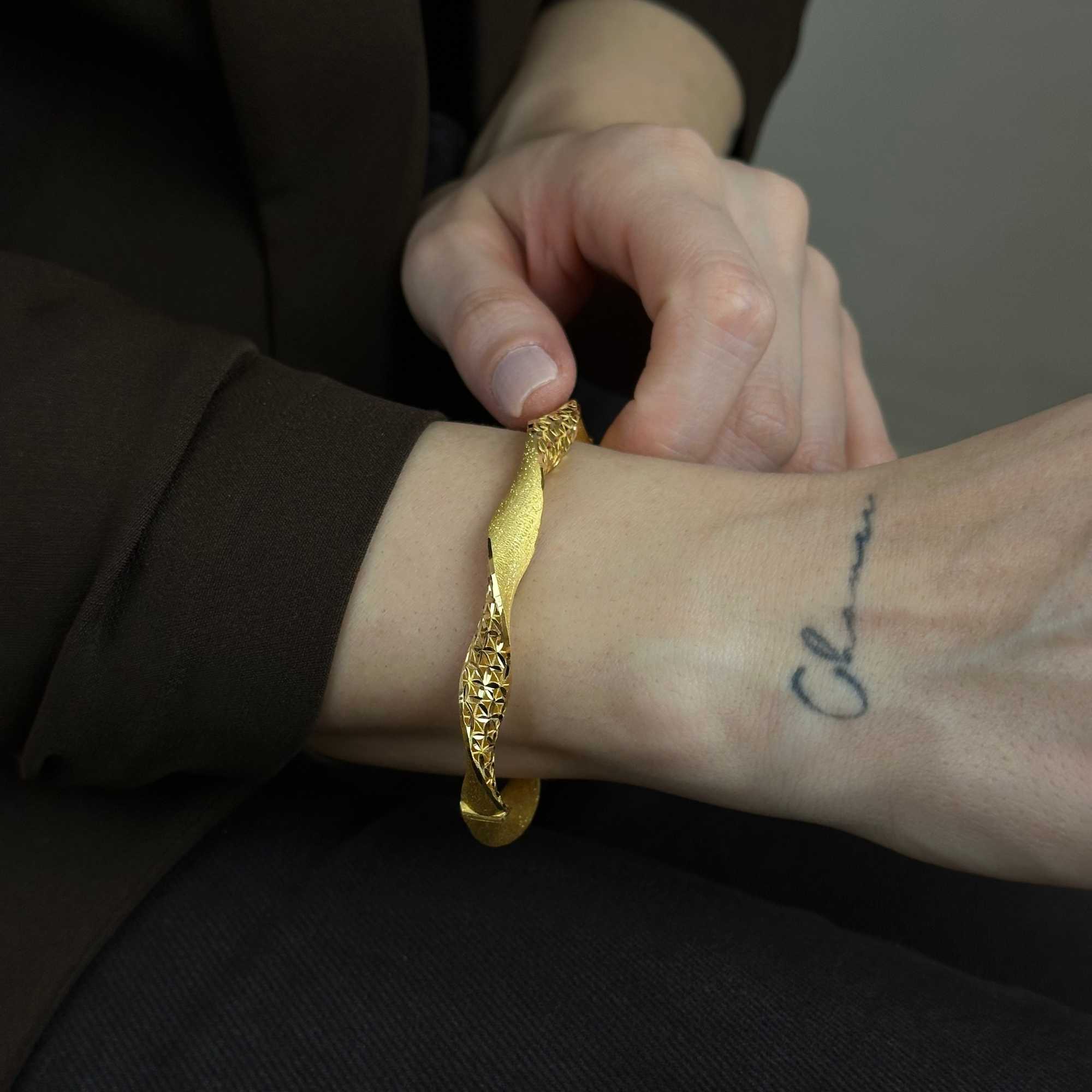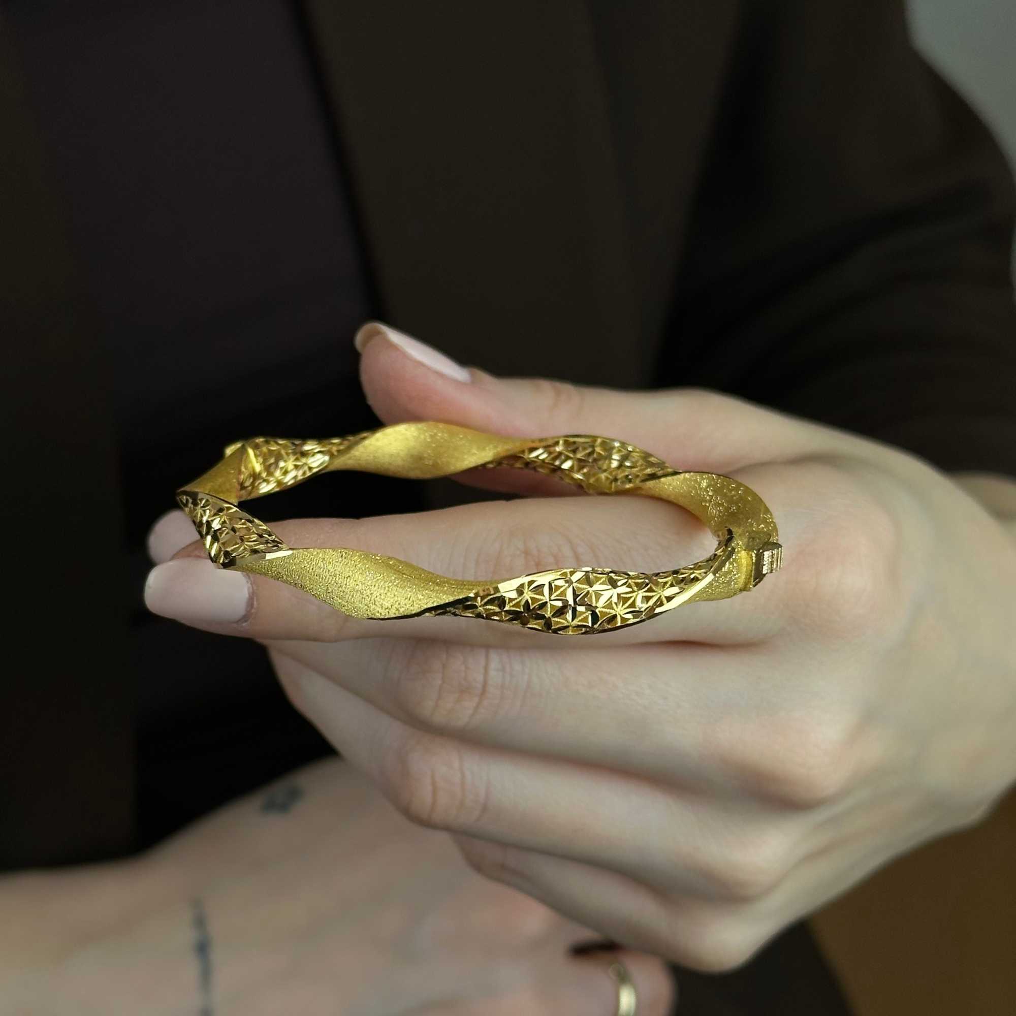 22 ayar altından üretilmiş burgu kelepçe, mat ve simli detaylarıyla modern, şık ve zarif bir görünüm sunar. Günlük kullanım ve özel günler için uygundur; Sevgililer Günü, yıldönümü ve hediyelik olarak değerli bir seçenektir. Sertifikalı ürün garantisi, güvenli ödeme altyapısı, ücretsiz & sigortalı kargo ve kredi kartına 3 taksit imkanı ile sunulmaktadır. Güncel fiyat bilgisi ürün sayfasındadır.