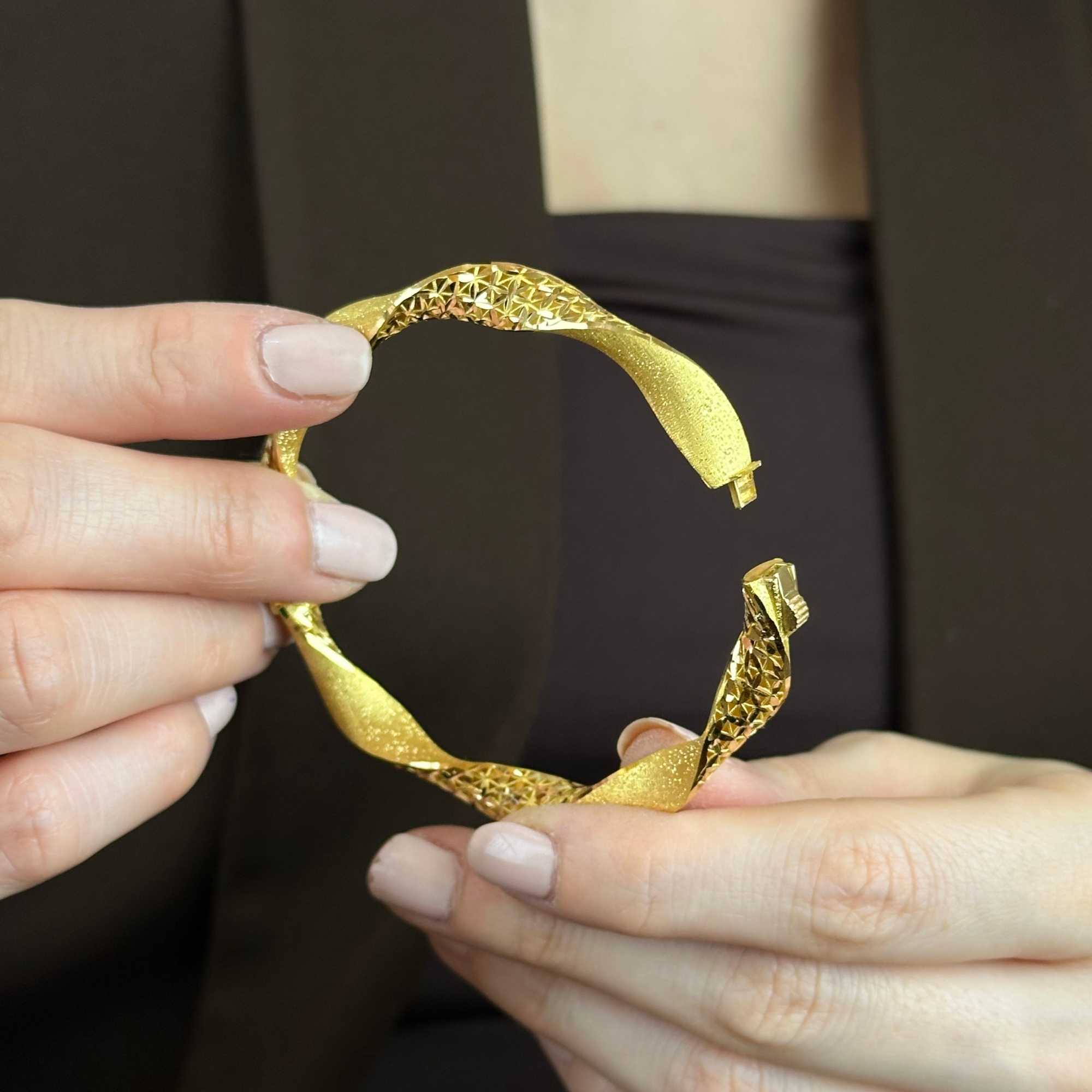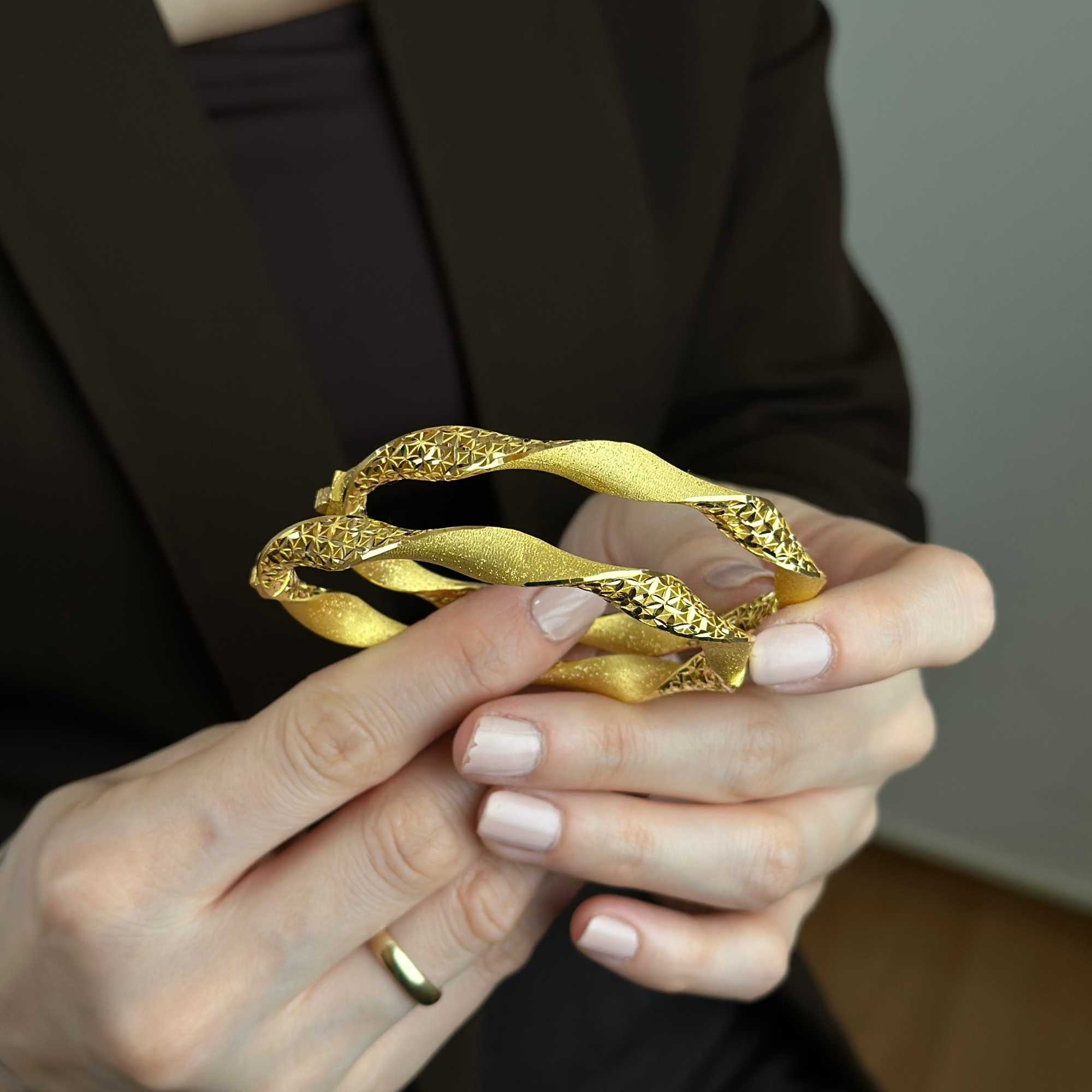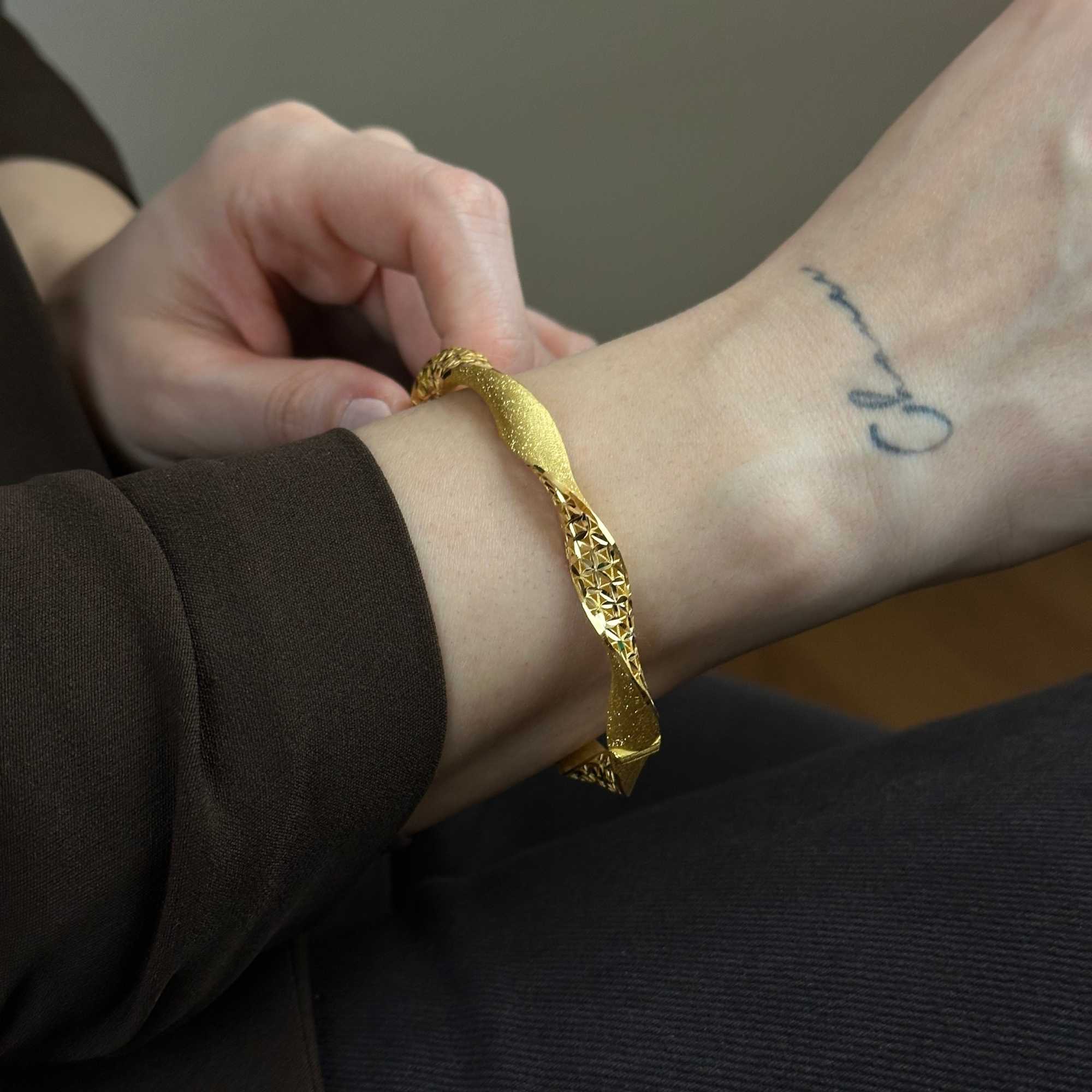 22 ayar altından üretilmiş burgu kelepçe, mat ve simli detaylarıyla modern, şık ve zarif bir görünüm sunar. Günlük kullanım ve özel günler için uygundur; Sevgililer Günü, yıldönümü ve hediyelik olarak değerli bir seçenektir. Sertifikalı ürün garantisi, güvenli ödeme altyapısı, ücretsiz & sigortalı kargo ve kredi kartına 3 taksit imkanı ile sunulmaktadır. Güncel fiyat bilgisi ürün sayfasındadır.
