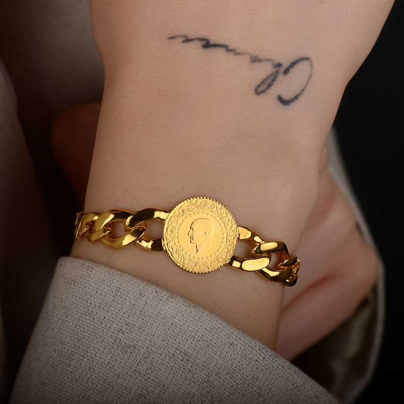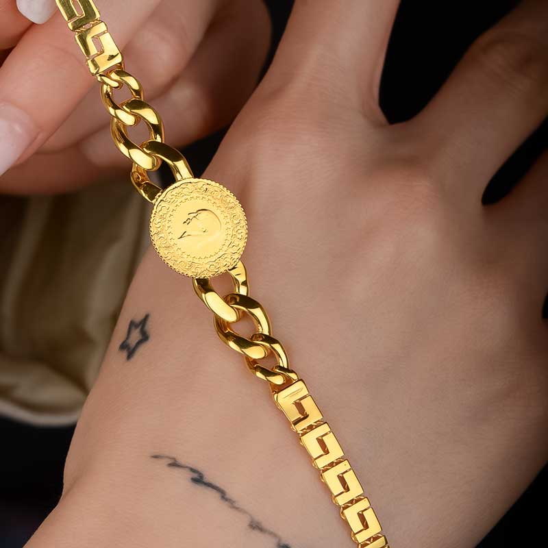 Çeyrek Altınlı Halka Grek Zincir Bileklik