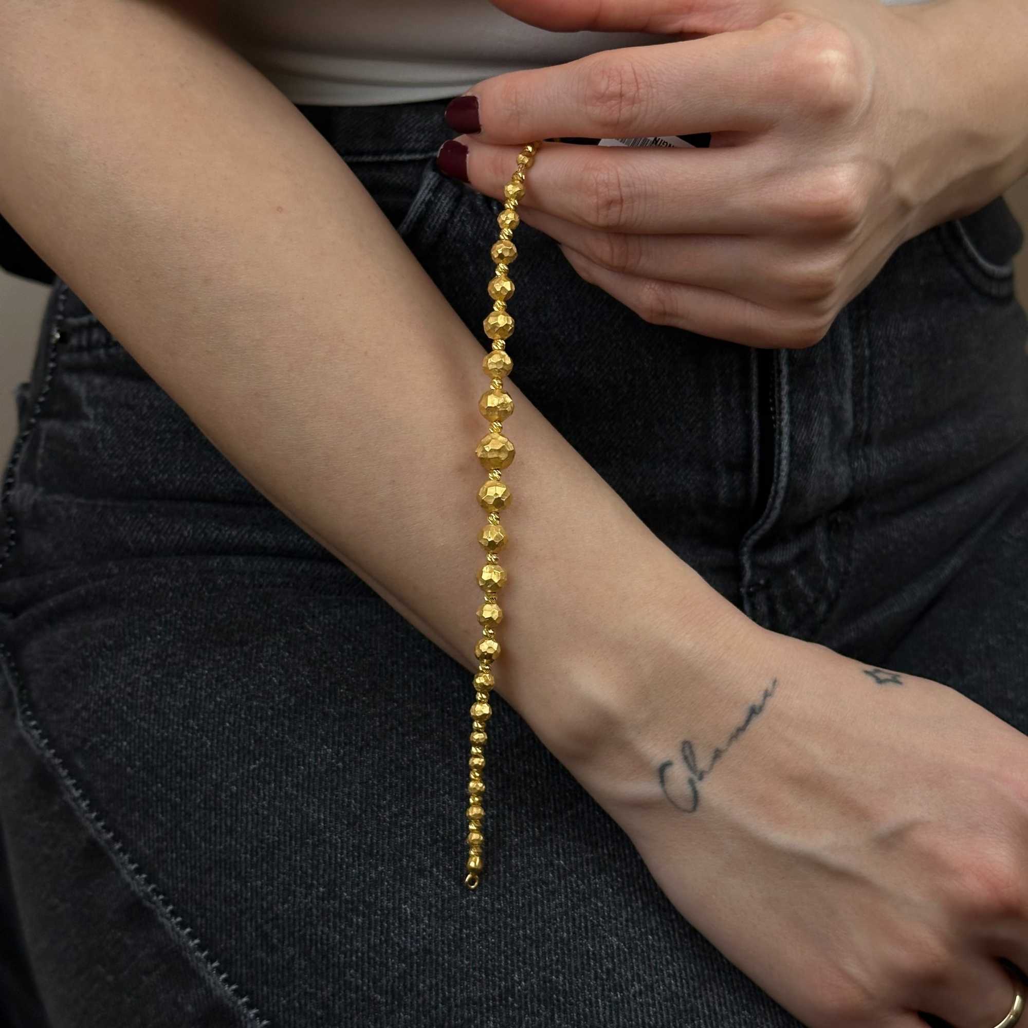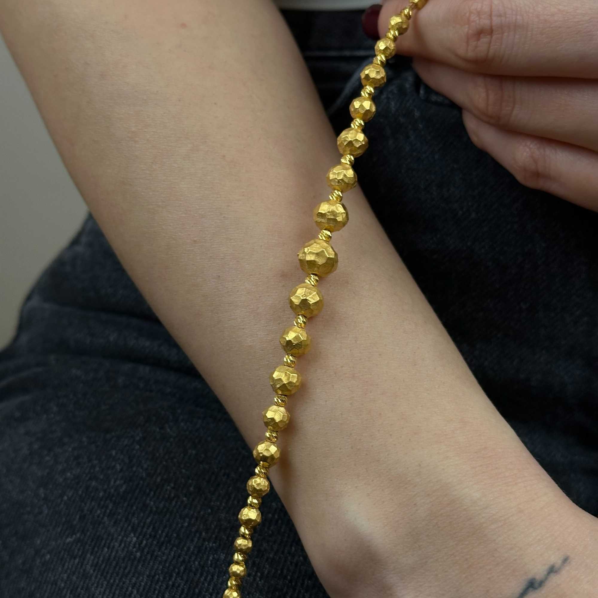 22 ayar altın dorika bileklik, süzme ve sıralı yapısı ile tamamen el işçiliği detaylara sahiptir. Mat kalemli yüzeyi, ışığı yumuşak biçimde yansıtarak sofistike bir görünüm sunar. Günlük kullanımda zarif bir tamamlayıcı, özel günlerde ise hediyelik ve prestijli bir tercih olarak öne çıkar. Sertifikalı ürün, güvenli ödeme altyapısı, ücretsiz & sigortalı kargo ile sunulmaktadır. Güncel fiyat ürün sayfasında yer almaktadır.