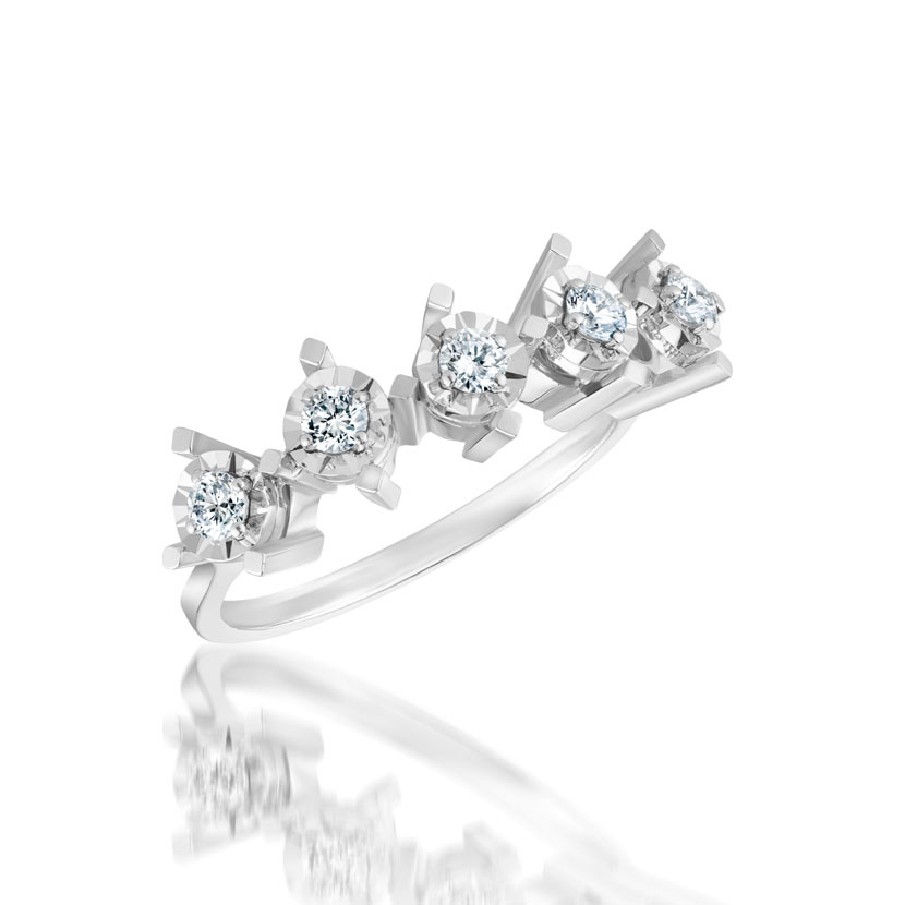 14K BEYAZ ALTIN EFEKTLİ PIRLANTA BEŞTAŞ YÜZÜK