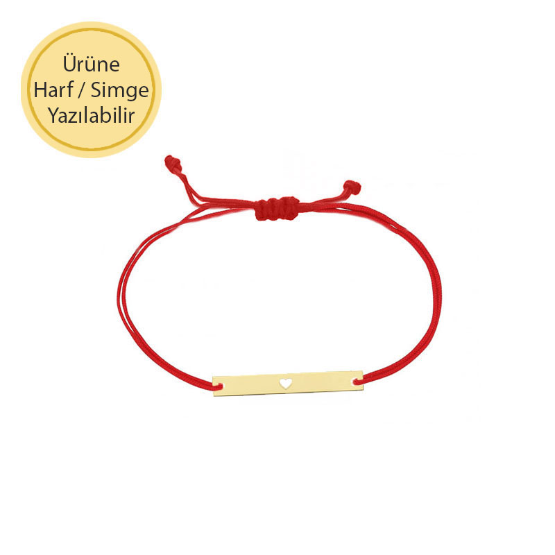 İp Örgü 14k Altın Kalpli Çubuk Bileklik