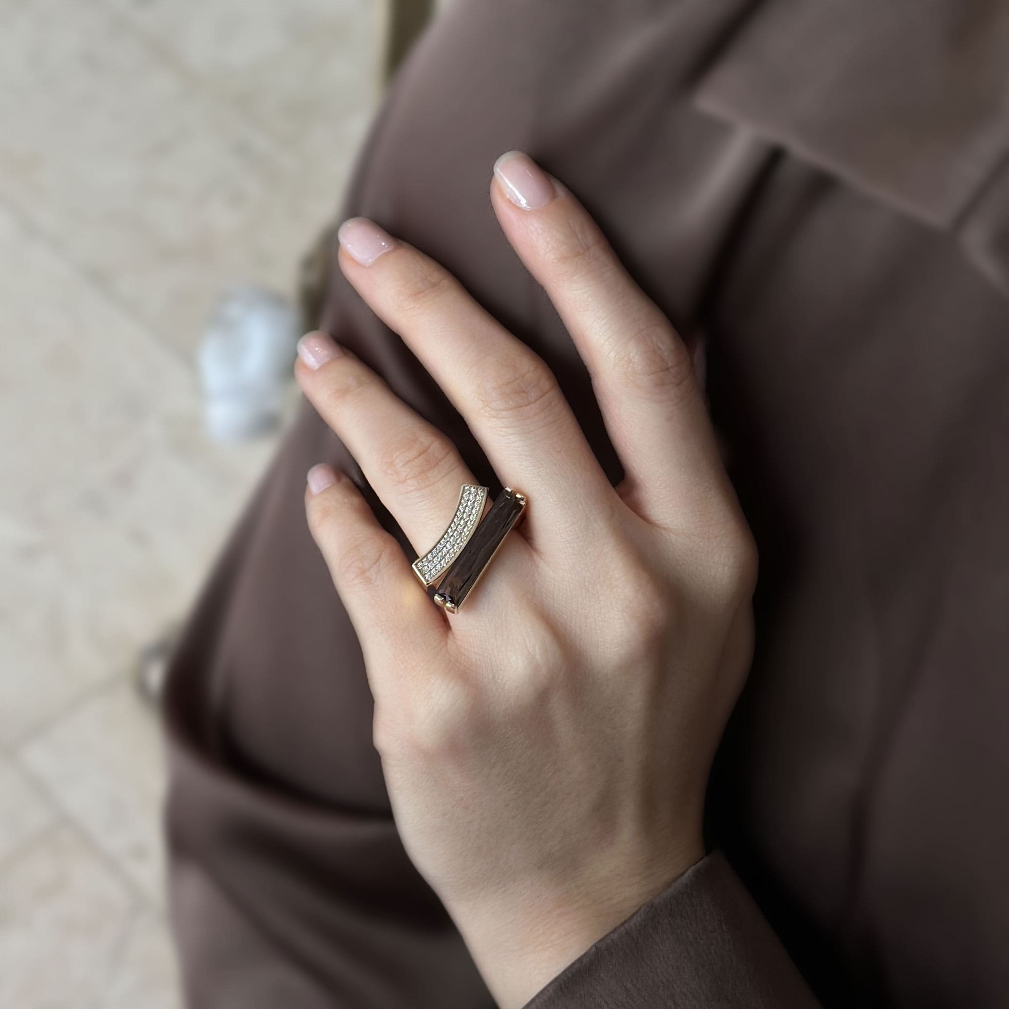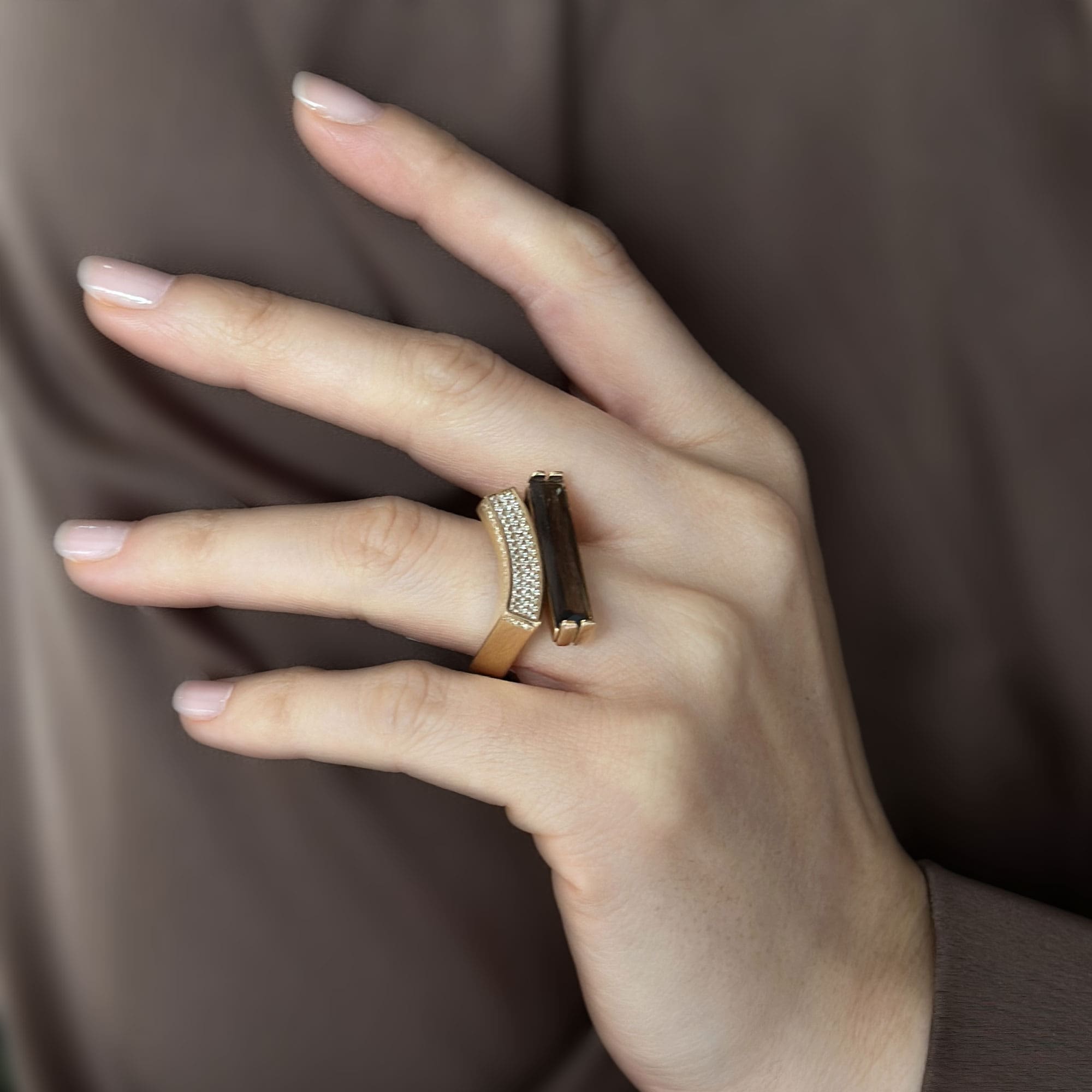 Kahverengi Taşlı Altın Yüzük Tasarım Modeli