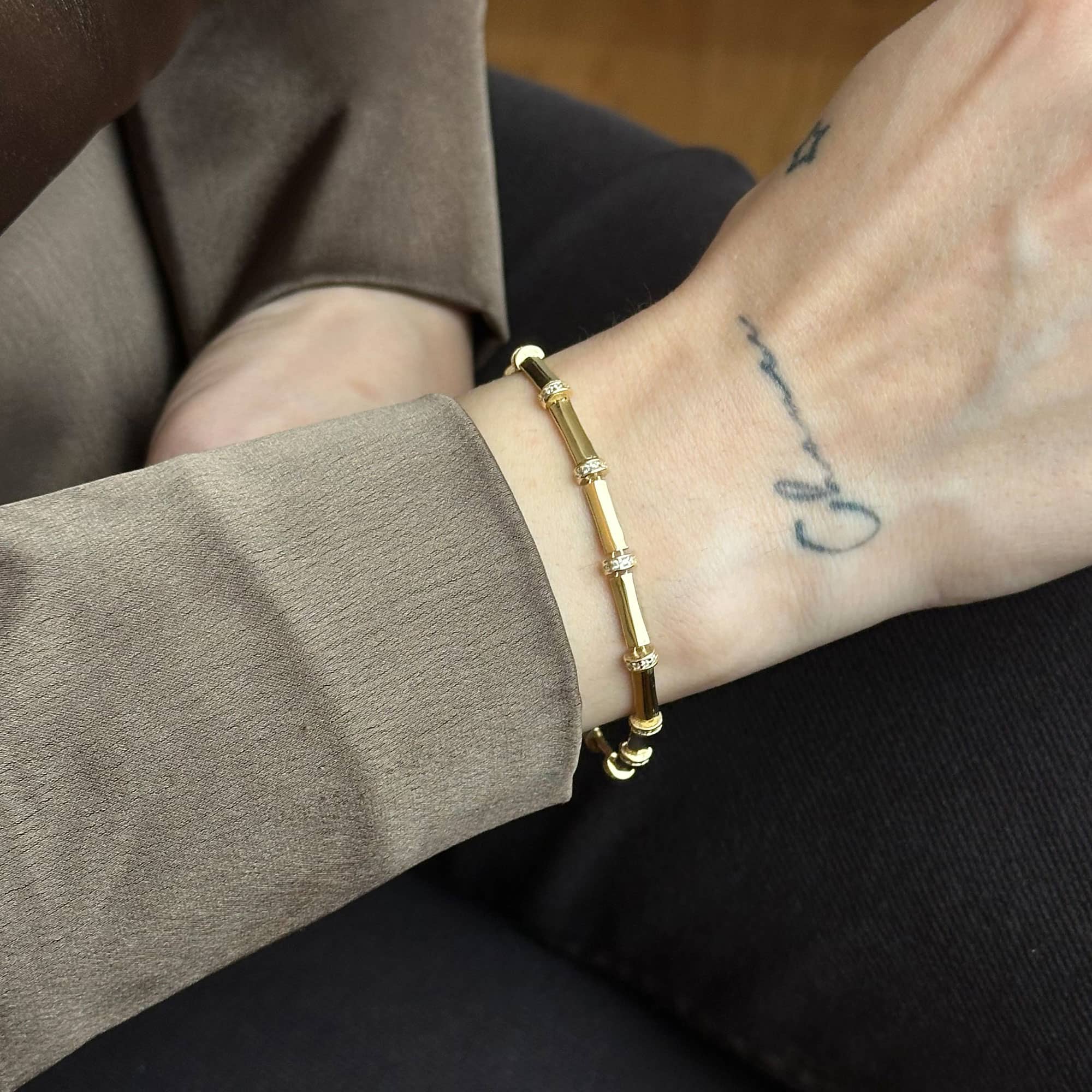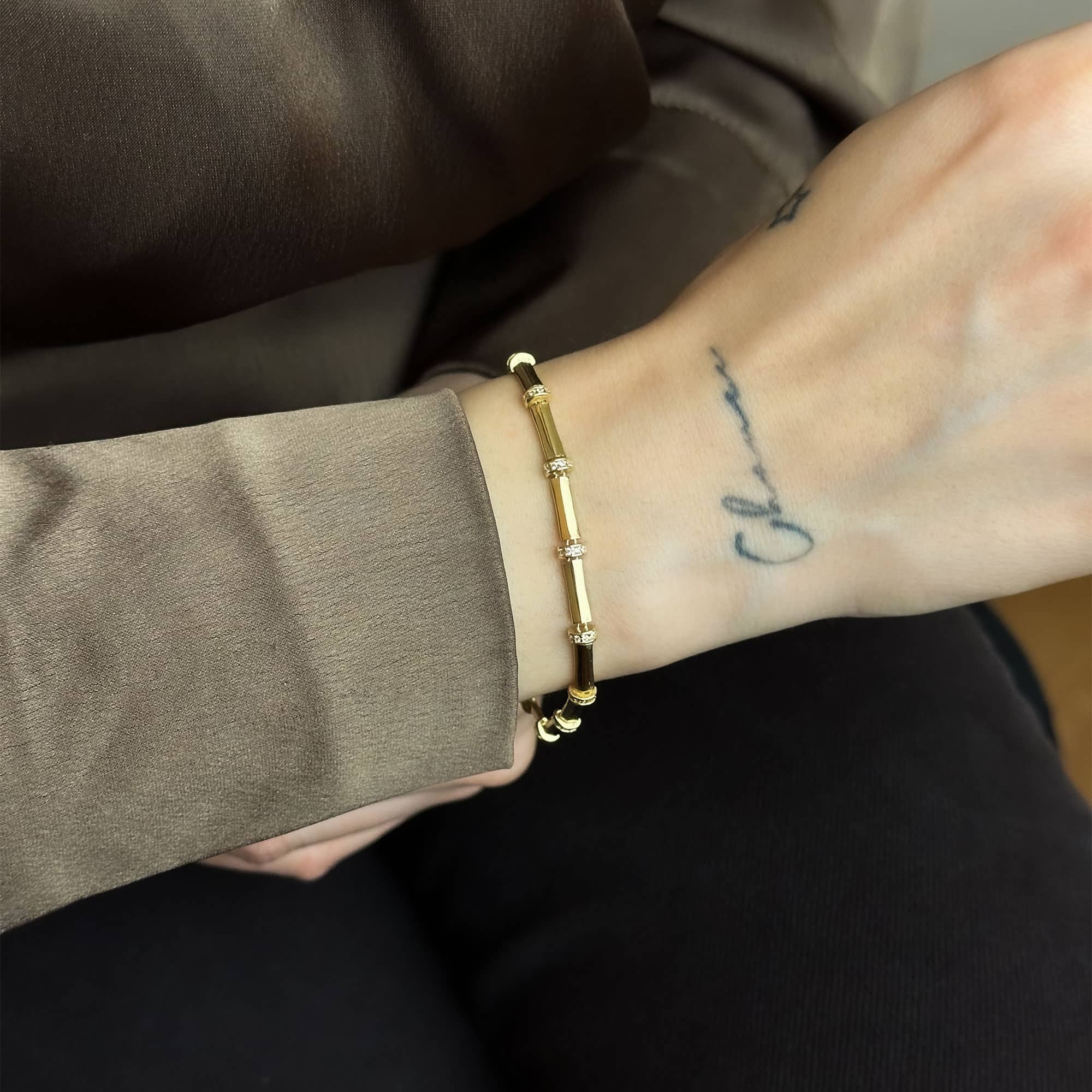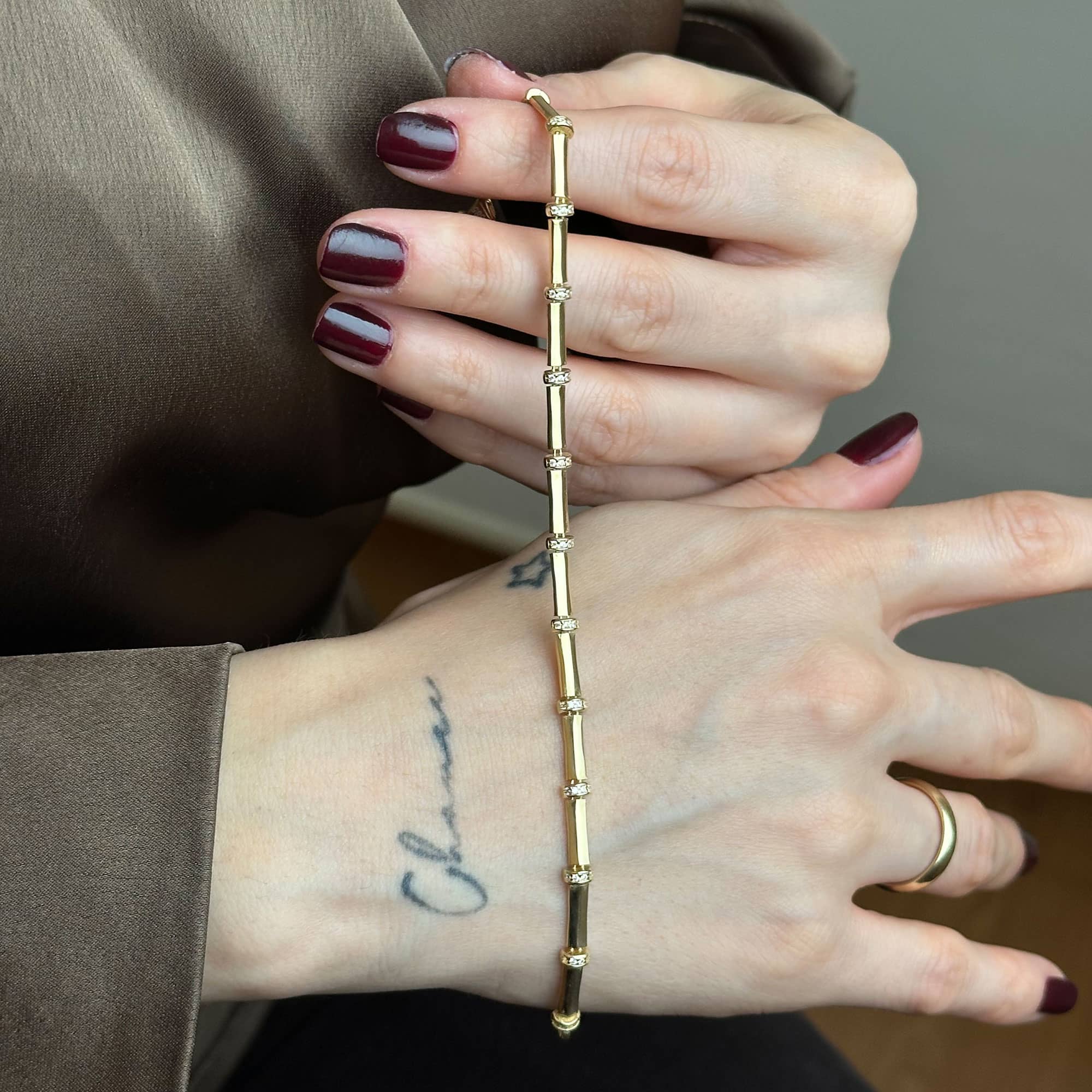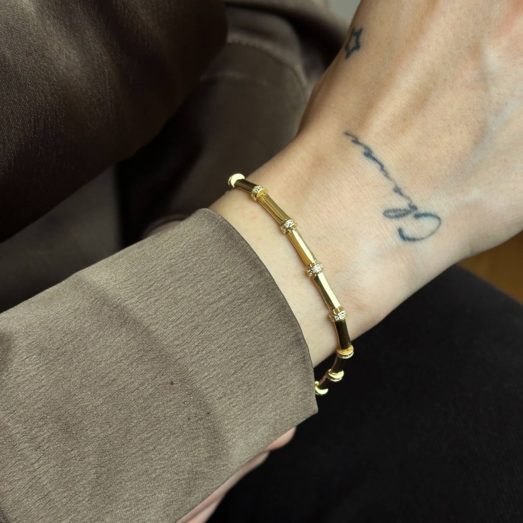 14 ayar altından üretilmiş bar taşlı kemik bileklik modeli, modern, şık ve minimal tasarımıyla günlük kullanım için idealdir. Sarı altın rengiyle sade bir ışıltı sunar; Sevgililer Günü ve yıldönümü için zarif bir hediye alternatifidir. Sertifikalı altın yapısı, güvenli ödeme altyapısı, ücretsiz kargo, sigortalı kargo ve kredi kartına 3 taksit imkanı ile sunulmaktadır. Güncel fiyat bilgisi ürün sayfasında yer almaktadır.
