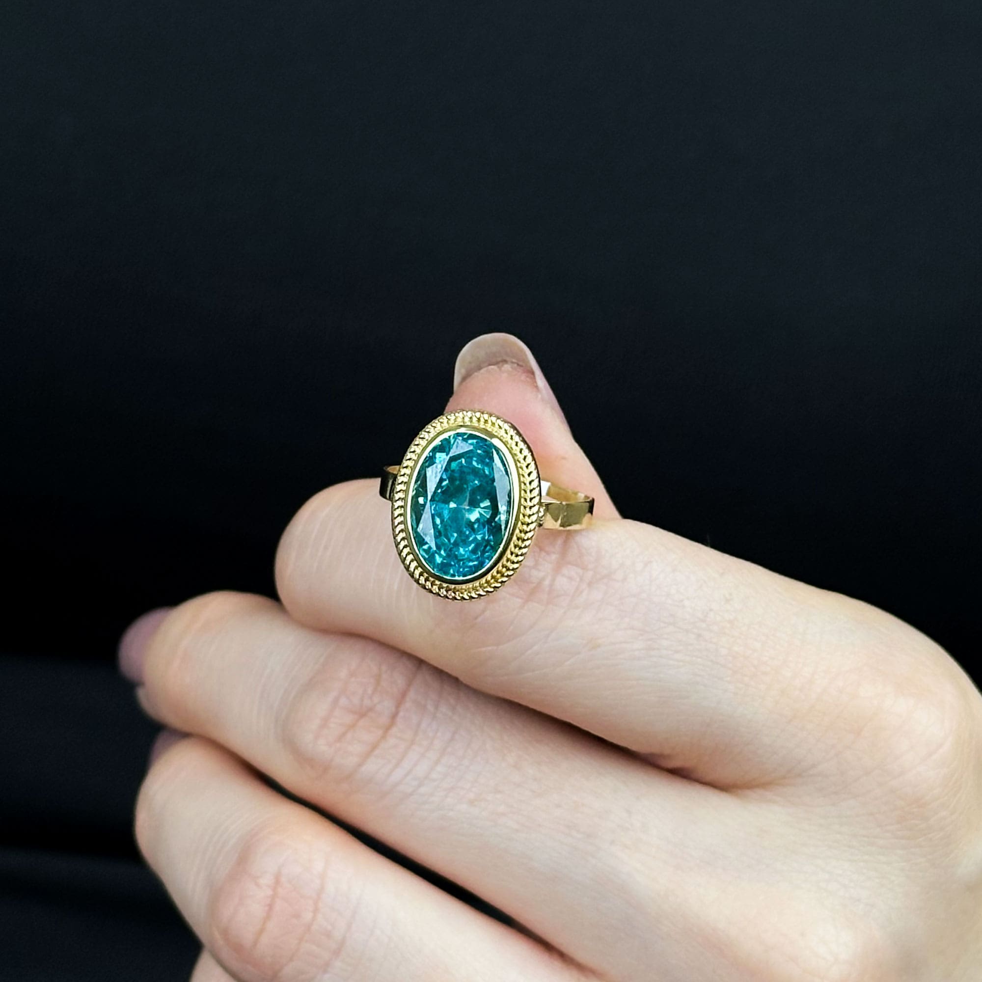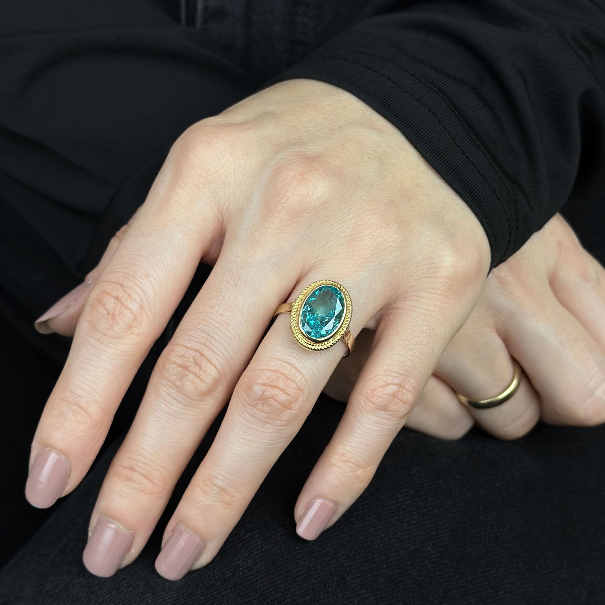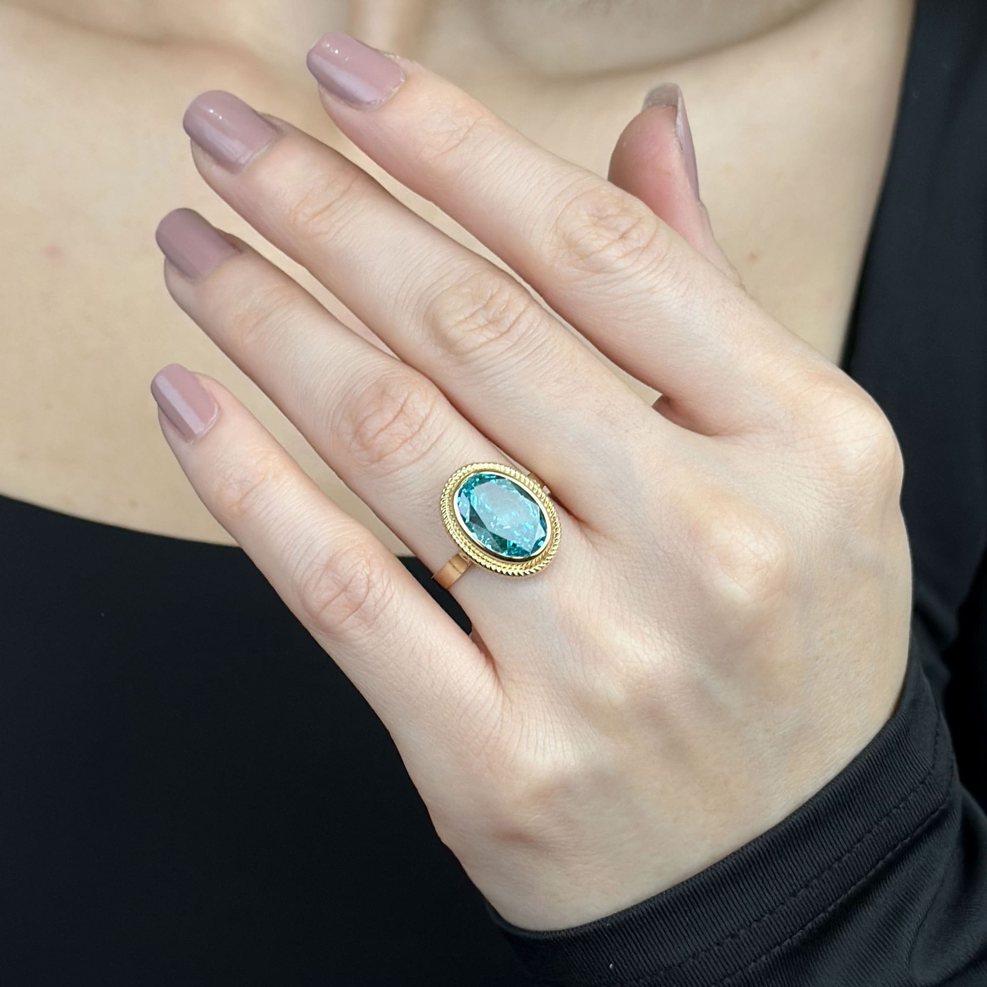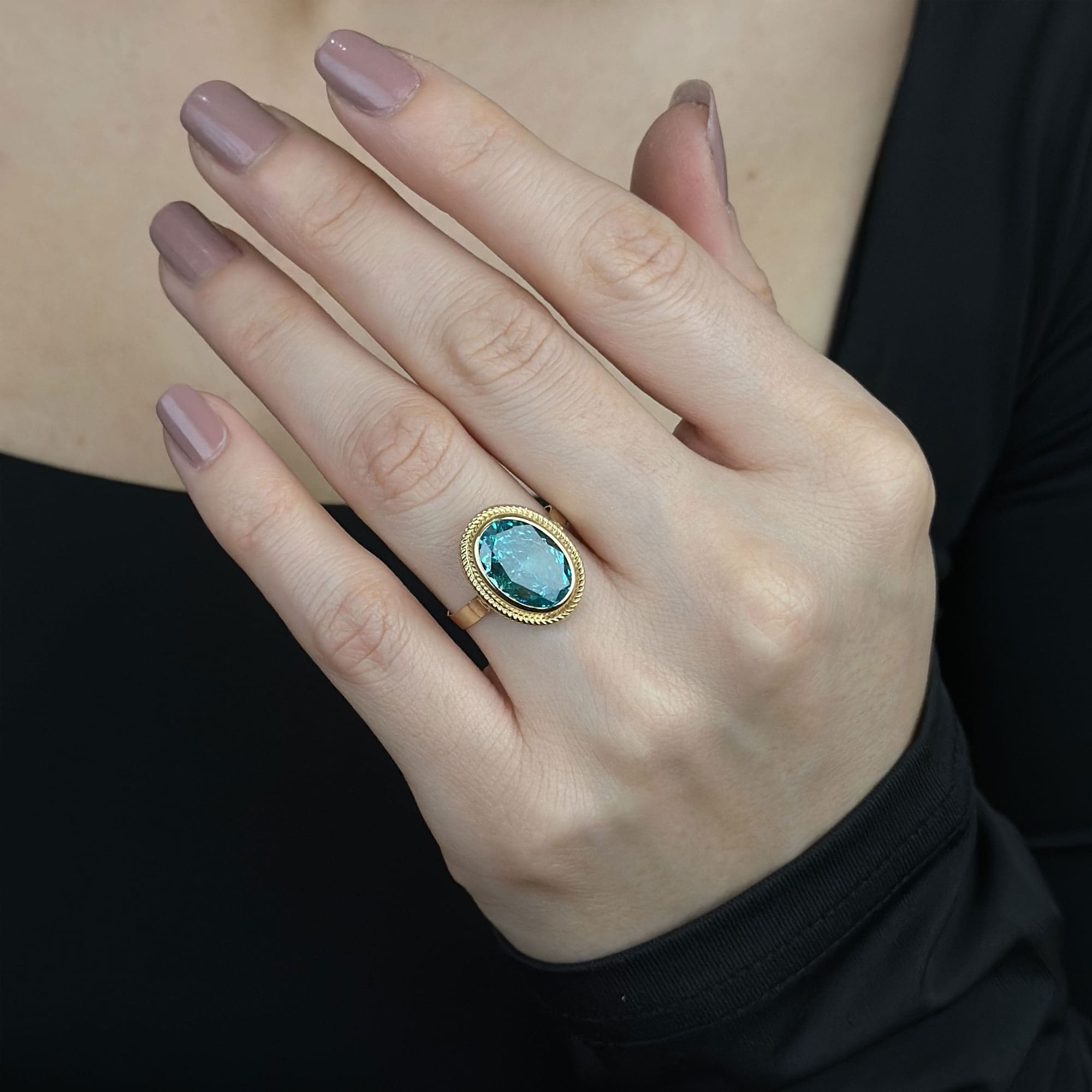 Mavi Taşlı 14 Ayar Yüzük, Akuamarin Oval Taşlı Altın Yüzük