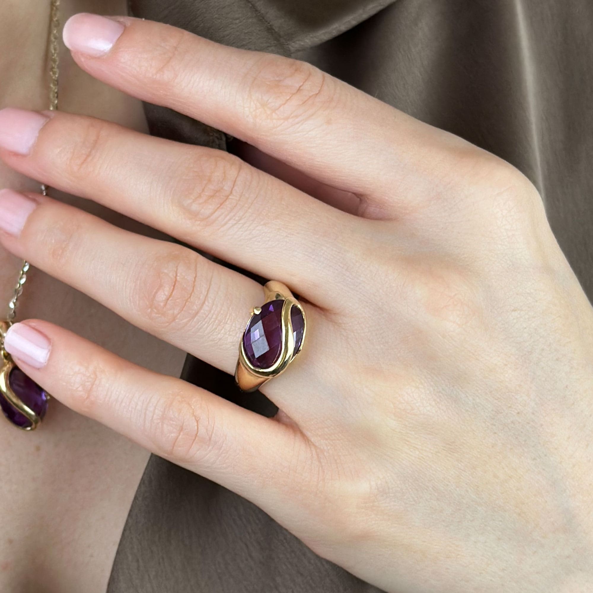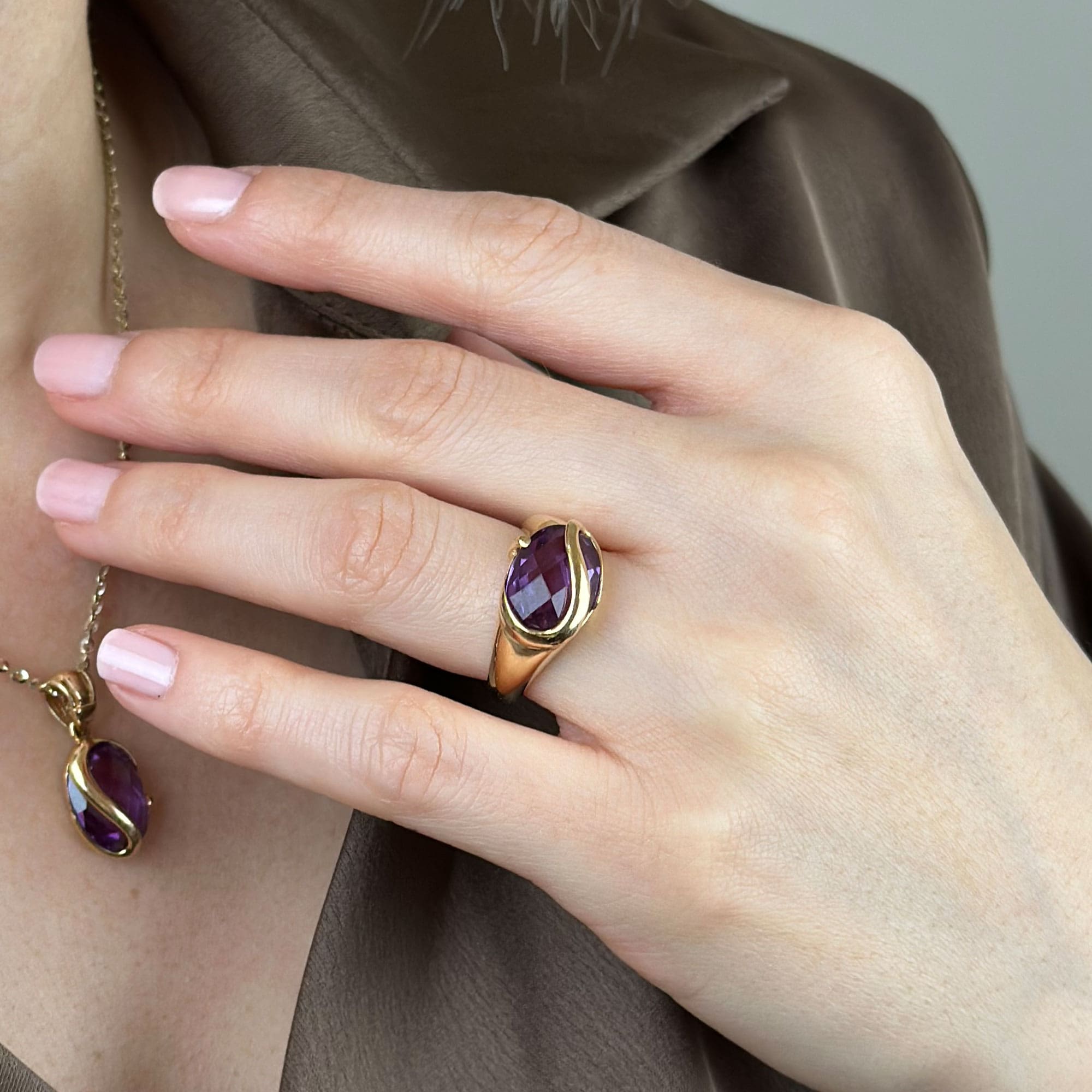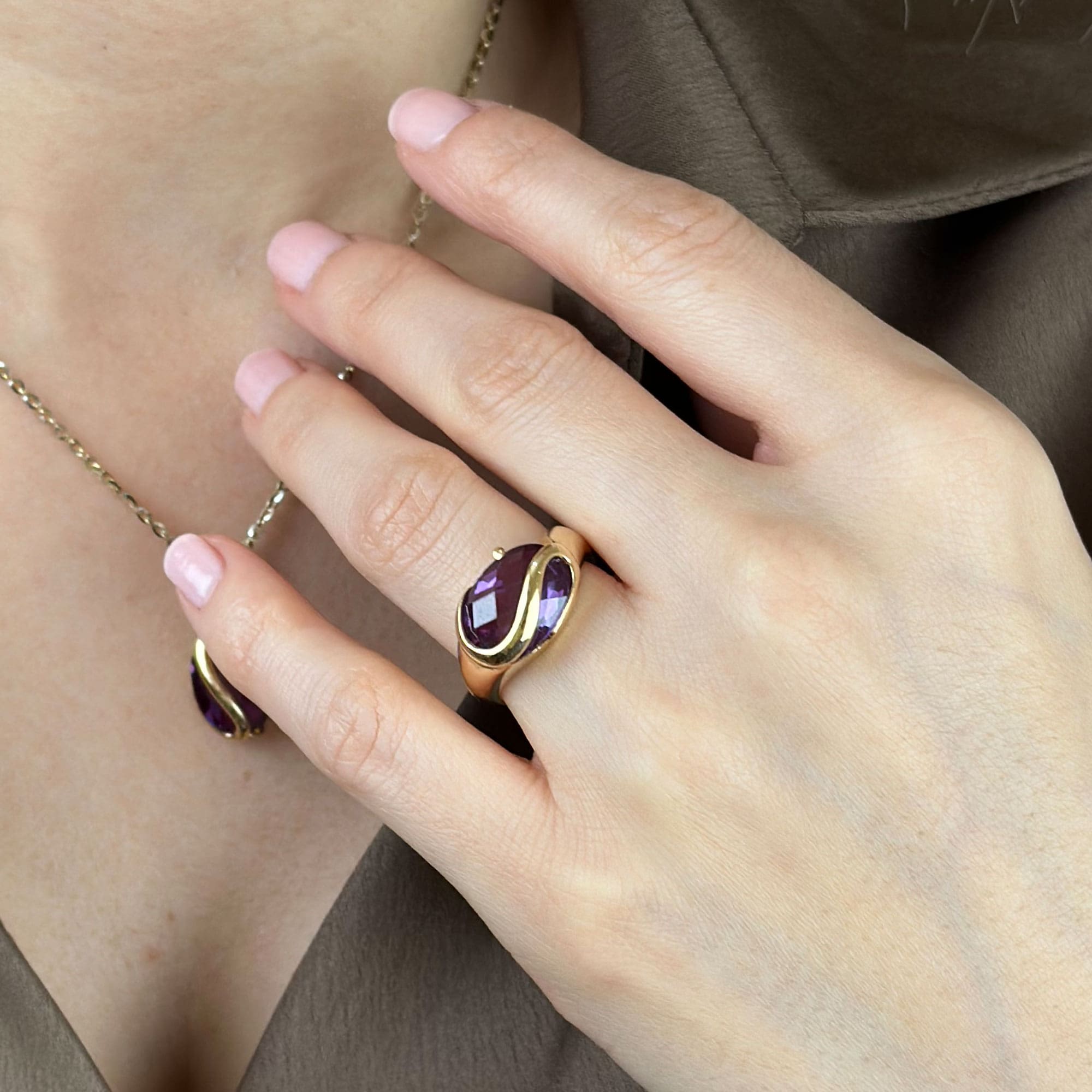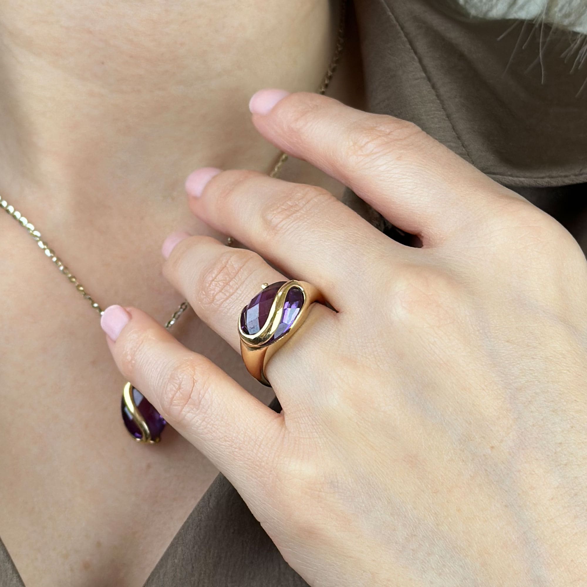 Kendiniz için zarif bir hediye ya da sevdikleriniz için anlamlı bir armağan arıyorsanız, mor taş detaylı 14 ayar altın yüzük şık ve kalıcı bir seçenektir. Hem trend hem de zamansız tasarımıyla her takı koleksiyonunda özel bir yer edinir.