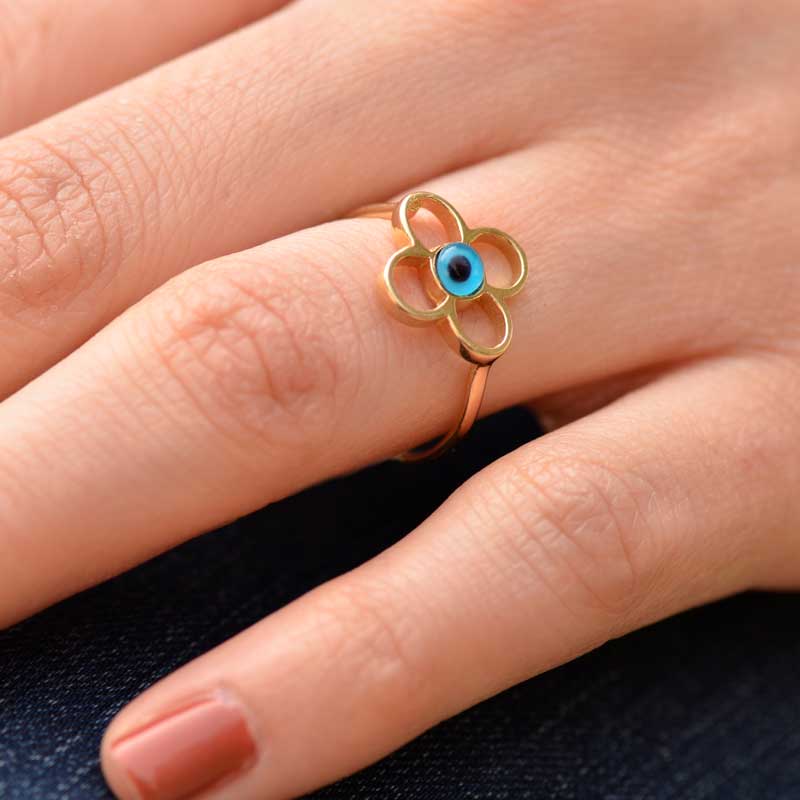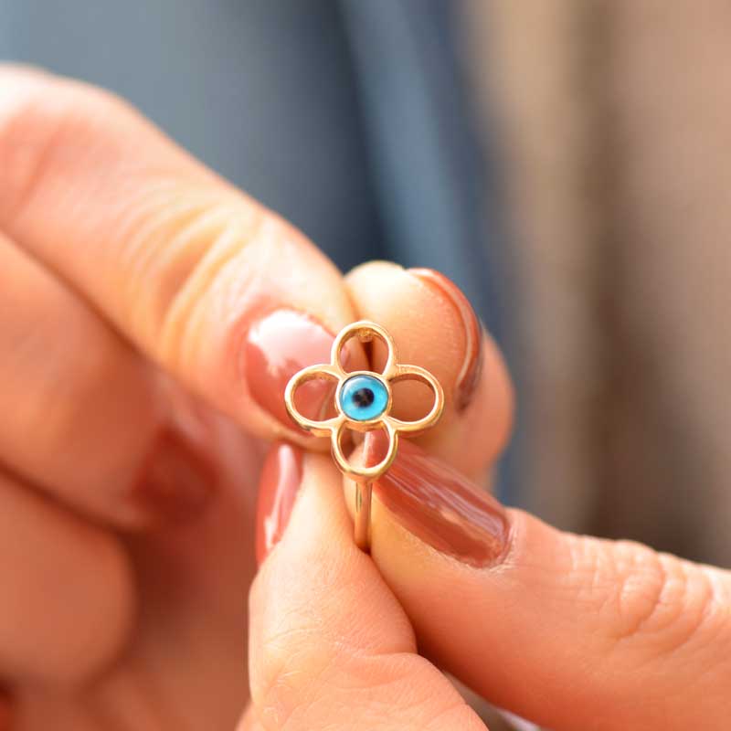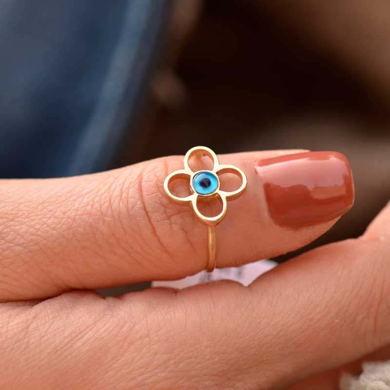 Nazar Boncuklu Çiçek Yüzük
