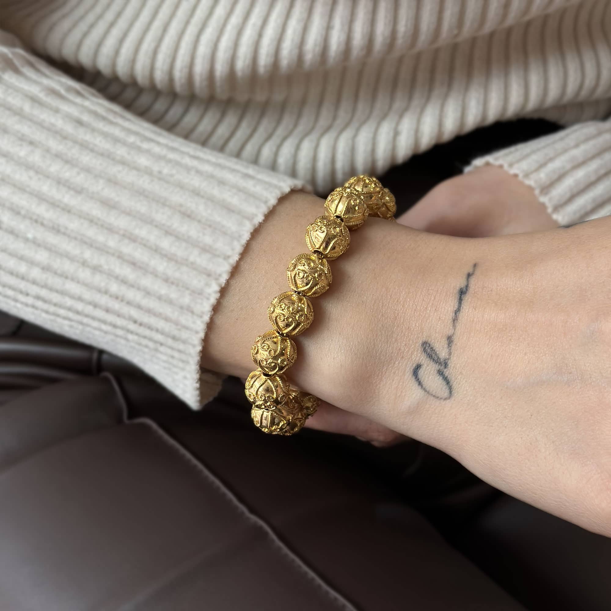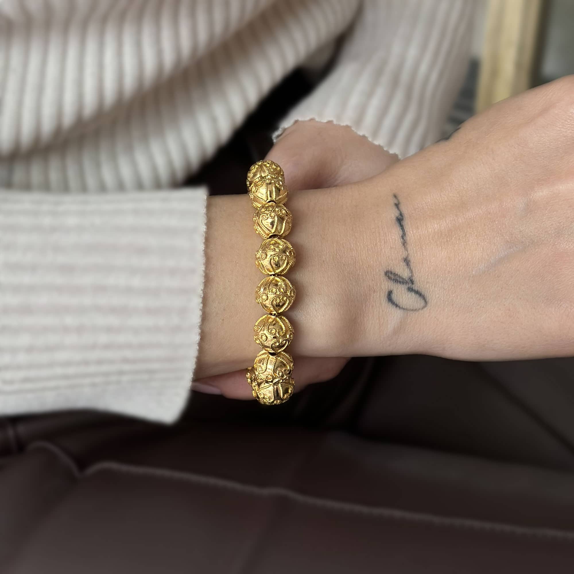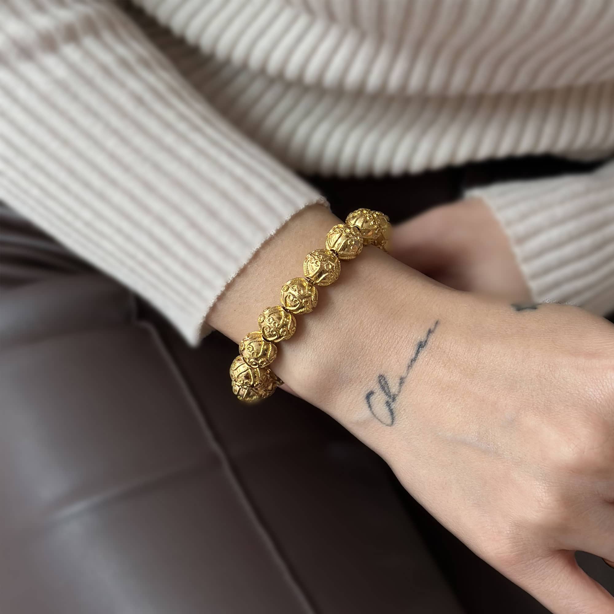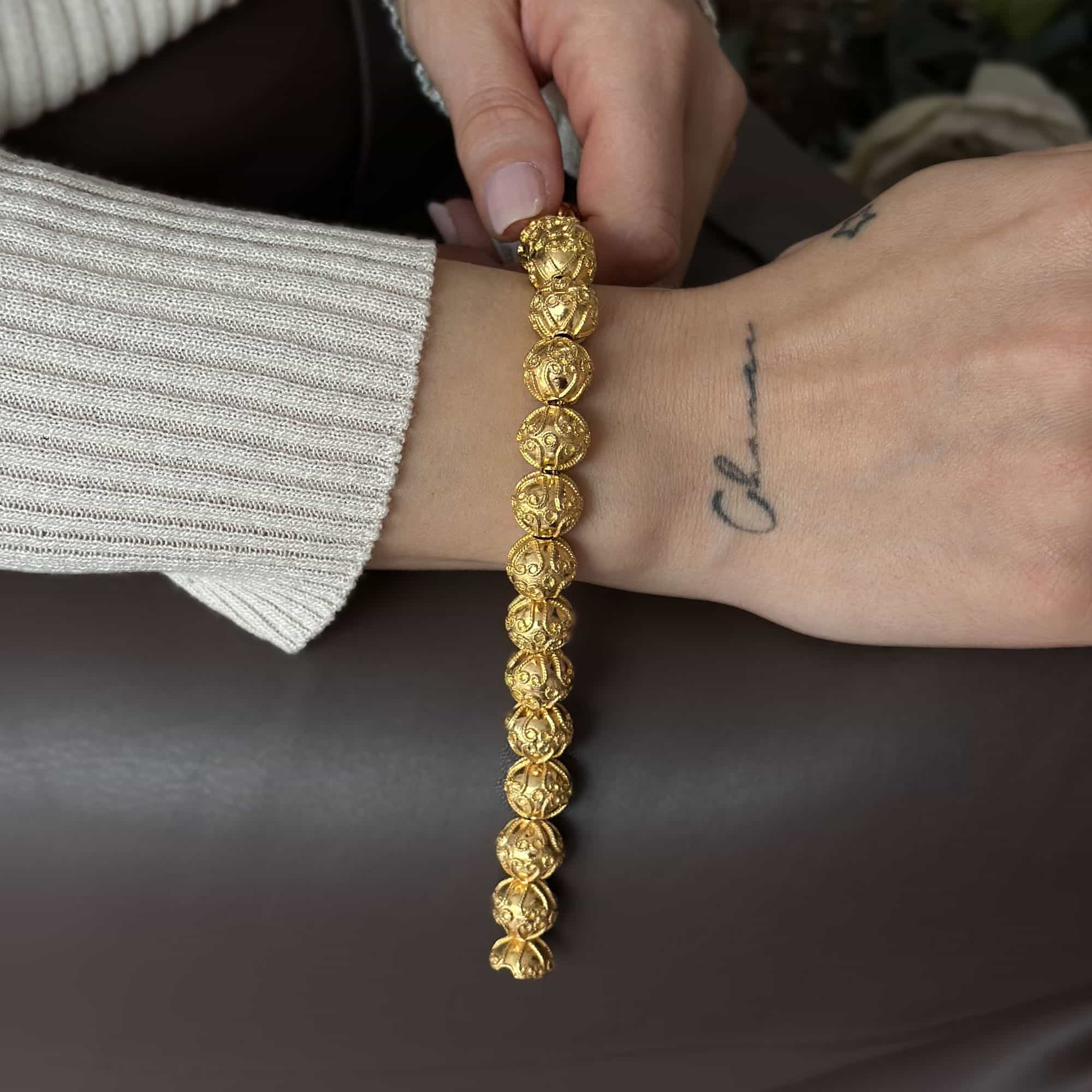 Özel Tasarım İşlemeli Mega Top 22 Ayar Altın Bileklik