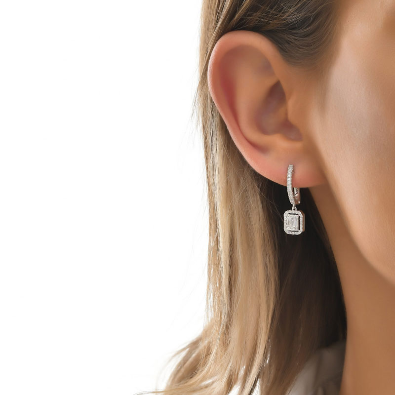 Pırlanta Baget Taşlı Sallantılı Küpe 100-110