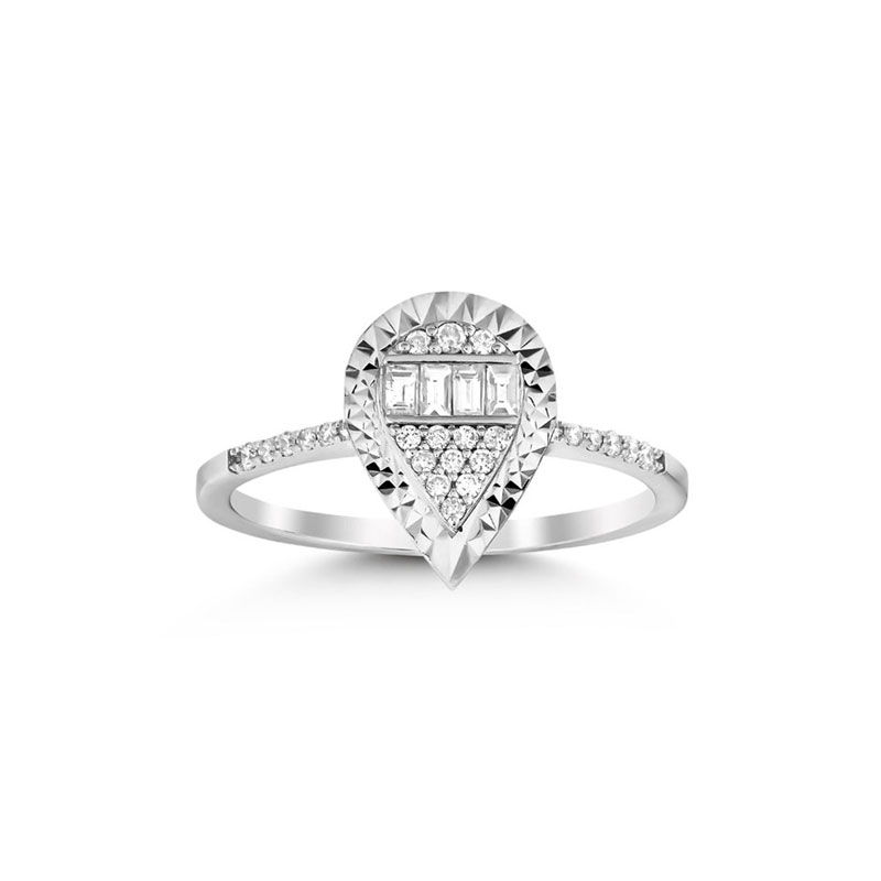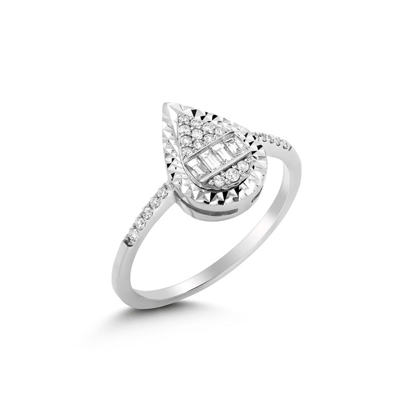 Pırlanta Baget Taşlı Damla Model Yüzük