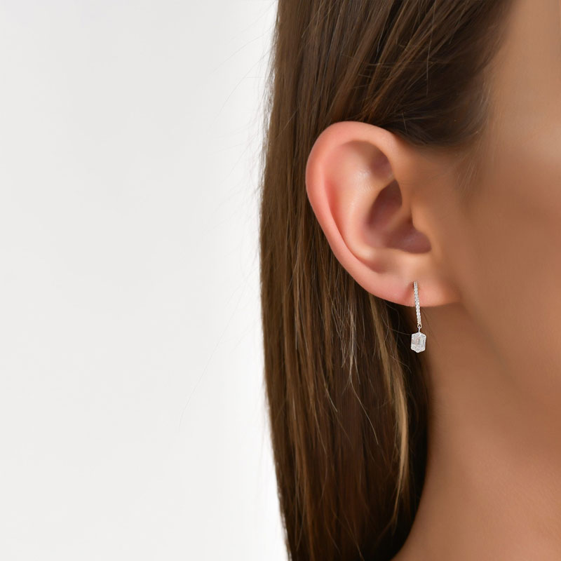 Pırlanta Baget Taşlı Sallantılı Küpe 100-110