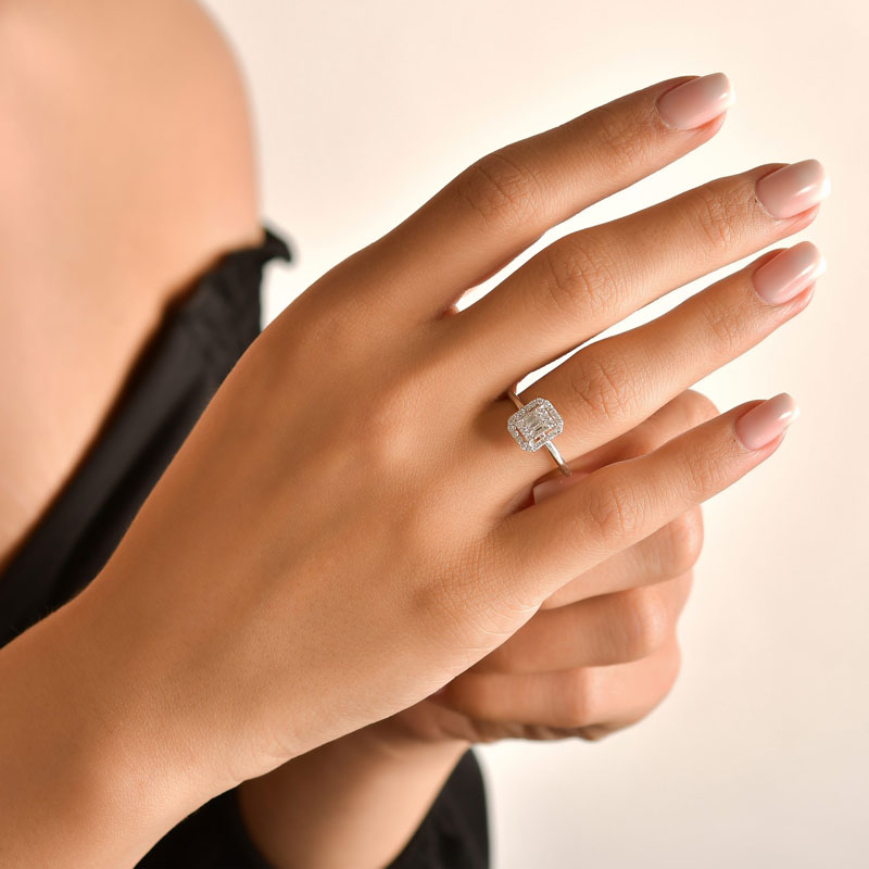 0.15ct Pırlanta Baget Taşlı Yüzük