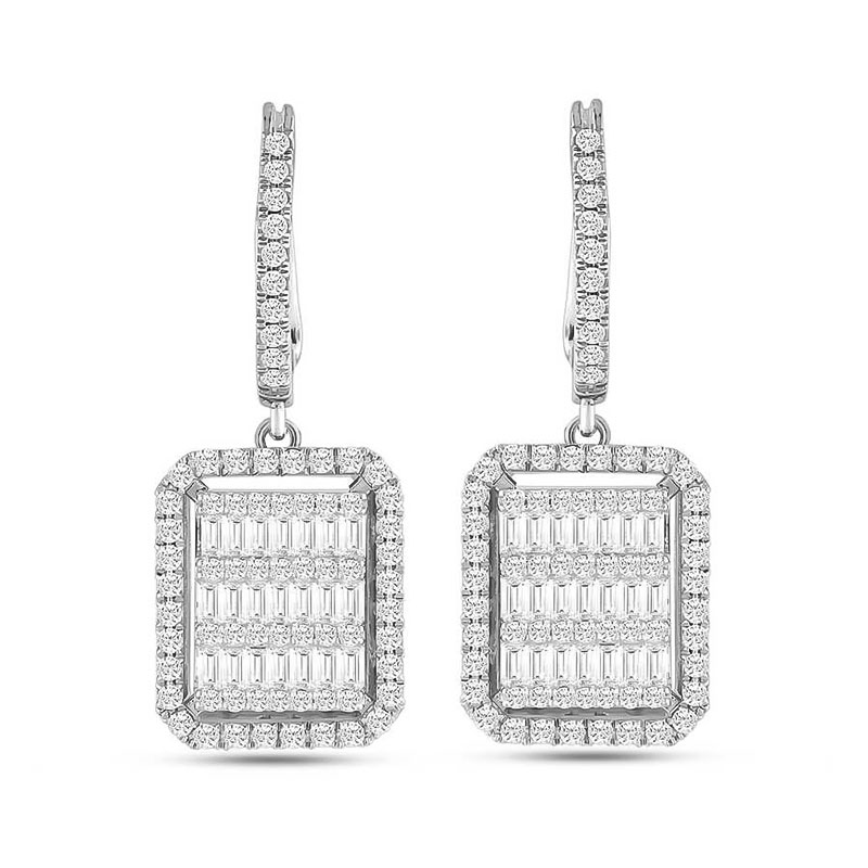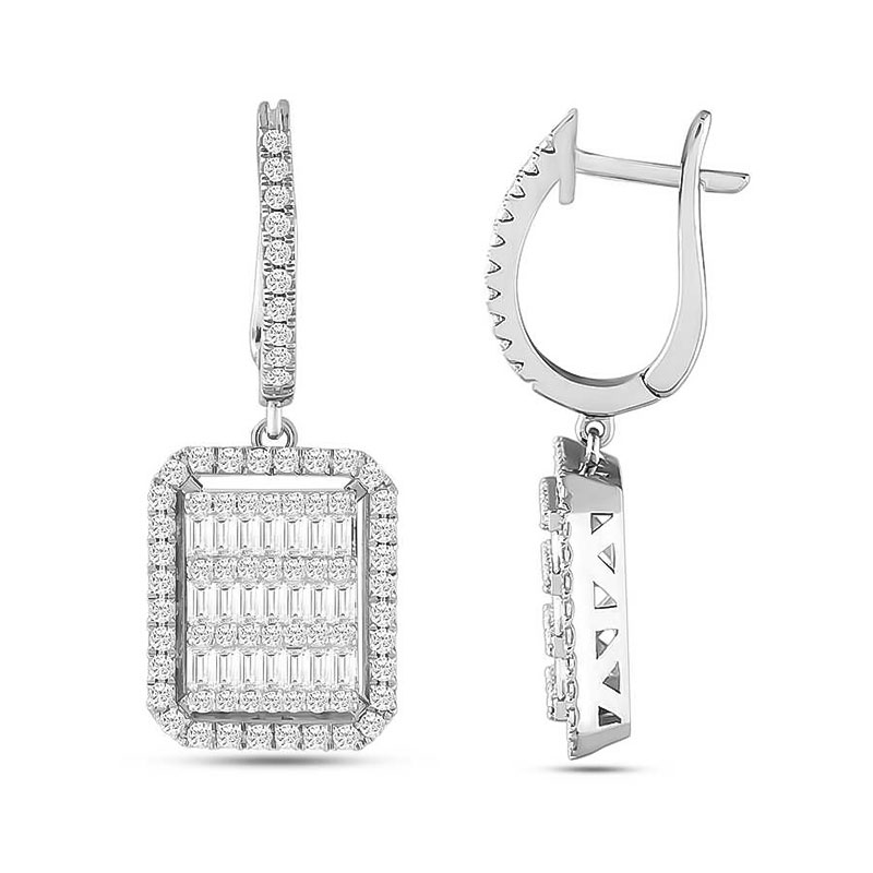 Beyaz Altın Pırlanta Baget Küpe