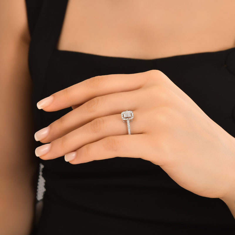 0.15ct Pırlanta Baget Taşlı Yüzük