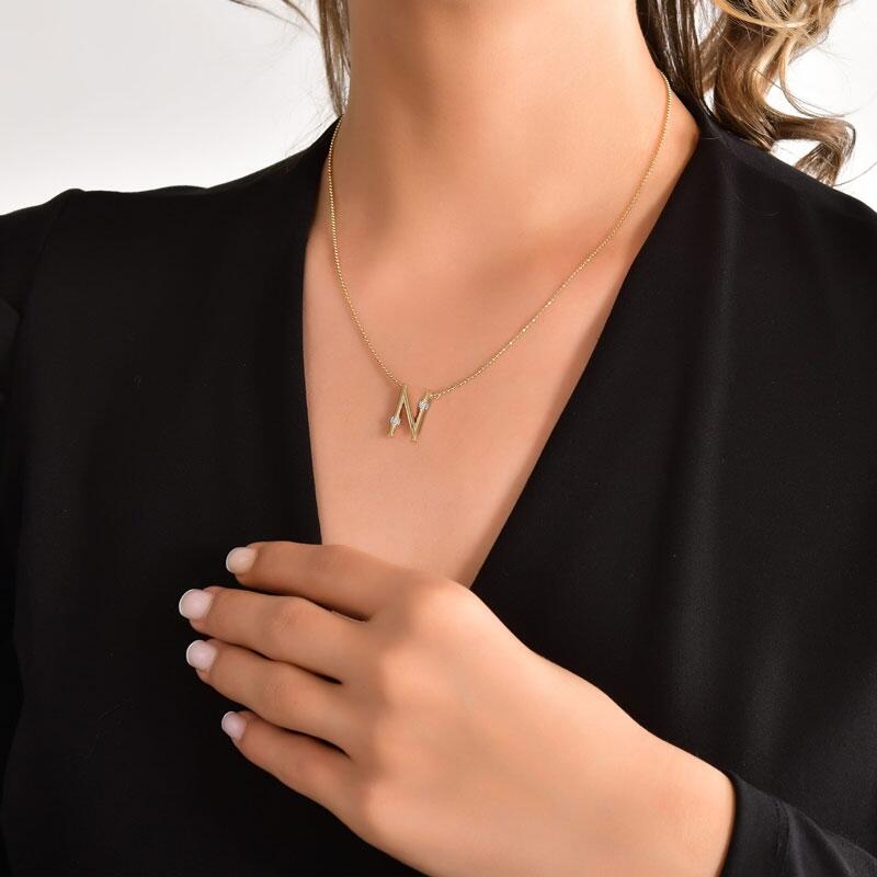 14 Ayar Altın Damla Pırlanta Kolye – Zarif Tasarım
