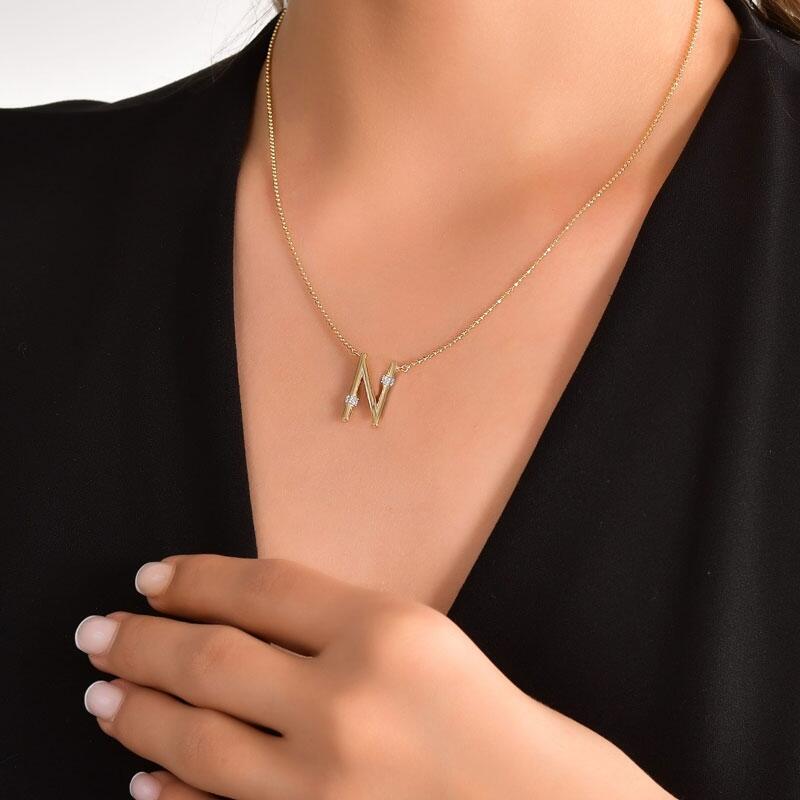 14K Kalp Su Yolu Detaylı Şık Pırlanta Kolye