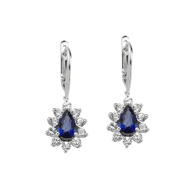 Pırlantalı Safir Taşlı Damla Küpe
