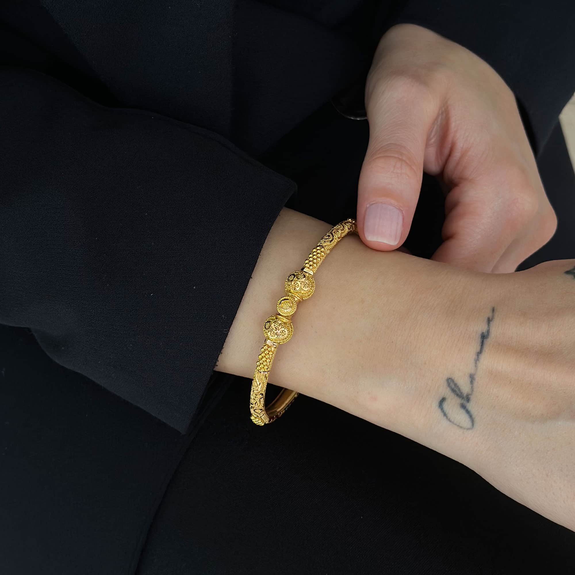 Renkli Hint Bileziği Altın Kelepçe, şık ve zarif dokusuyla bileğinize canlı bir ışıltı katar. Geleneksel Hint esintilerini modern altın kelepçe formuyla buluşturan tasarım, renkli detaylarıyla dikkat çeker. Hem günlük kombinlere hem özel davetlere uyum sağlayan bu özel parça, stilinizi sofistike bir dokunuşla tamamlamak için ideal bir seçenektir.