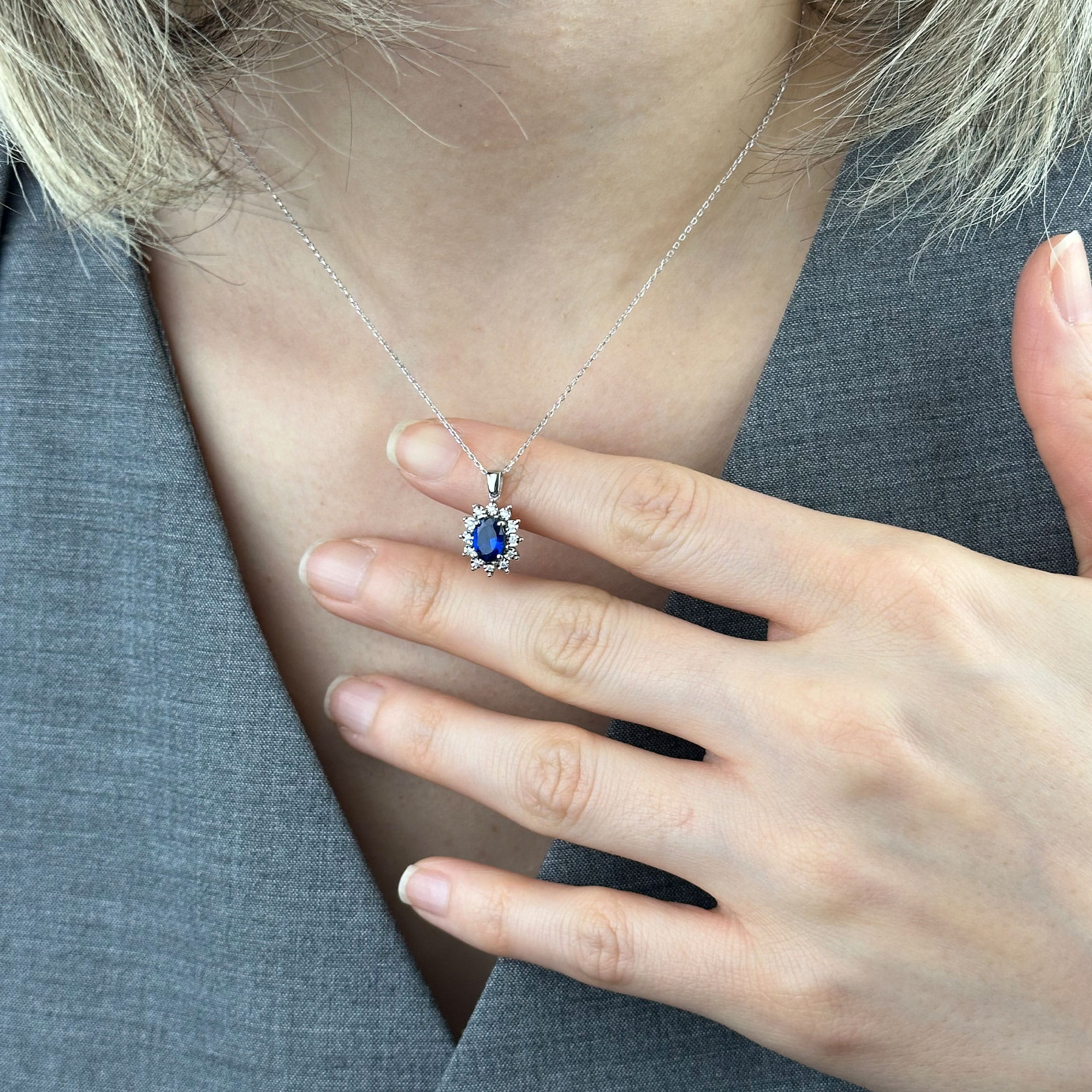Zarif detayları ve güçlü sembolizmiyle öne çıkan bu safir taşlı pırlanta kolye, Sevgililer Günü için anlamlı ve şık bir hediye alternatifi sunar. Beyaz altın zemin üzerine yerleştirilen pırlanta ve safir taş uyumu, tasarıma hem modern hem de zamansız bir karakter kazandırır.