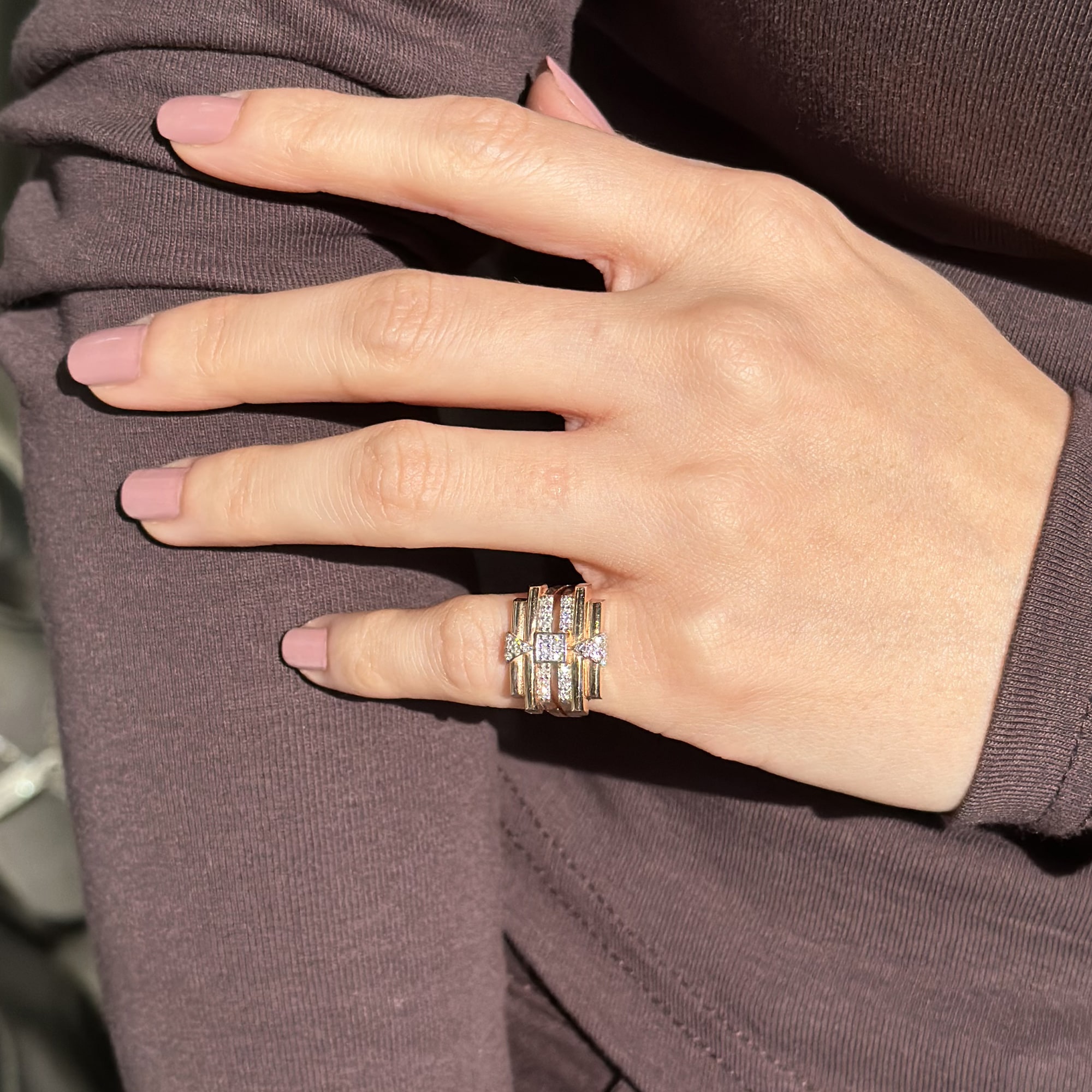 Star’ın pırlanta tasarım yüzüğü, rose altının sıcak ışıltısını zarif bir şekilde taşıyor. Çiçek formundaki detaylar, pırlantanın parlaklığıyla birleşerek elegan bir hava oluşturuyor. Hem günlük şıklığa hem özel davetlere uyum sağlayan bu yüzük, modern tasarımıyla koleksiyonunuzda parlayan bir imza parçası oluyor. Romantic bir dokunuş arayanlar için ideal.