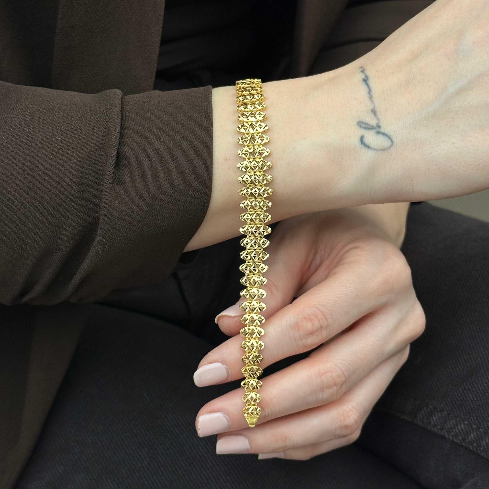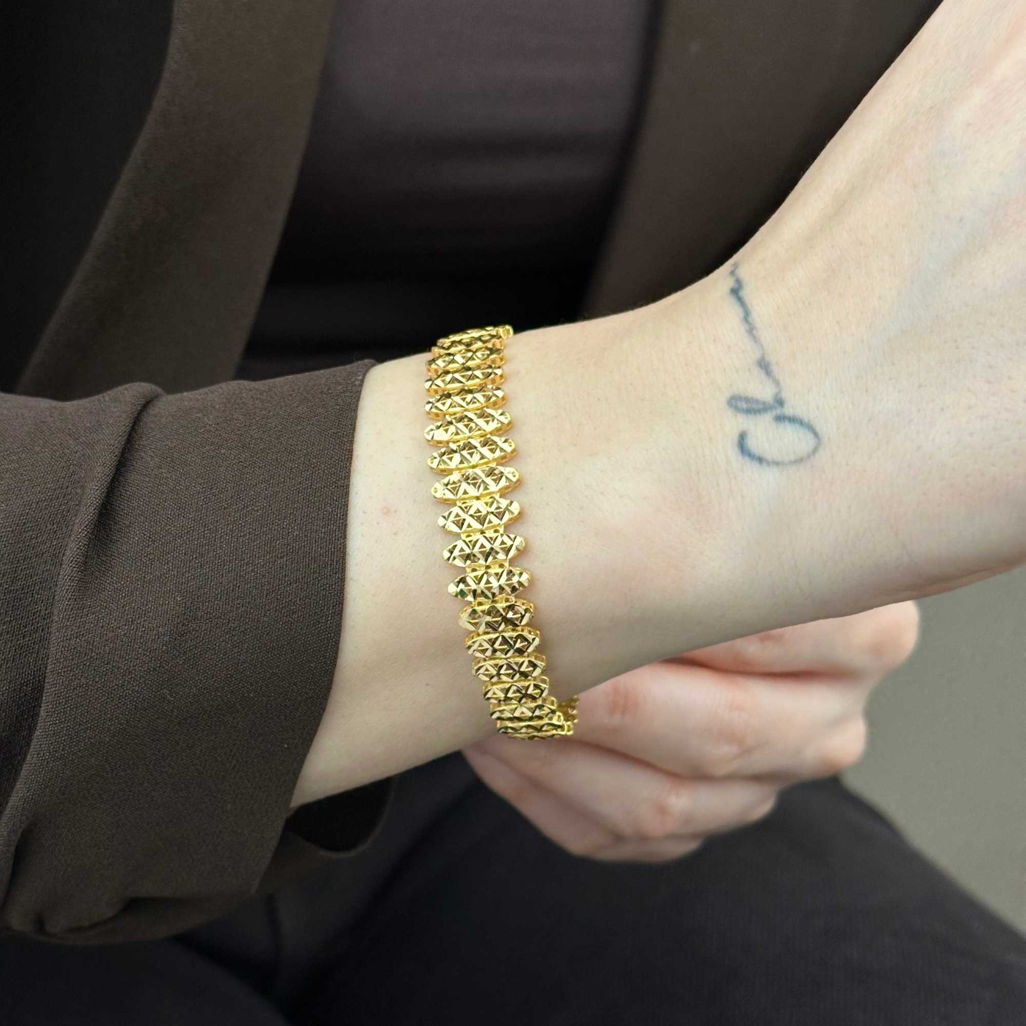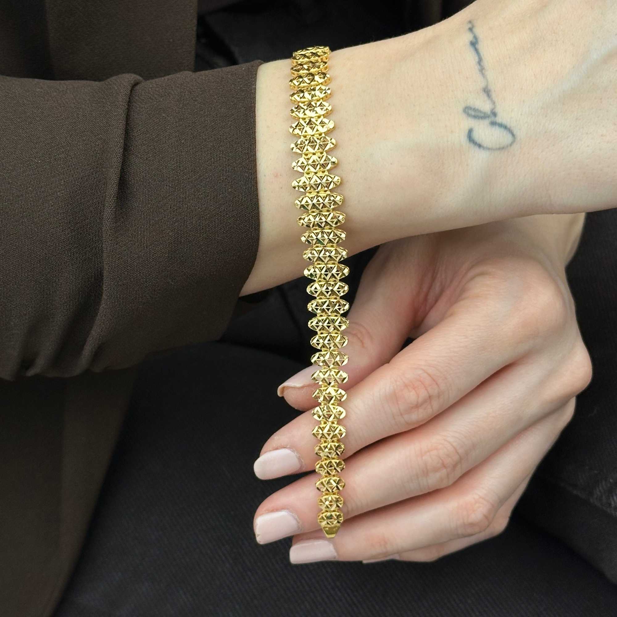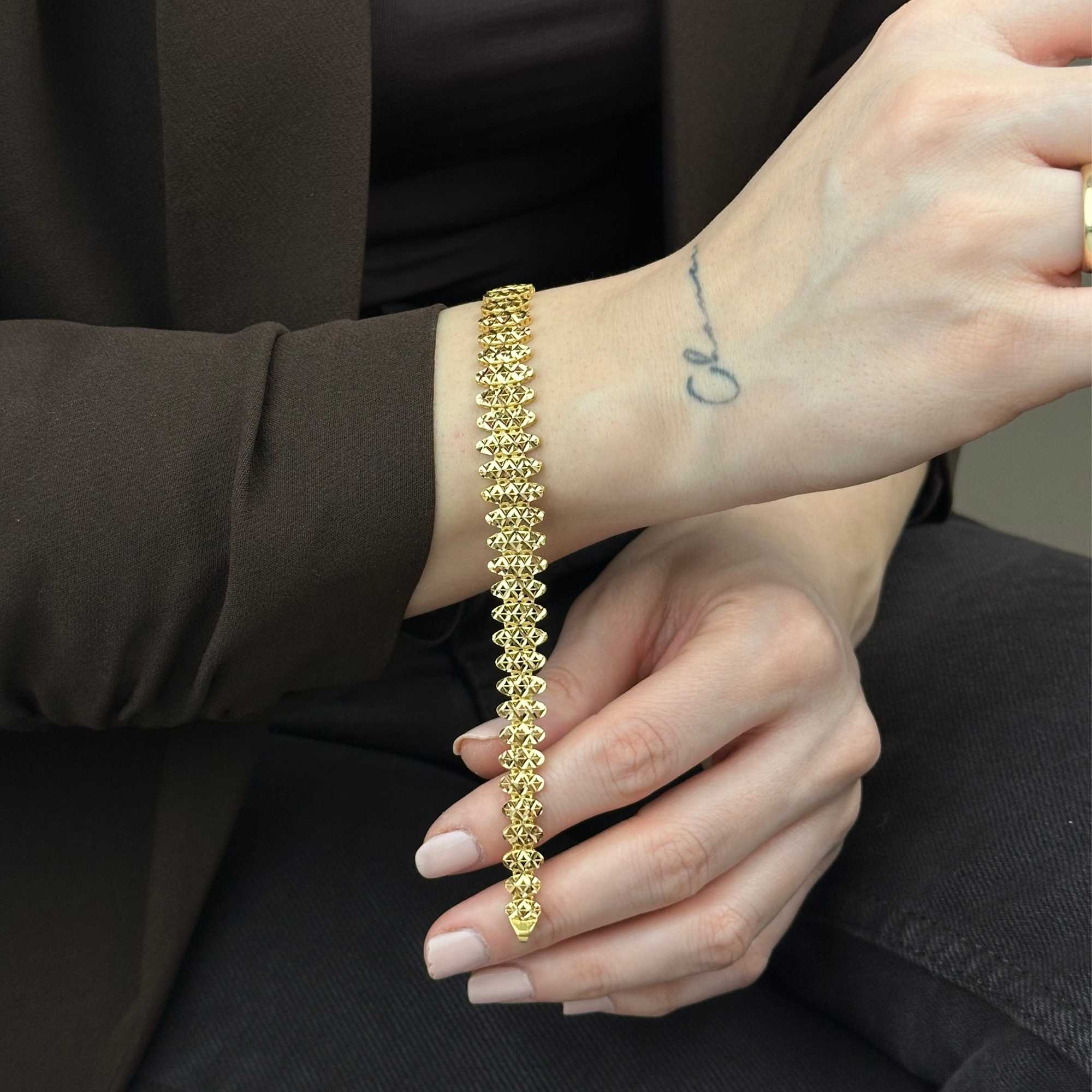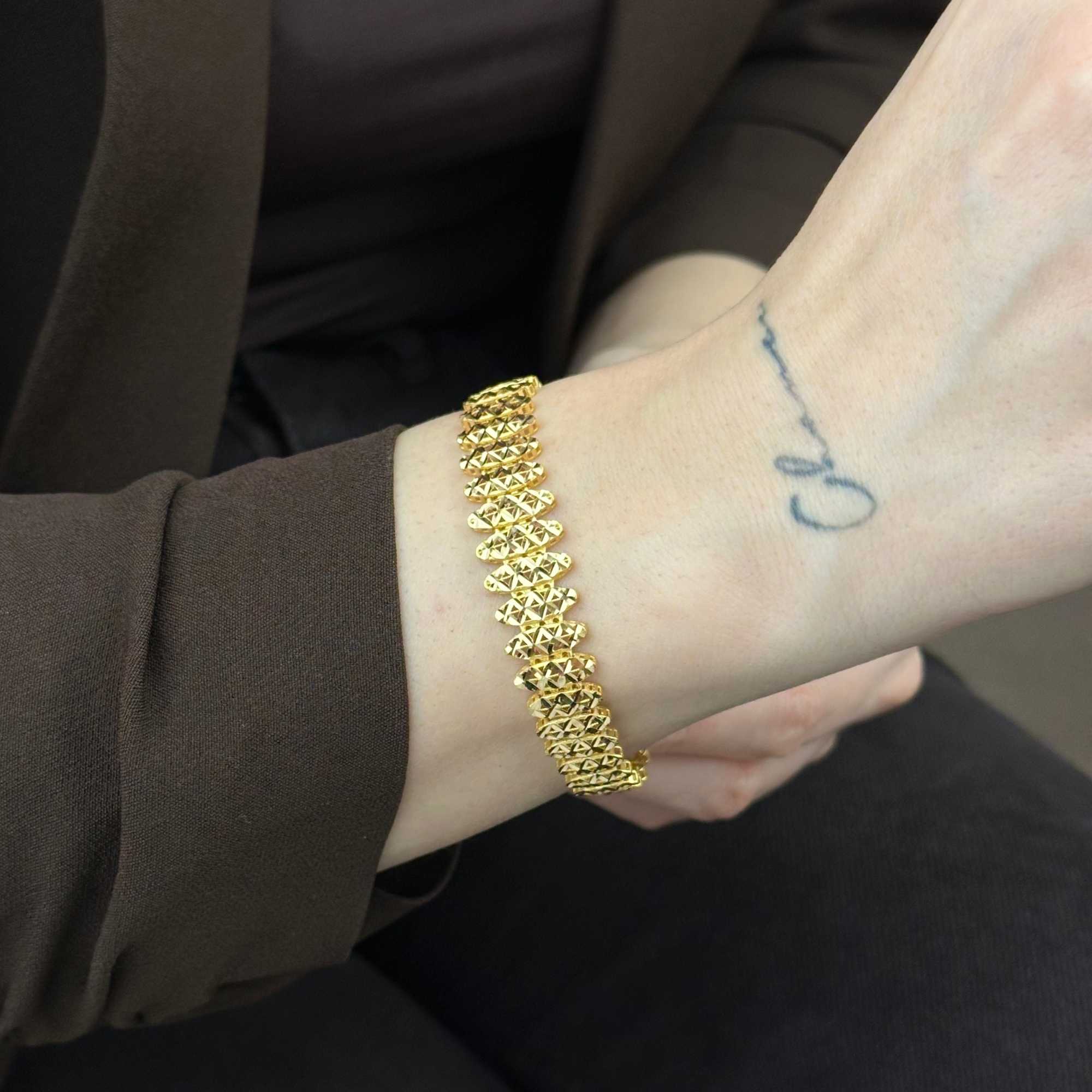 22 ayar altından üretilmiş süzme bileklik, kalemli zarif tasarımıyla hem günlük şıklığı hem de özel günleri tamamlar. Modern ve minimal çizgisiyle dikkat çeker; Sevgililer Günü, yıldönümü ve hediyelik için değerli bir tercihtir. Sertifikalı ürün garantisi, güvenli ödeme, ücretsiz & sigortalı kargo ve kredi kartına 3 taksit imkanı sunulmaktadır. Güncel fiyat bilgisi ürün sayfasında mevcuttur.