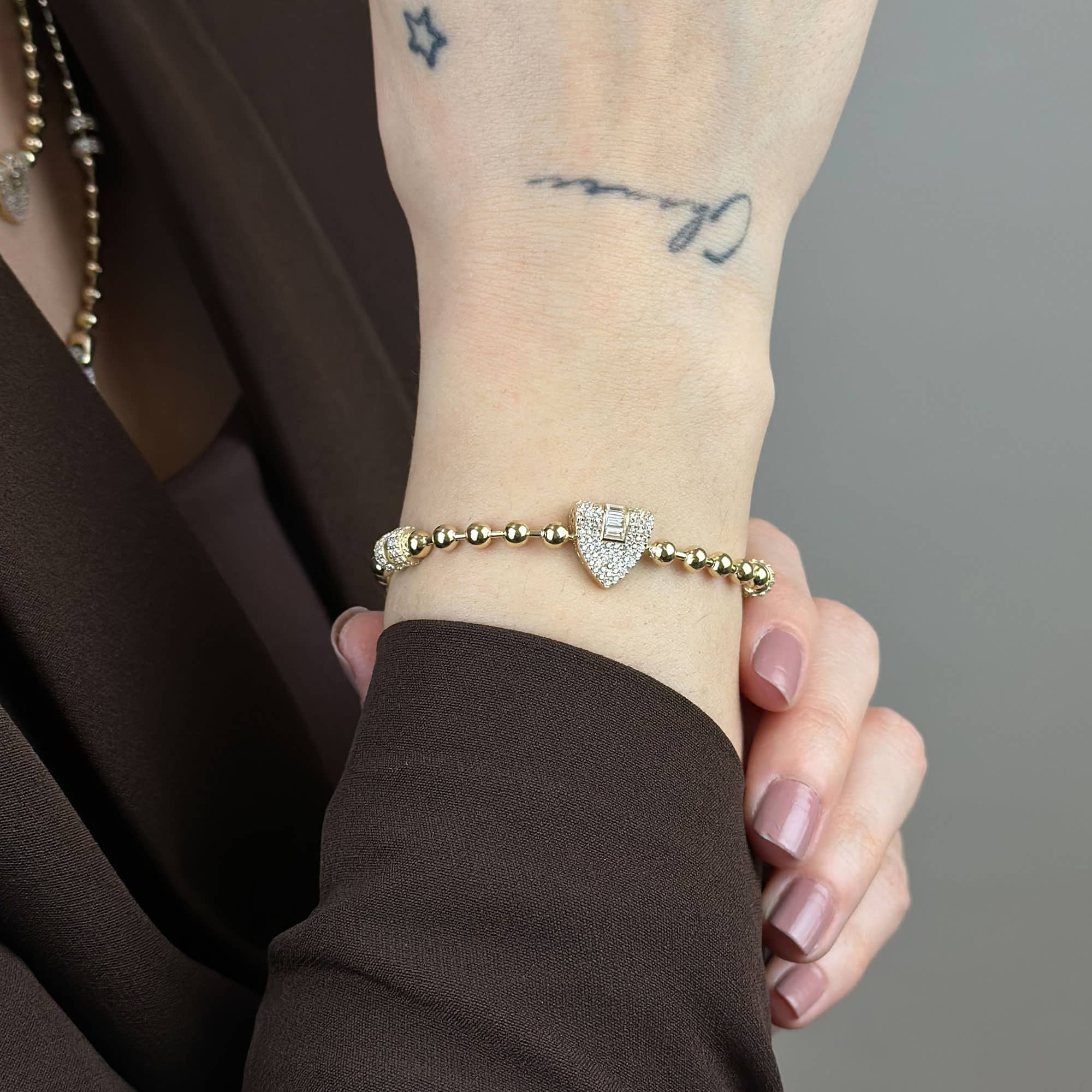14 ayar altından üretilmiş baget taşlı bileklik modeli; modern, şık ve zarif tasarımıyla öne çıkar. Zirkon taş kullanımıyla ışıltı kazanan bu bileklik, sarı altın rengiyle günlük kullanım ve hediye seçenekleri için idealdir. EMA x Çağla ilhamlı tasarım çizgisiyle fark yaratan ürün, sertifikalı altın yapısı, güvenli ödeme altyapısı ve ücretsiz kargo avantajıyla sunulmaktadır. Güncel fiyat bilgisi ürün sayfasında yer almaktadır.