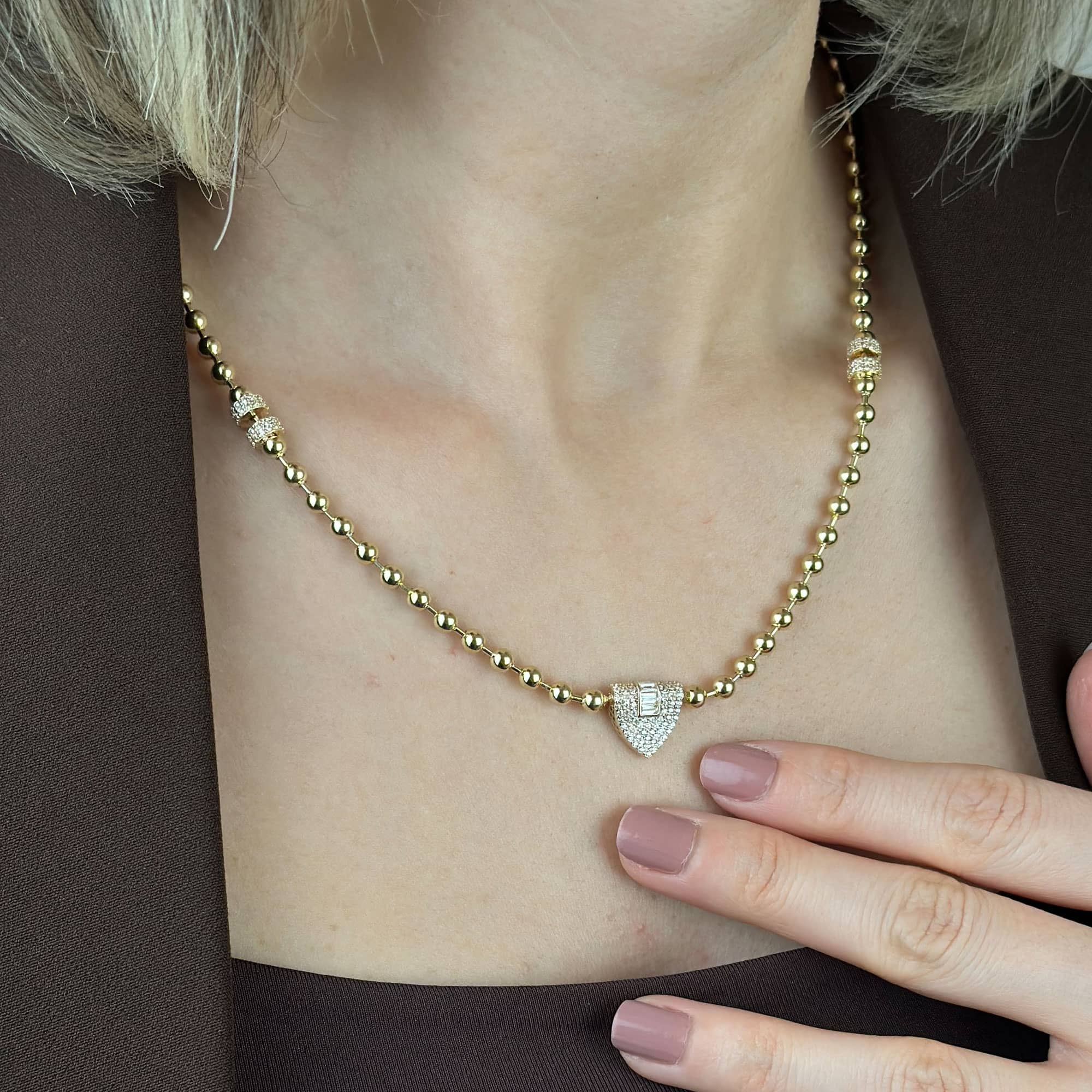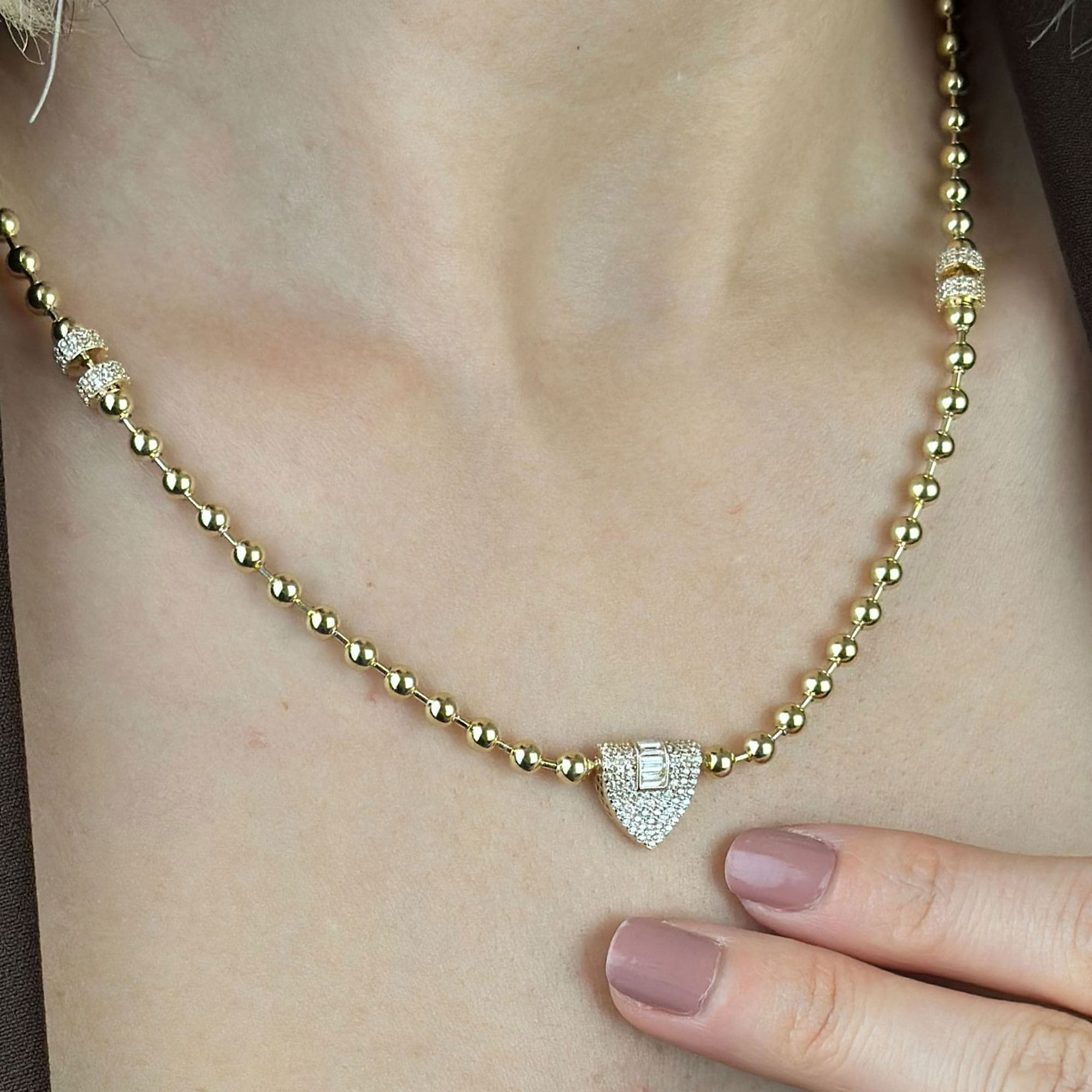 14 ayar altından üretilmiş taşlı kolye modeli; baget, silindir ve özel detaylı tasarımıyla modern, şık ve zarif bir görünüm sunar. Zirkon taş kullanımıyla ışıltı kazanan bu kolye, sarı altın rengiyle günlük kullanım ve hediye seçenekleri için idealdir. Sertifikalı altın yapısı, güvenli ödeme altyapısı ve ücretsiz kargo avantajıyla sunulmaktadır. Güncel fiyat bilgisi ürün sayfasında yer almaktadır.
