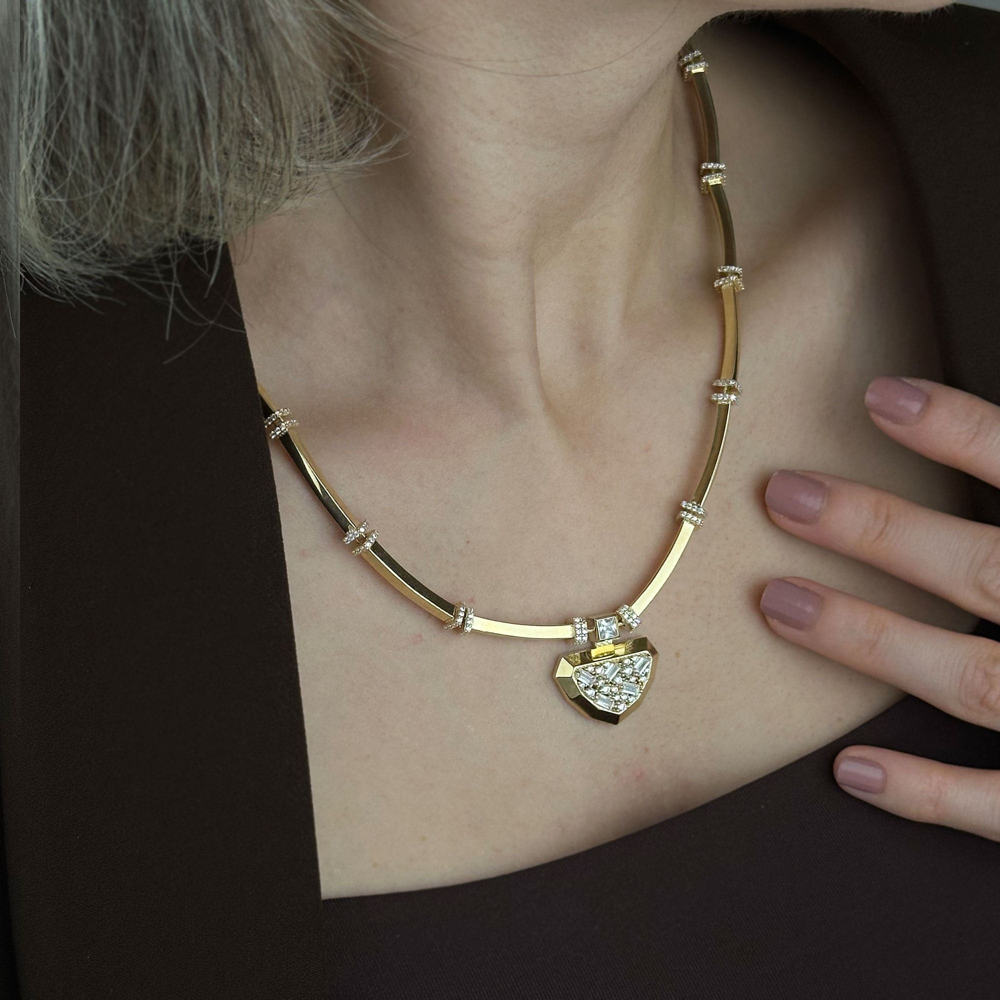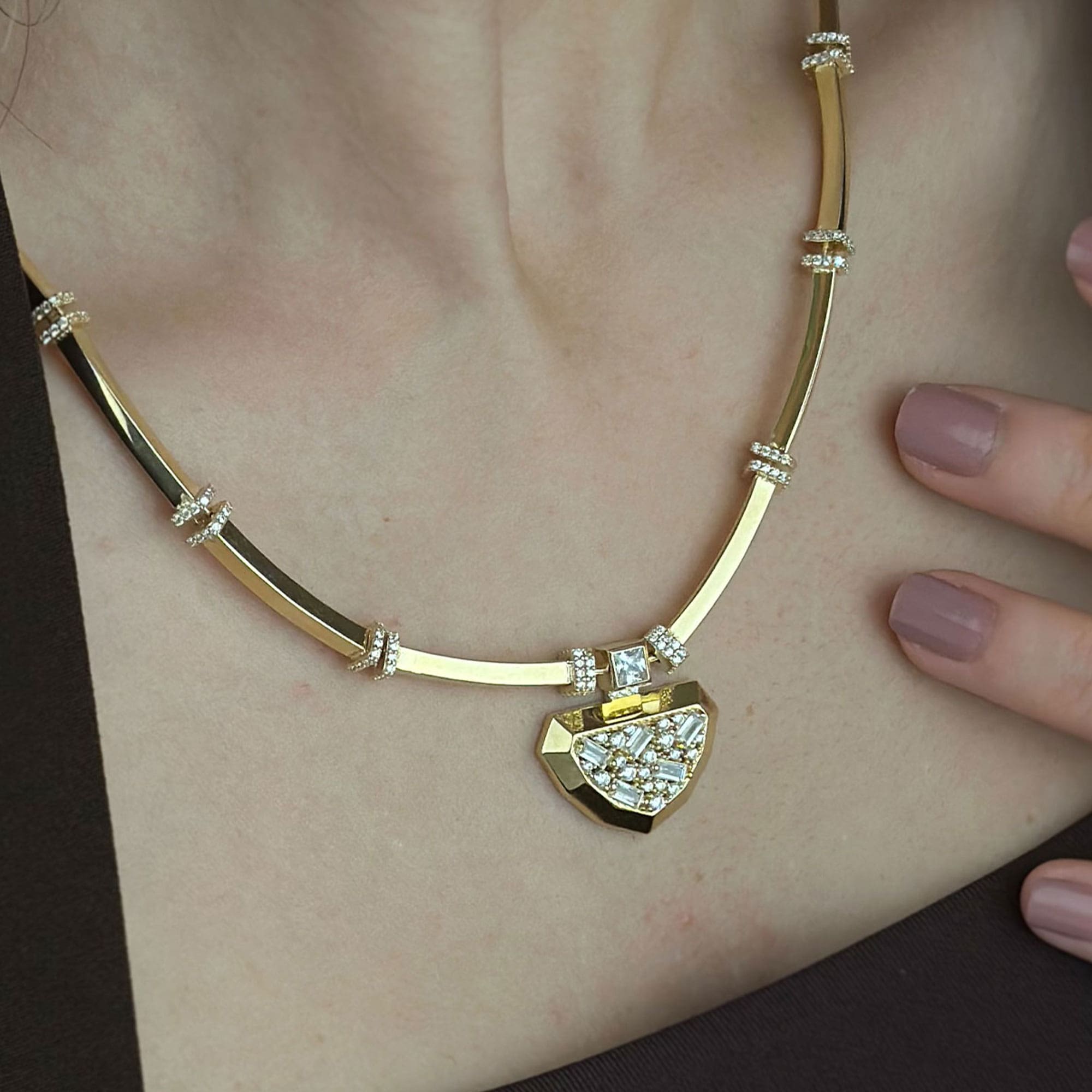 14 ayar altından üretilmiş taşlı kolye modeli; baget, silindir ve özel detaylı tasarımıyla modern, şık ve zarif bir görünüm sunar. 27.48 gram ağırlığındaki bu model, dengeli ve kaliteli bir duruş sağlar. Zirkon taş kullanımıyla ışıltı kazanan kolye, sarı altın rengiyle günlük kullanım ve hediye seçenekleri için idealdir. Sertifikalı altın yapısı, güvenli ödeme altyapısı ve ücretsiz kargo avantajıyla sunulmaktadır. Güncel fiyat bilgisi ürün sayfasında yer almaktadır.