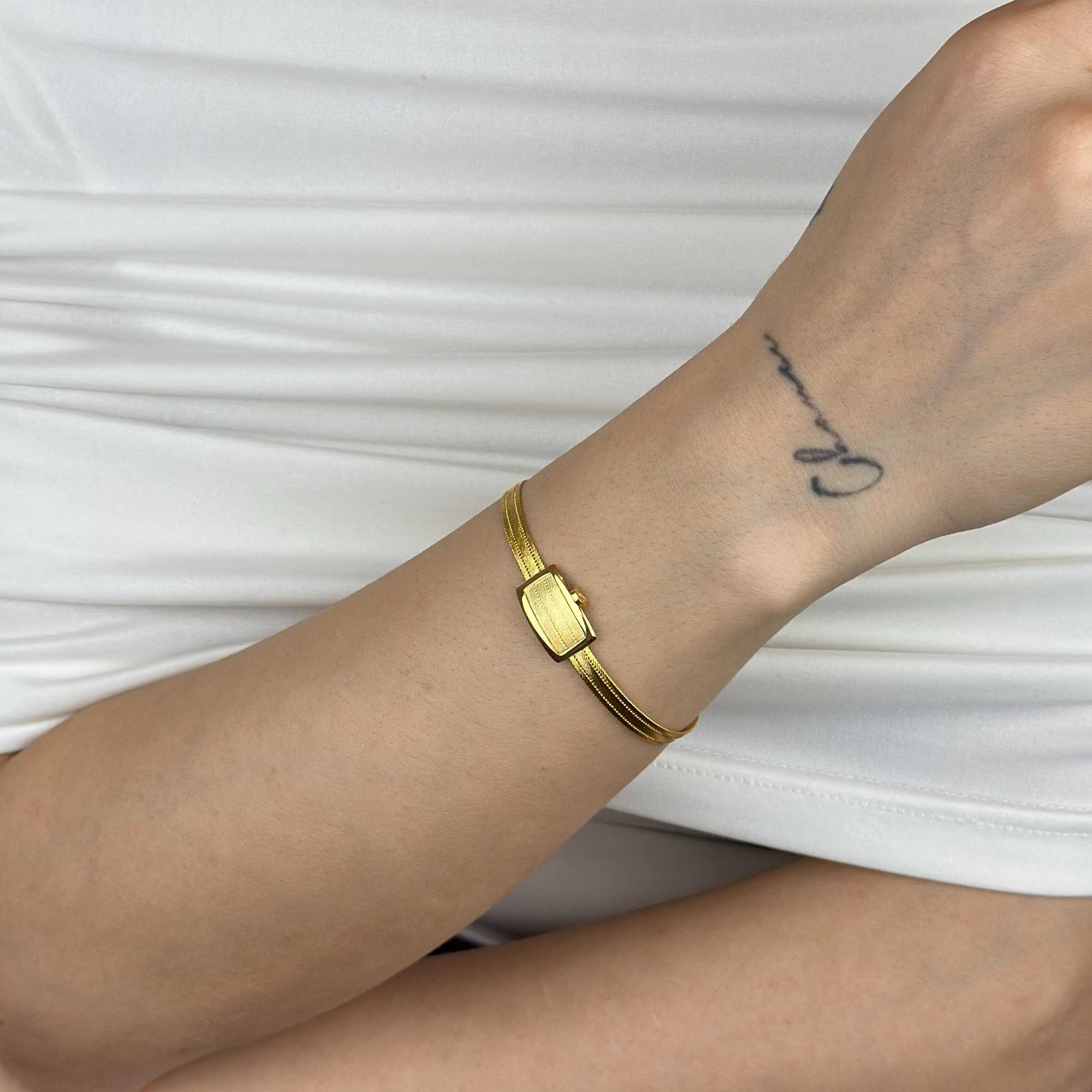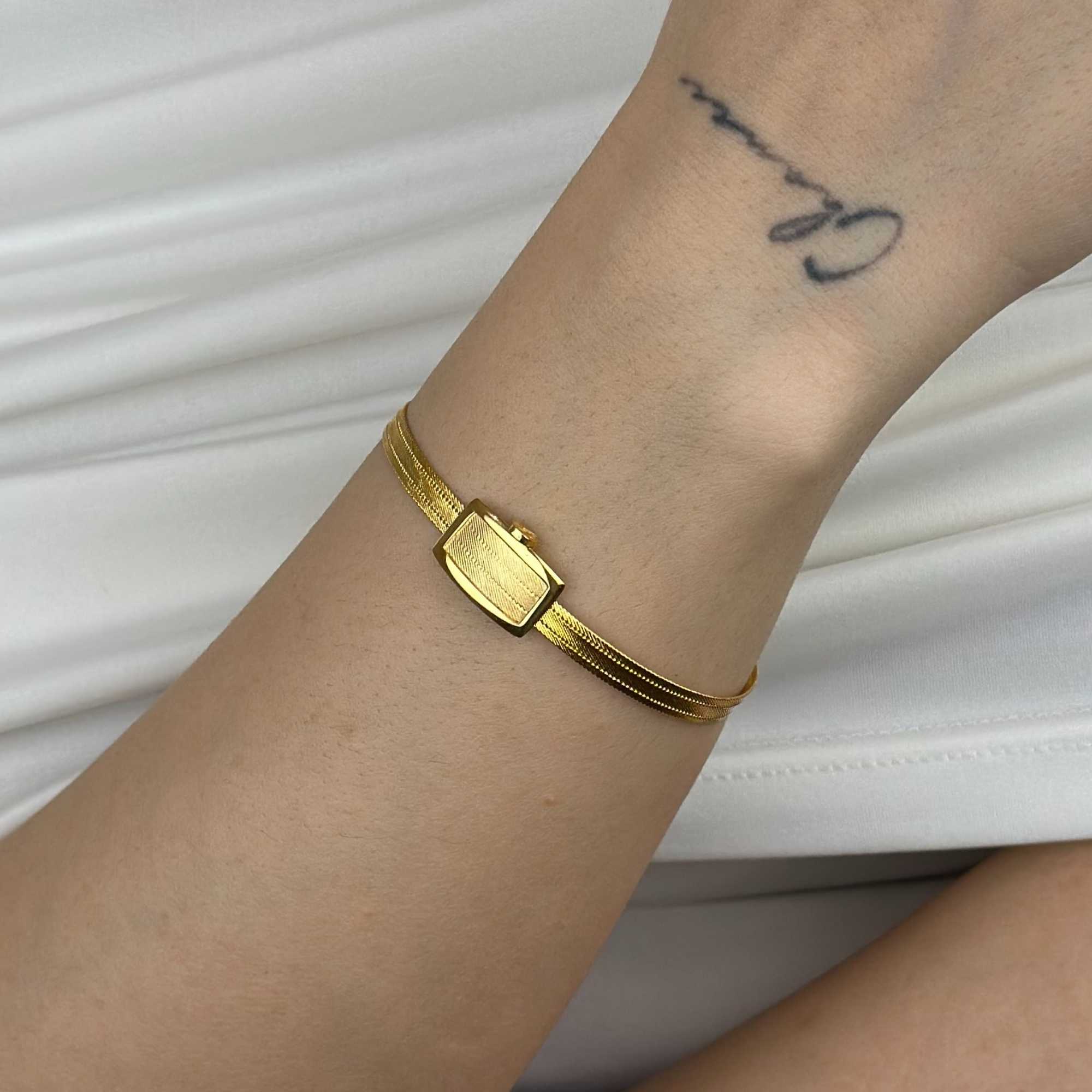 Yaklaşık 8,07 gram ağırlığındaki bileklik, bilekte konforlu bir kullanım sunarken sarı altının sıcak tonu ile dikkat çekici bir estetik sağlar. Üç sıra ince hasır örgüsü, bilekliğe hem klasik hem de modern bir karakter kazandırır.