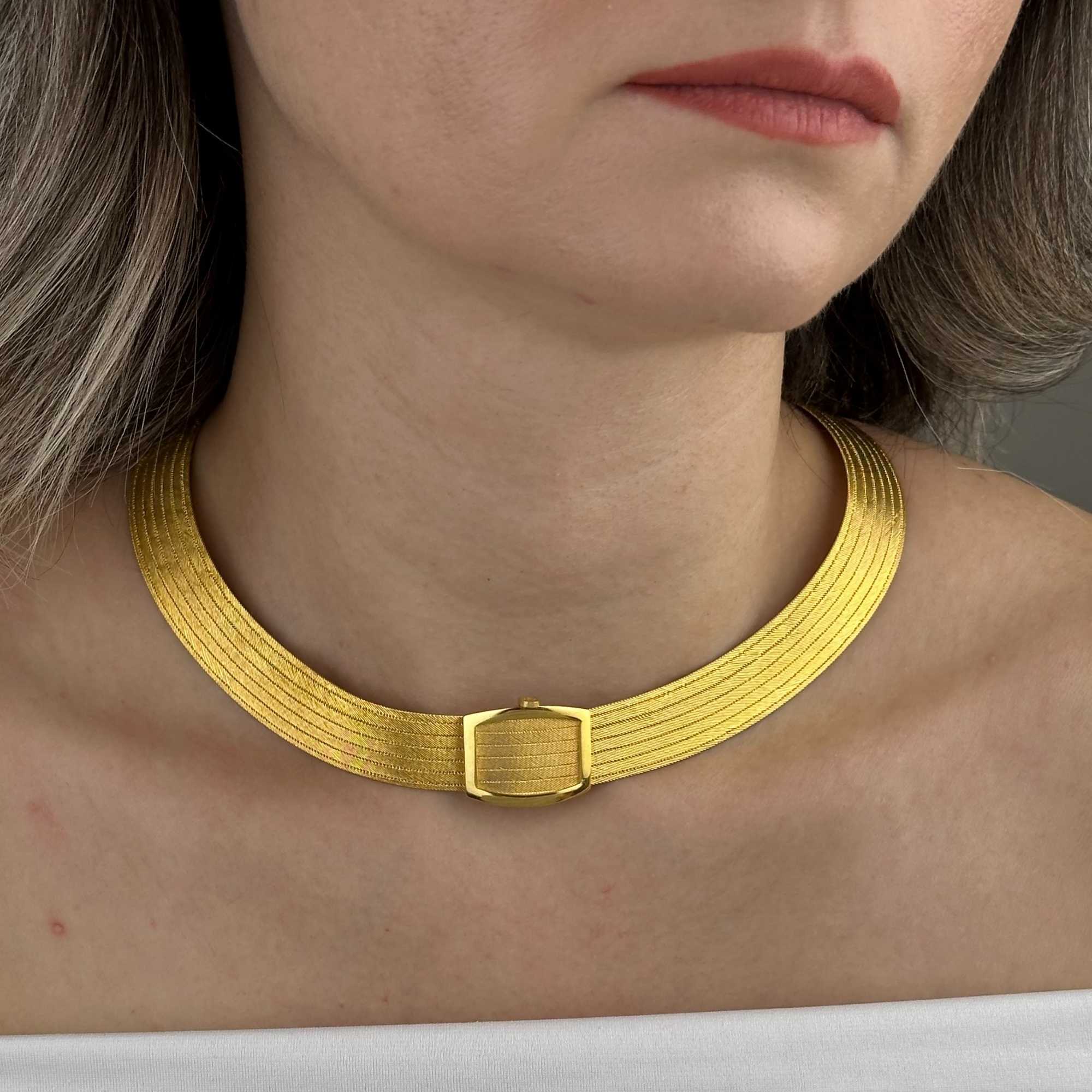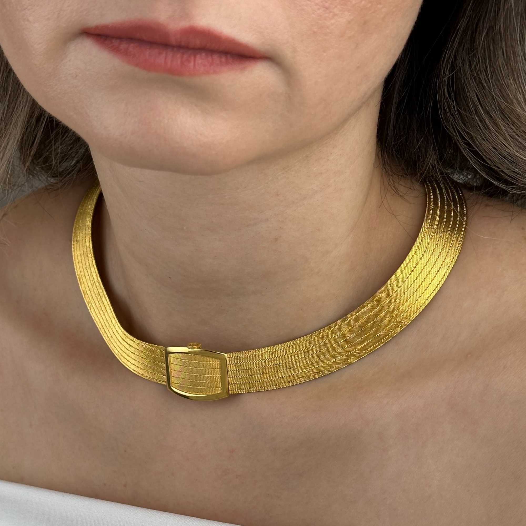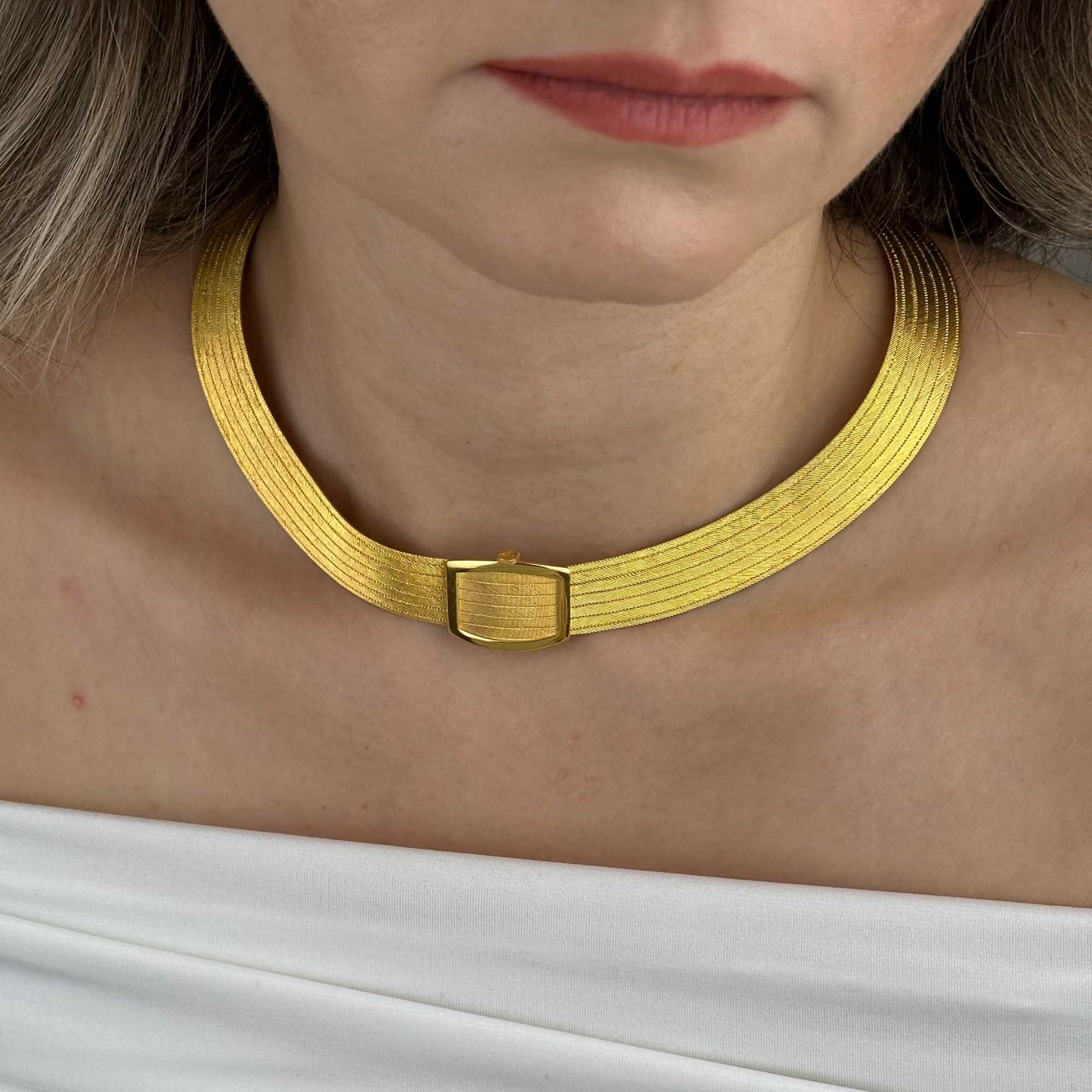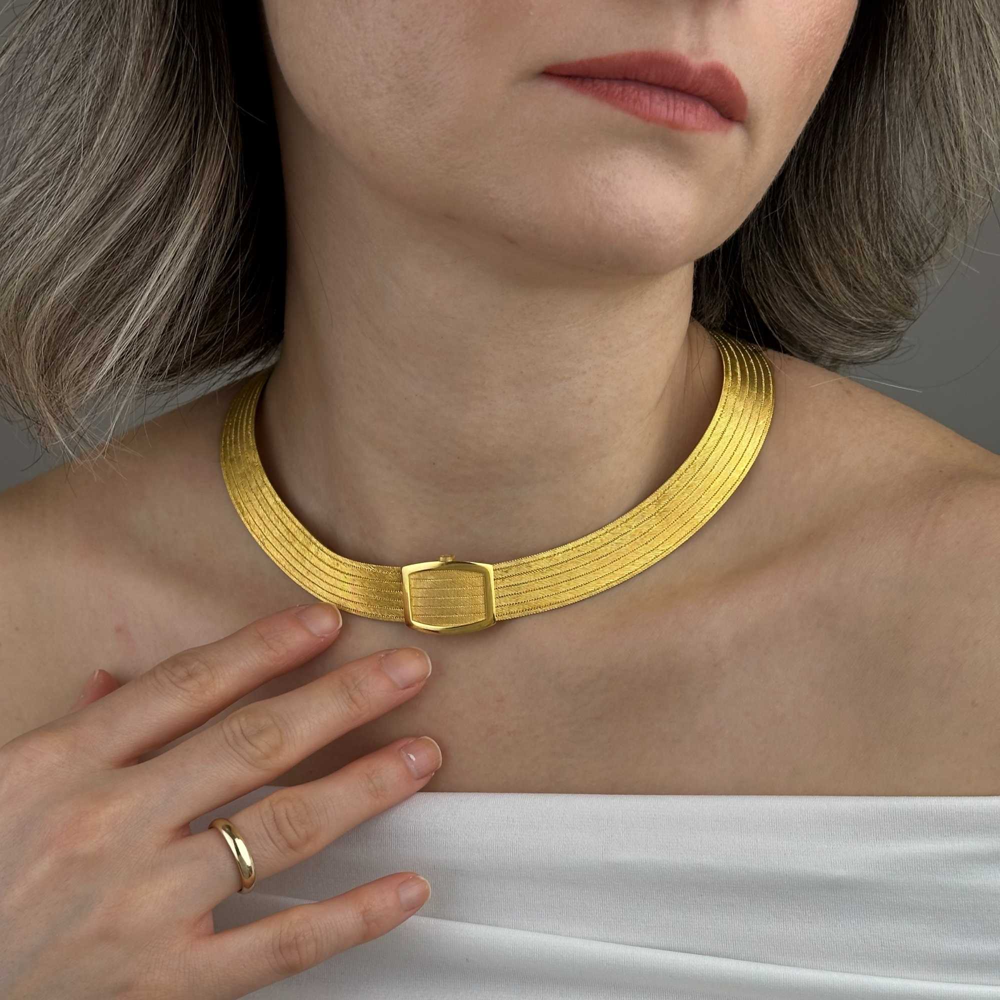 Geleneksel Trabzon hasır sanatının ihtişamlı bir yorumu olan bu gerdanlık, 7 sıra dokusuyla güçlü ve zamansız bir duruş sergiler.